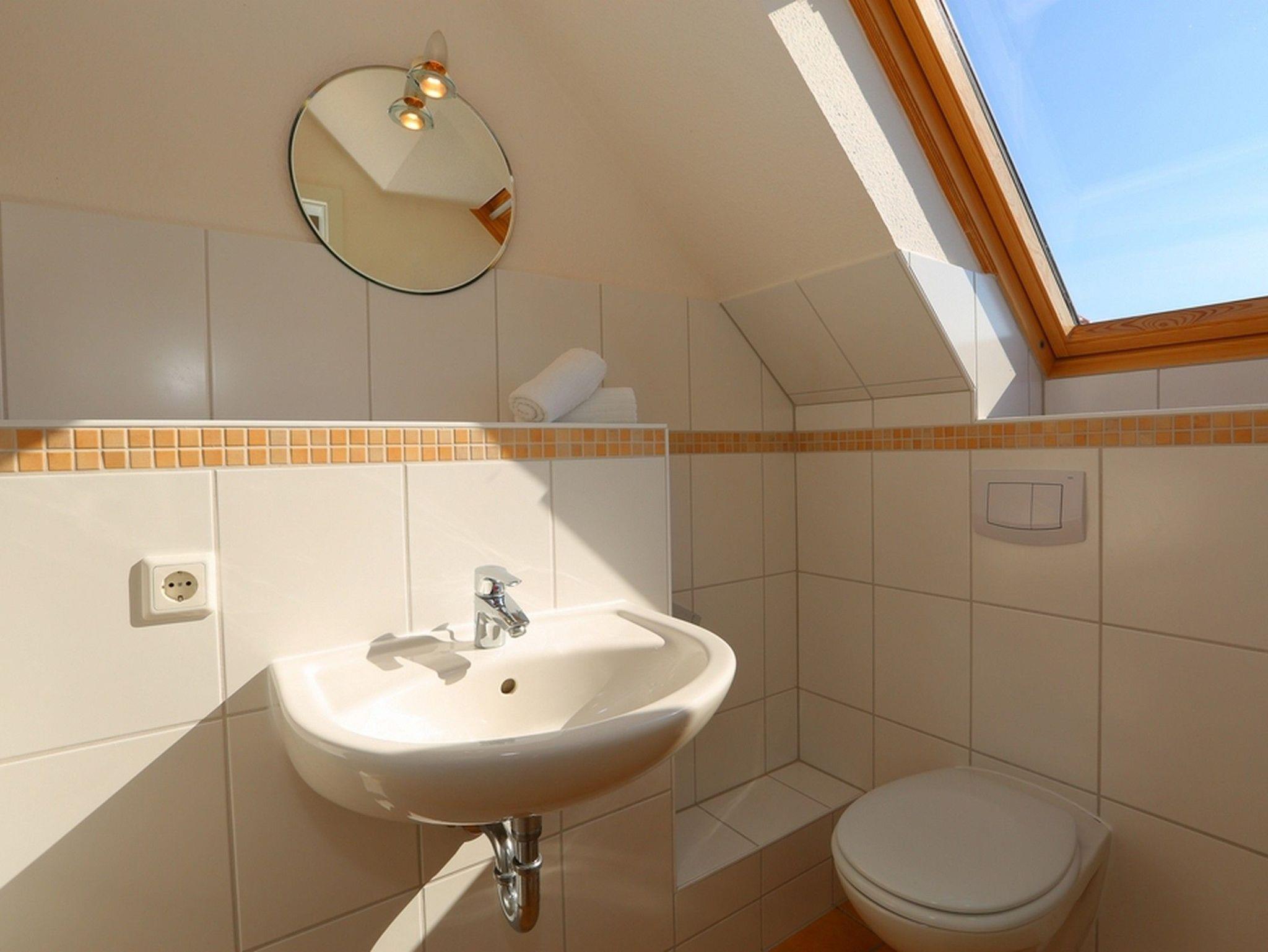 Auch das Bad mit Dusche und WC befindet sich auf dieser Etage.
