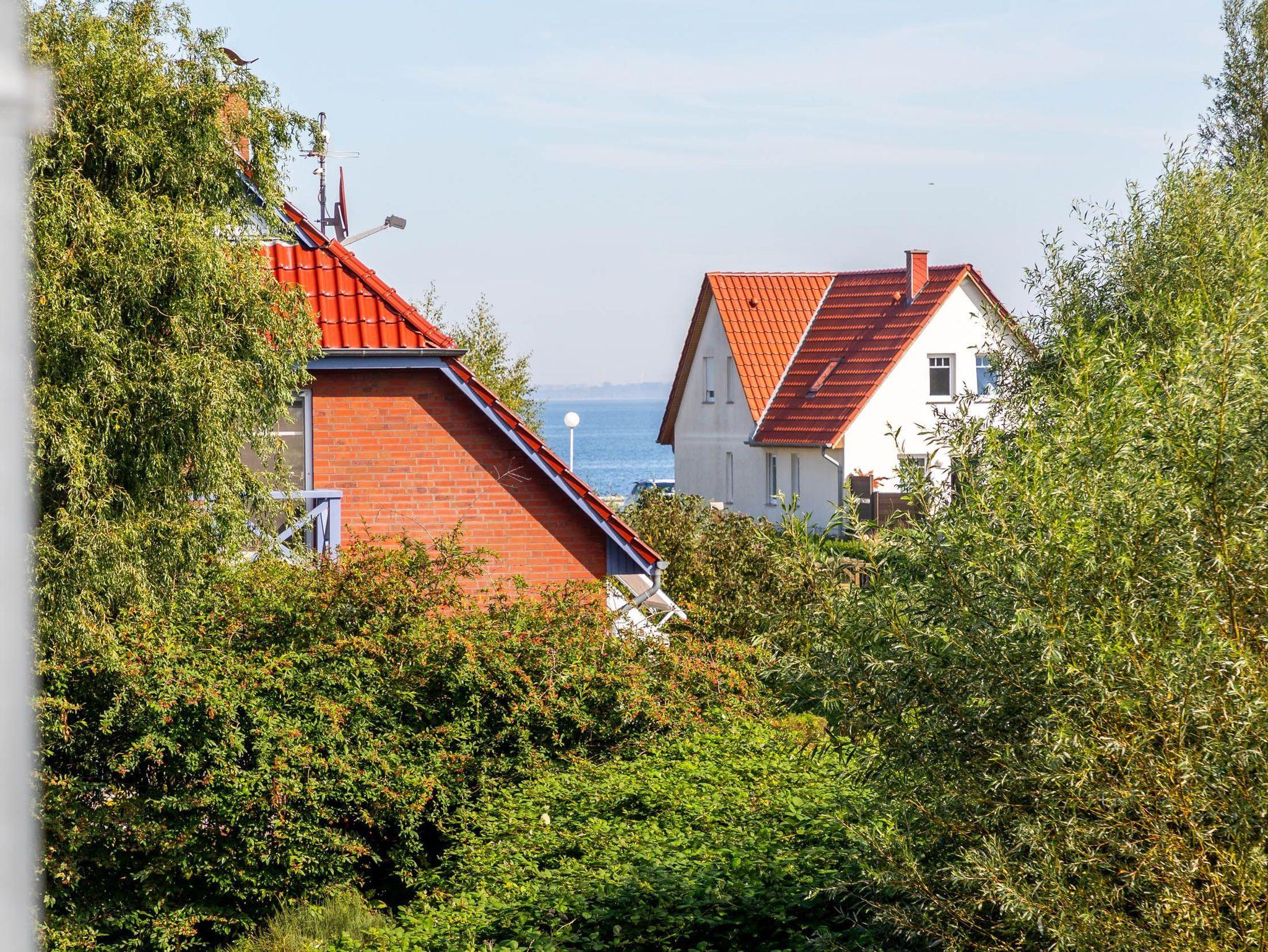 Der nach Süd-Ost ausgerichtete Balkon, welchen Sie vom Wohnbereich aus erreichen, ermöglicht einen herrlichen Blick auf das Haff.
