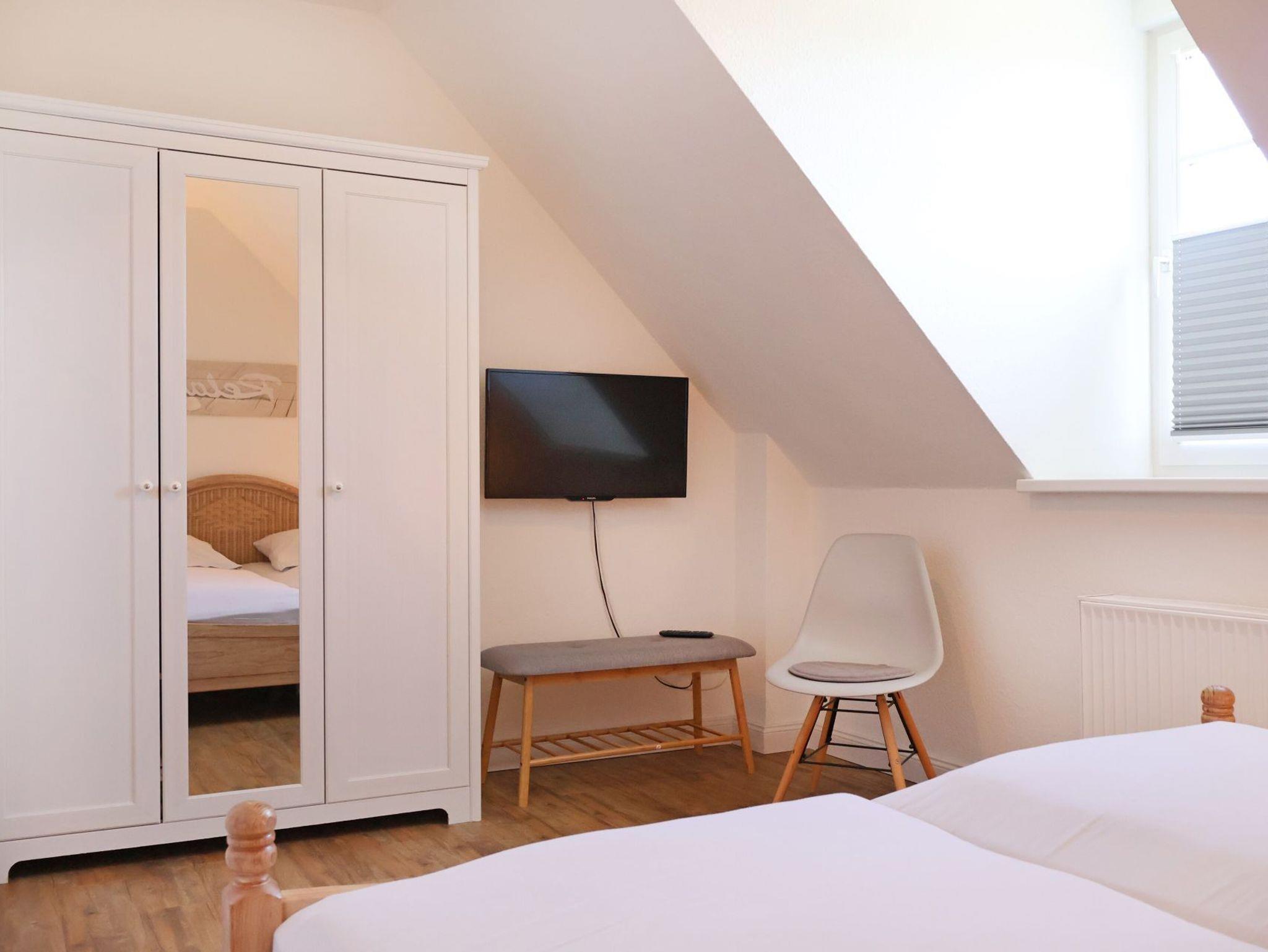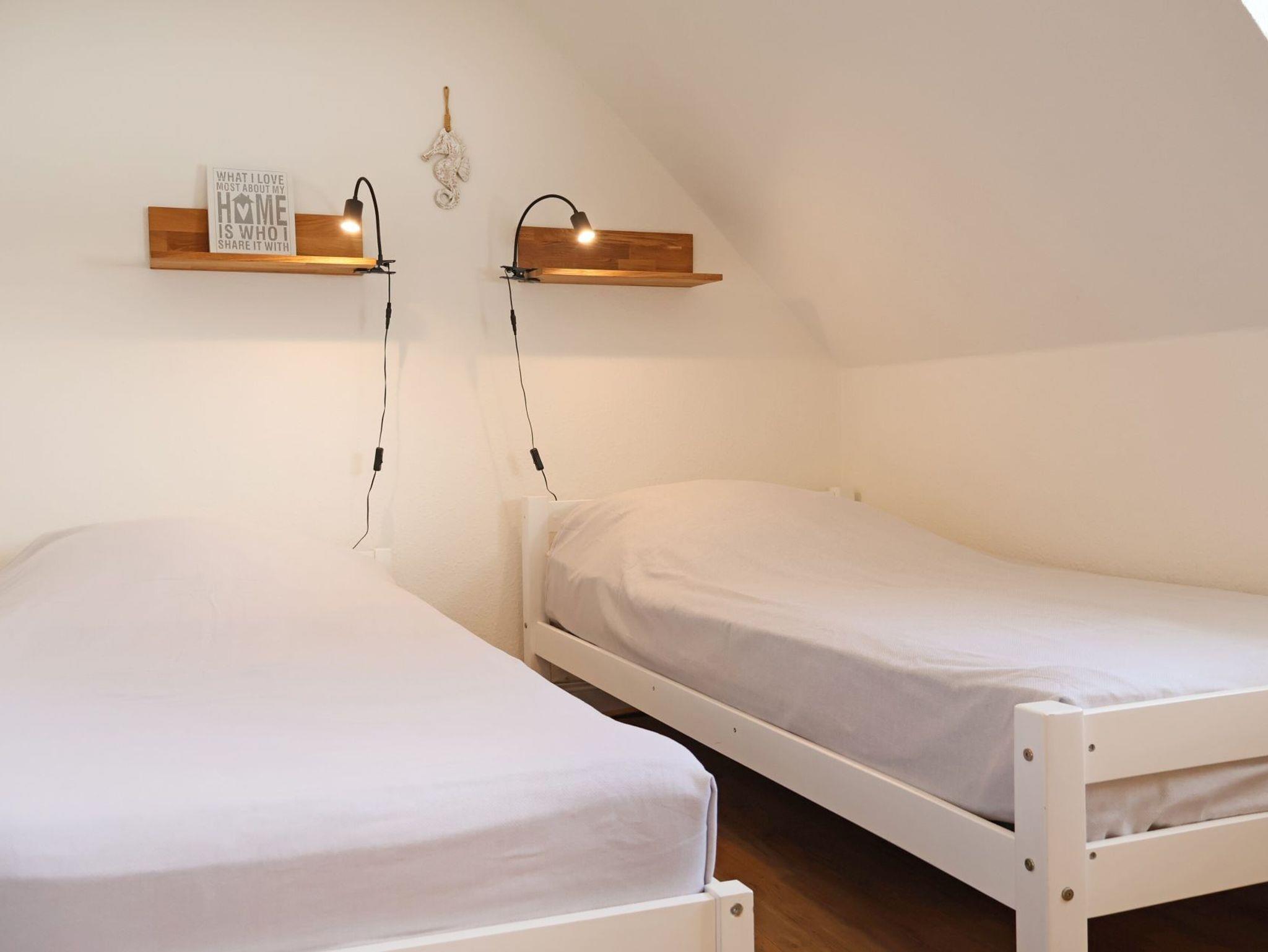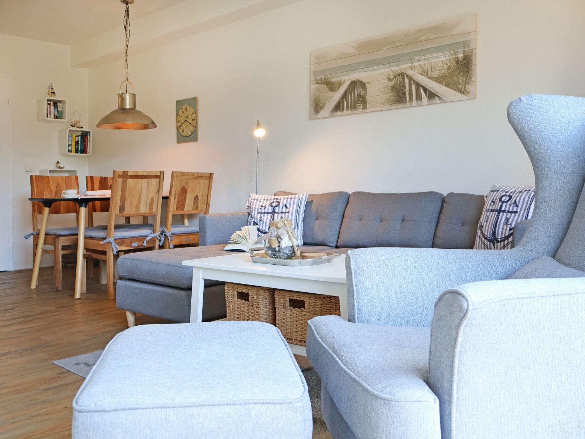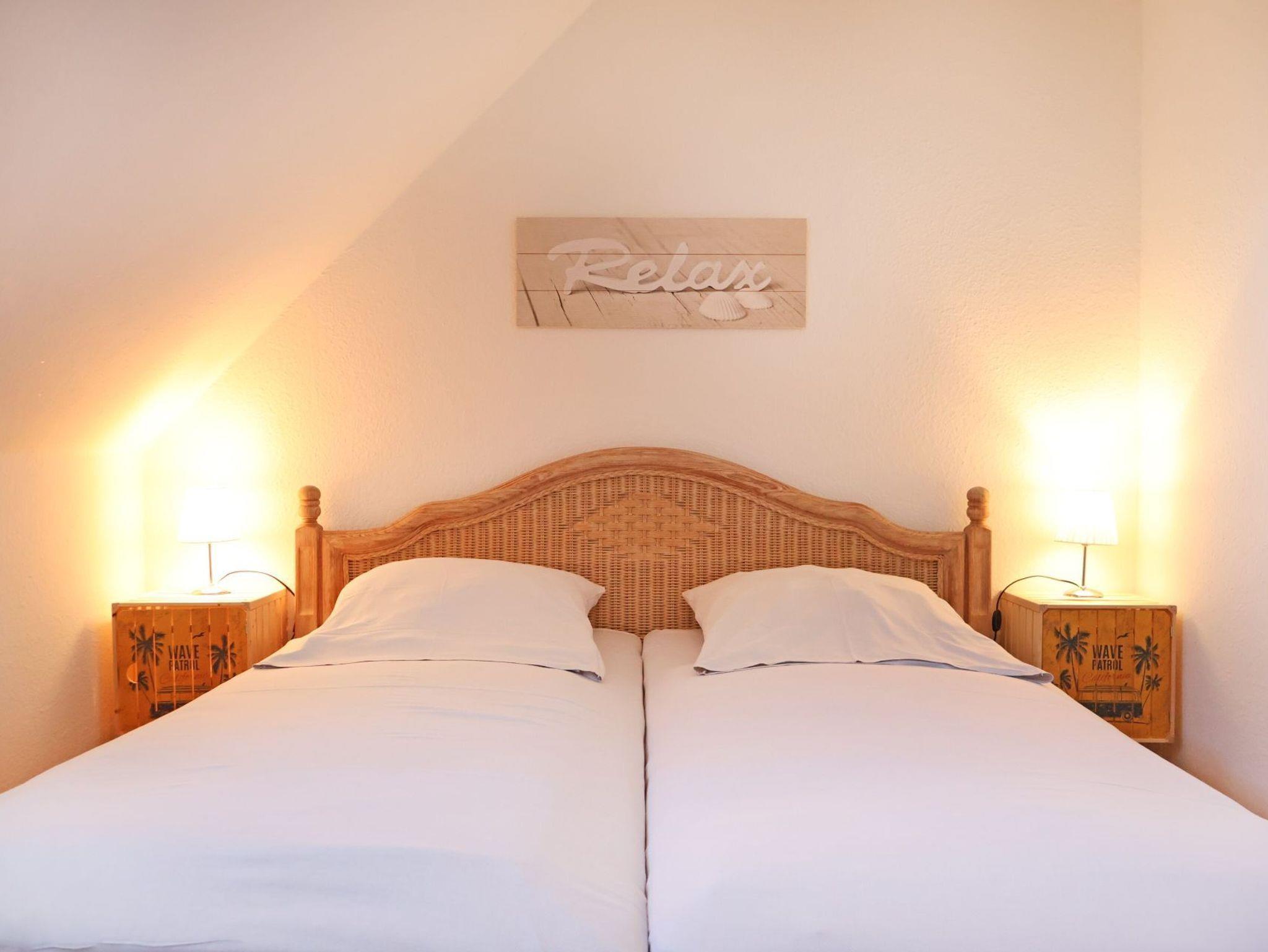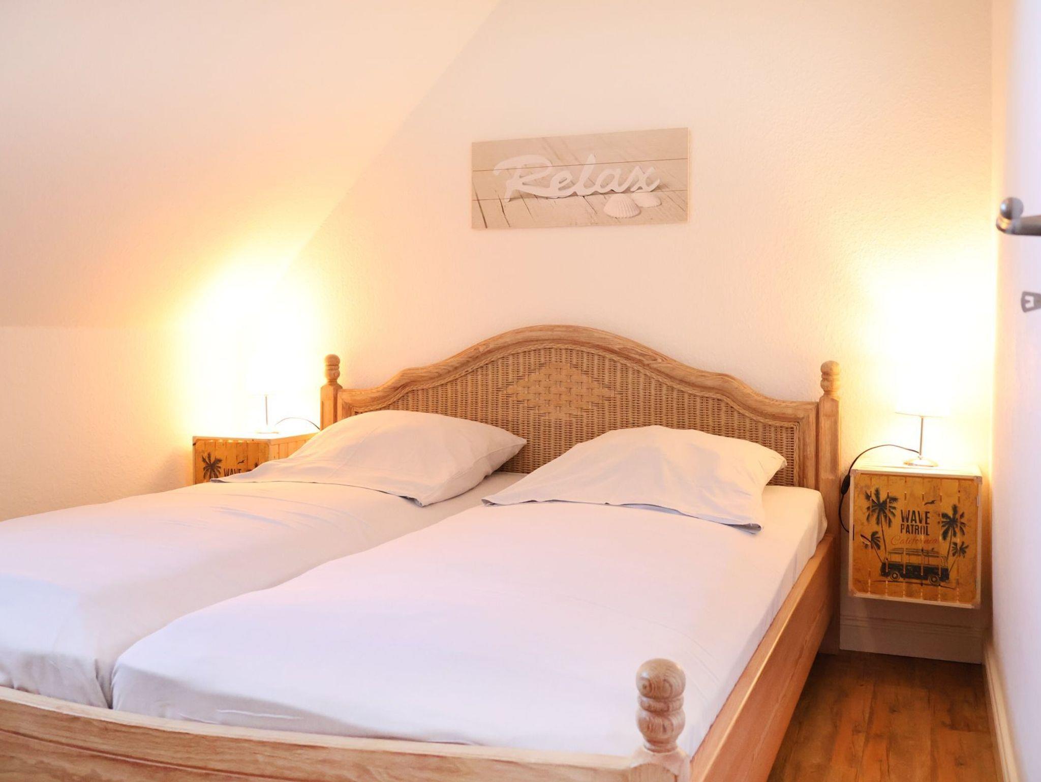 Hell und freundlich empfängt das liebevoll eingerichtete Reihenhaus ?Stranddüne? max. 4 Gäste auf einer großzügigen Wohnfläche von 60qm. An den komfortabel eingerichteten Wohn-Essbereich lehnt integrierte, gut ausgestattete Küchenzeile mit 4 Platten Ceranherd, Backofen, Geschirrspüler, Mikrowelle, Kaffeemaschine, Toaster usw. Vom Küchenbereich blicken Sie auf einen kleinen Naturteich. Für Unterhaltung sorgen ein Flat-TV, Musikanlage mit MP3-Funktion. Ebenso befindet sich im Wohnbereich eine gemütliche Sitzcouch. Entspannung bietet auch die sonnige Terrasse mit Gartennutzung. Das Ferienhaus ist im Erdgeschoß mit einer Fußbodenheizung ausgestattet. Das gesamte Haus überzeugt zudem mit einem Holzoptik Design- Fußboden. Im Obergeschoss des Hauses verwöhnt das hell geflieste Duschbad mit Wellnessduschbrause. In beiden Schlafzimmern 1x Doppelbett und 1x 2 Einzelbetten werden Sie auf Grund der ruhigen Wohnlage erholsam schlafen. Kostenfrei parken Sie Ihren PKW auf dem zugehörigen Grundstück. Gerne können im Kellergeschoss Gefrierschrank kostenfrei sowie Waschmaschine und Wäschetrockner gegen geringe Gebühr genutzt werden. Herzlich willkommen in diesem familienfreundlichen Nichtraucher Ferienhaus. Hunde sind herzlich willkommen und werden mit 8,00?/Tag berechnet.