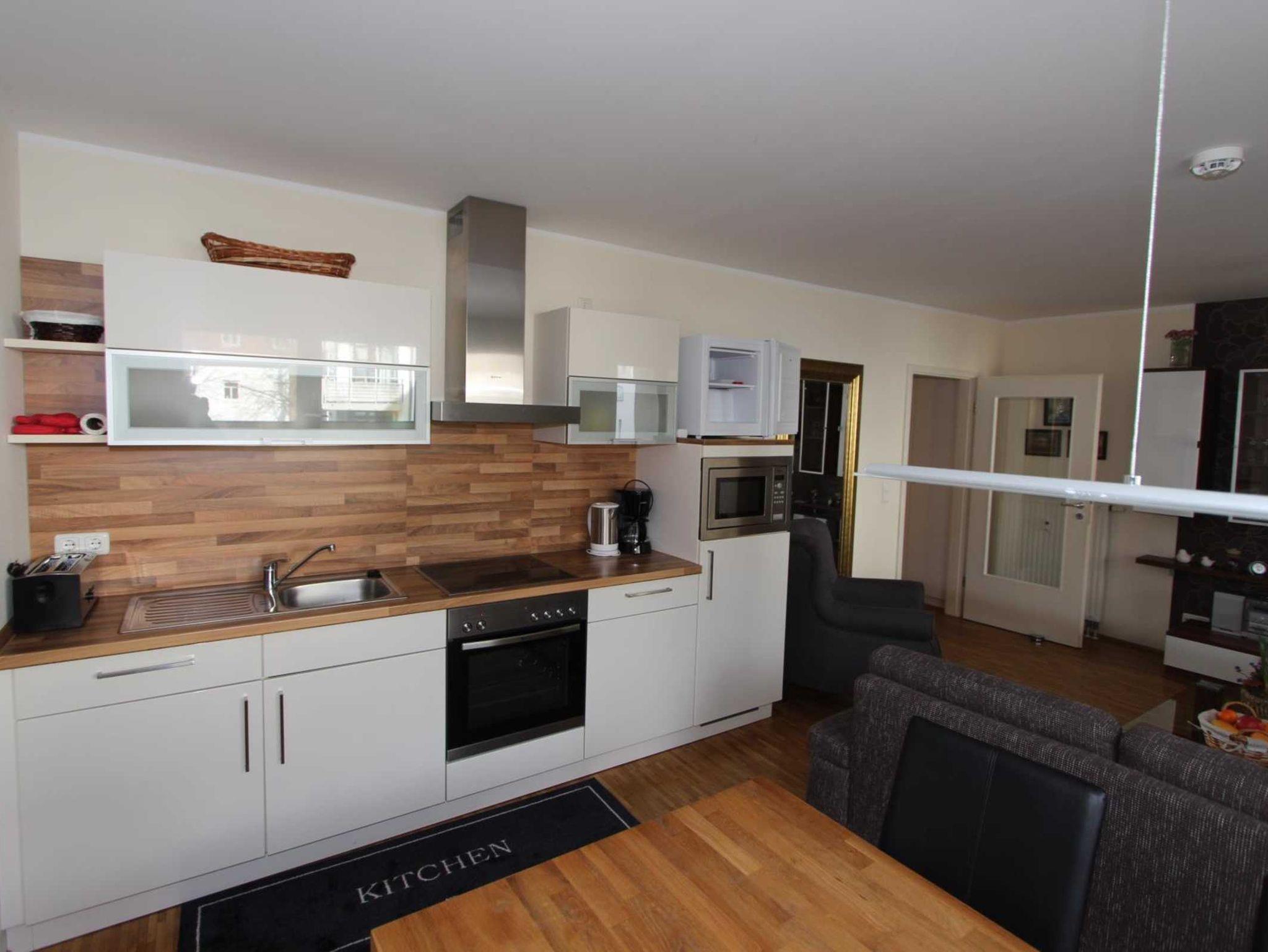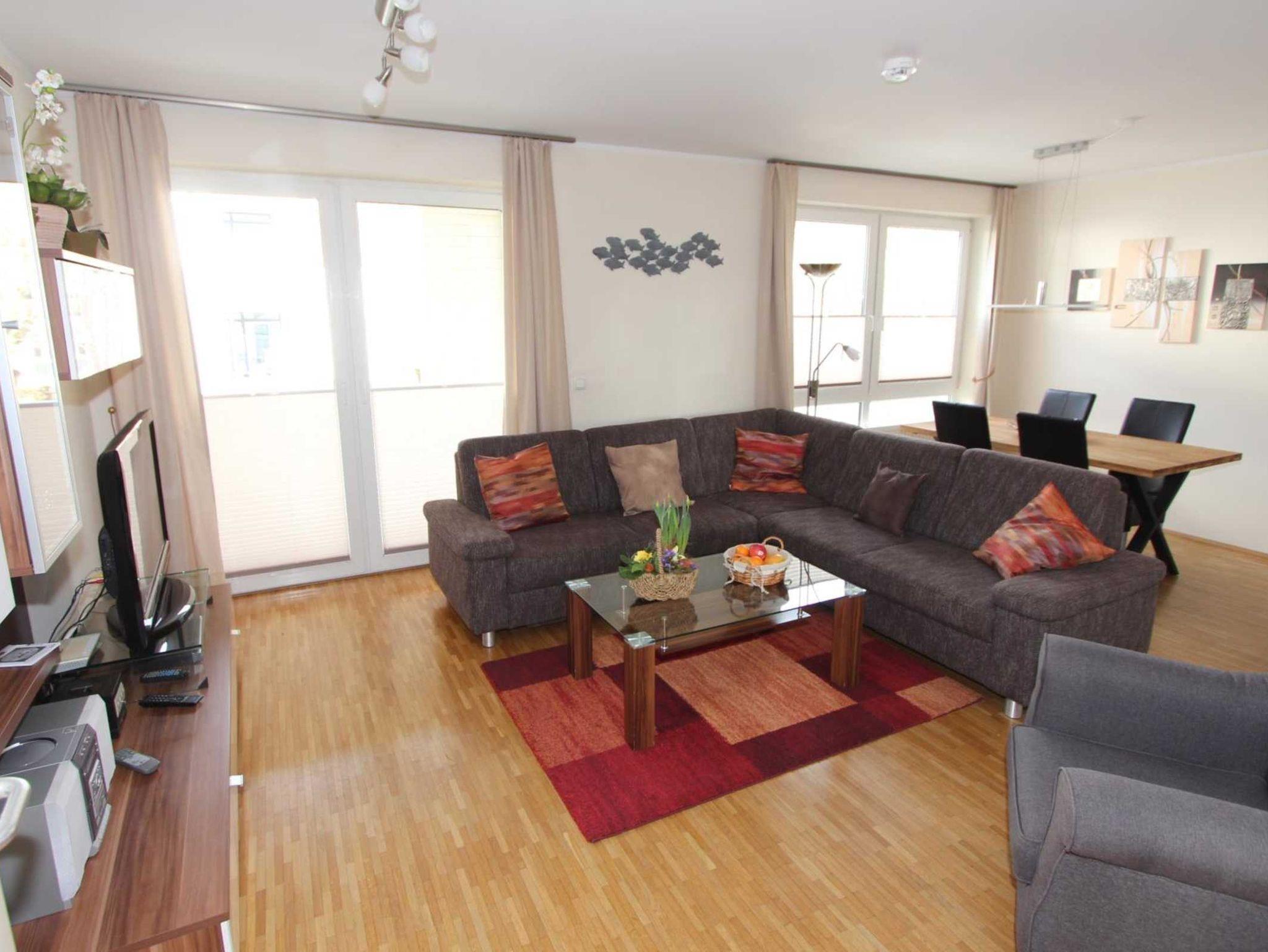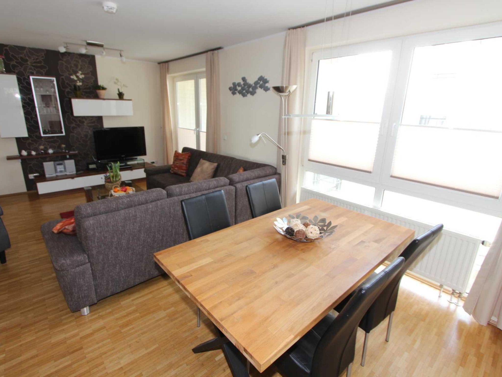 Ihre gut ausgestattete Zwei-Zimmer-Ferienwohnung für bis zu vier Personen verfügt über einen Balkon oder Terrasse, kostenfreies WLAN und sky-Empfang. Sie erreichen die Wohnung bequem mit dem Aufzug, für Ihren PKW steht ein Platz in der Tiefgarage zur Verfügung. Dort befindet sich zudem ein Waschraum mit Münzwaschmaschinen und Münzwäschetrockner und ein Platz für Ihre Fahrräder.