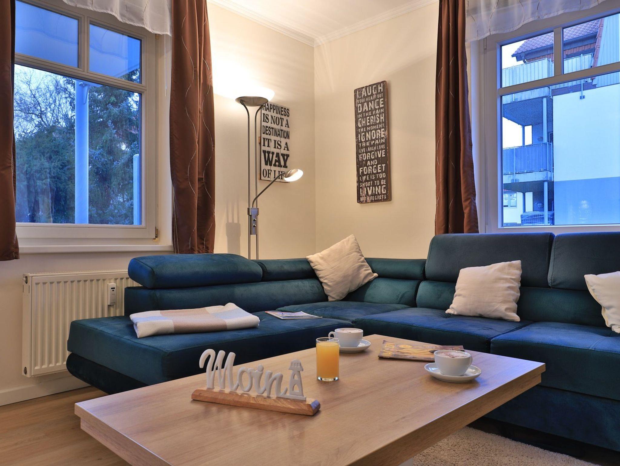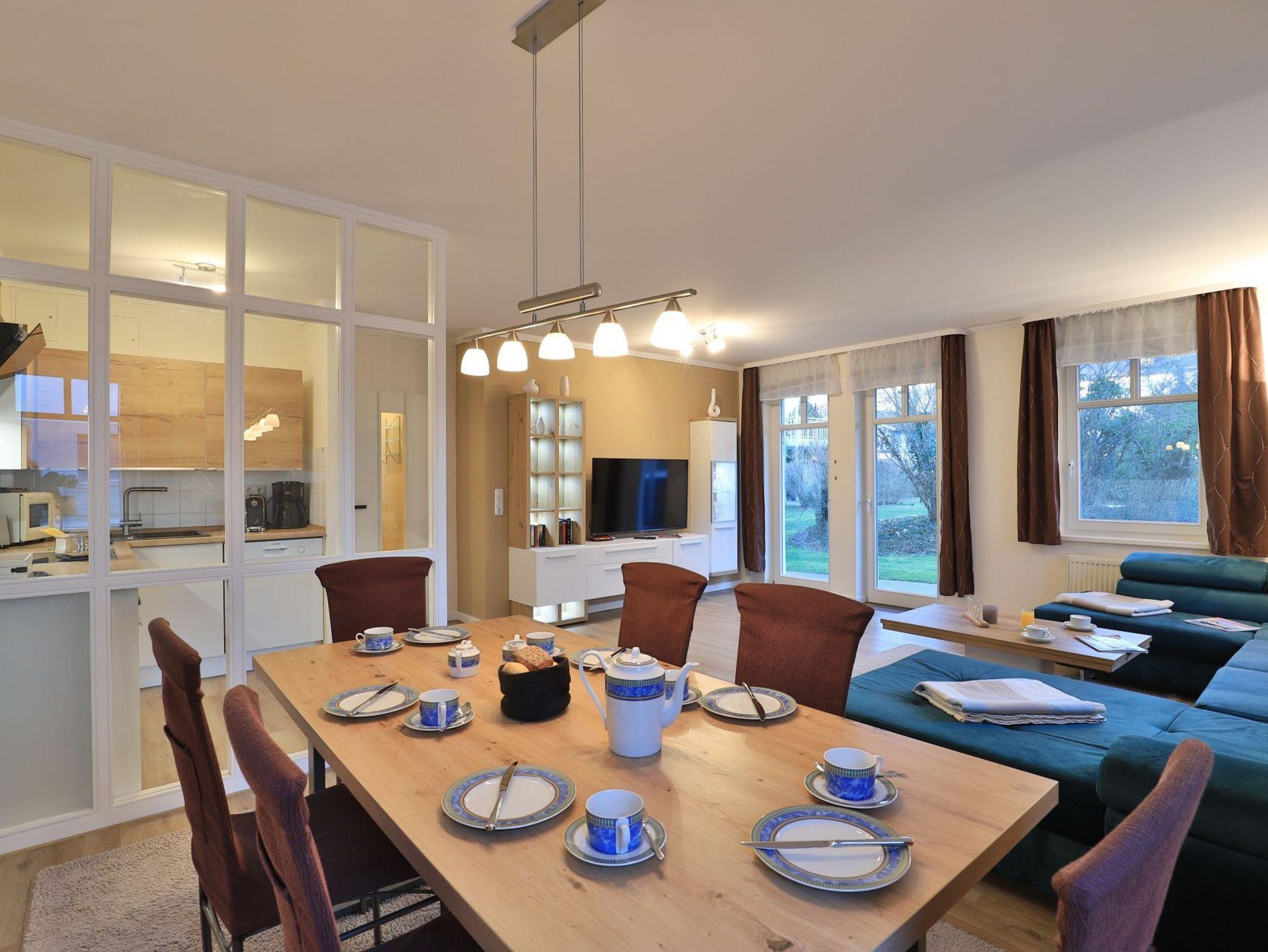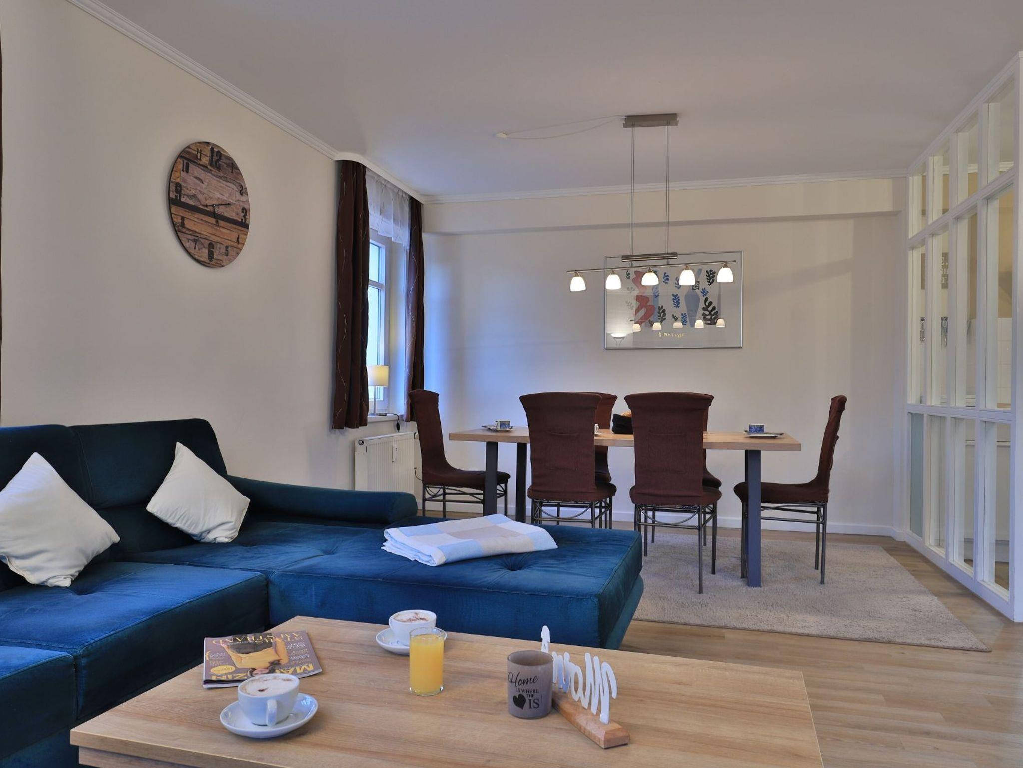 Die 2-Zimmer-Wohnung im Erdgeschoss bietet eine geschützte Terrasse mit Blick auf das begrünte Innengelände und eine großzügige Wohnfläche von 64 Quadratmetern, die Platz für bis zu 4 Personen bietet. Der elegante Wohn- und Essbereich verfügt über ein Sofa, das sich in ein Schlafsofa verwandeln lässt, sowie einen Esstisch und einen Fernseher. WLAN ist kostenfrei verfügbar. Die separate, voll ausgestattete Küche ermöglicht es Ihnen, Ihre Mahlzeiten selbst zuzubereiten und bietet einen Ceranherd mit Backofen, eine Mikrowelle, einen Kühlschrank, einen Geschirrspüler sowie eine Kaffeemaschine, einen Toaster und einen Wasserkocher. Im Sommer können Sie die saisonal möblierte Terrasse genießen. Das Schlafzimmer ist mit einem Doppelbett und einem Kleiderschrank ausgestattet. Für Familien stehen ein Kinderhochstuhl und ein Kinderreisebett zur Verfügung, wobei eigenes Bettzeug für Kleinkinder mitgebracht werden muss. Die Wohnung verfügt zudem über ein Duschbad mit WC, Fön ist vorhanden. Bügeleisen, Bügelbrett befinden sich in der Wohnung. Eine Waschmaschine kann im Haus genutzt werden, und Ihr Fahrzeug parken Sie auf einem reservierten Stellplatz in der Tiefgarage. Bitte beachten Sie, dass Haustiere nicht erlaubt sind und es sich um eine Nichtraucherwohnung handelt. Die zentrale Lage, nur 70 Meter vom feinsandigen Strand entfernt, macht die Wohnung ideal für einen entspannenden Urlaub in Boltenhagen.