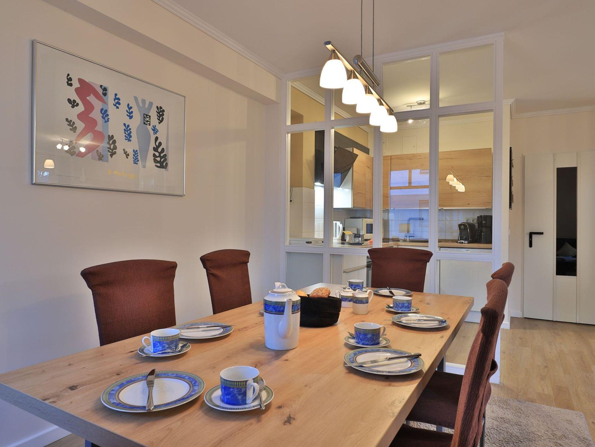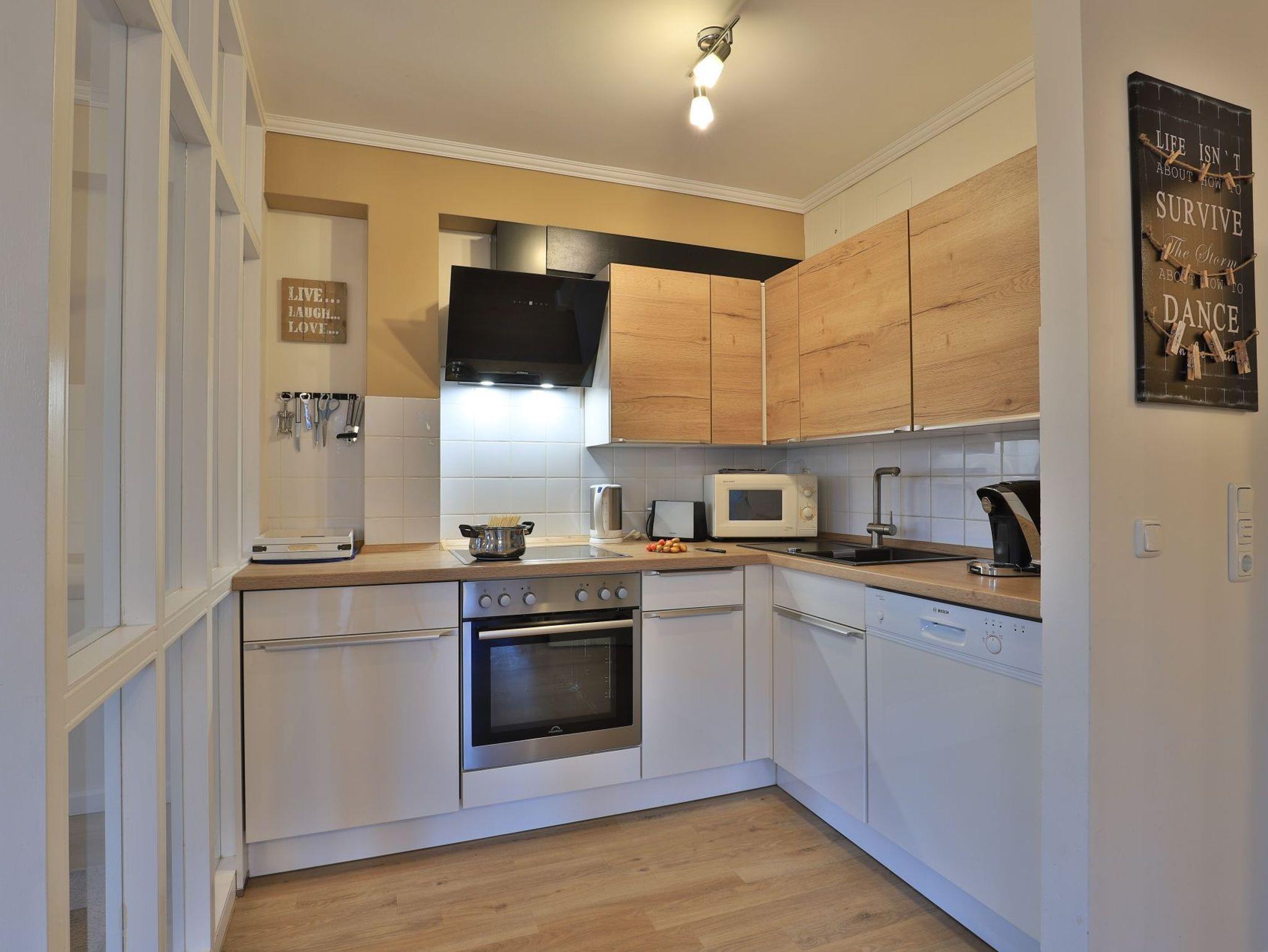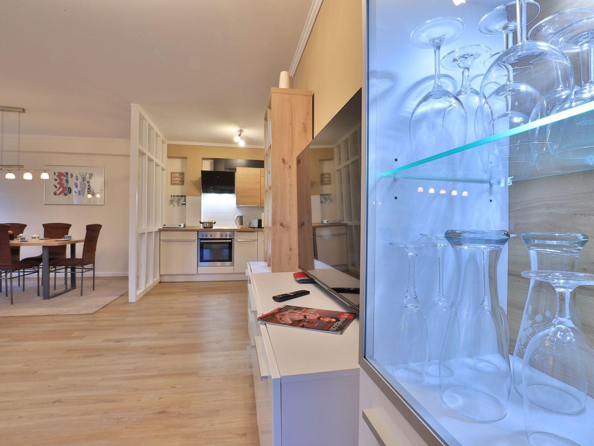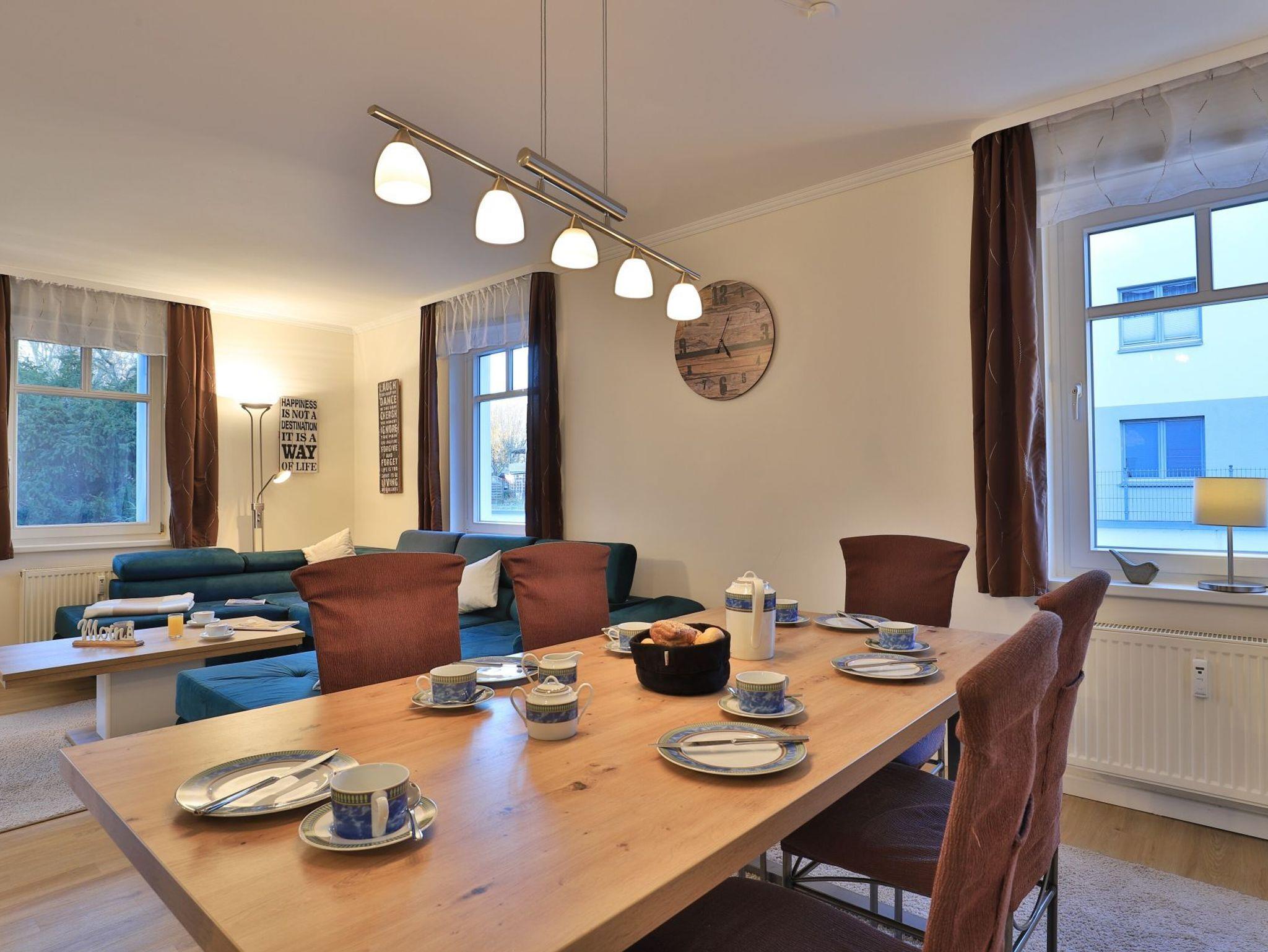 Die 2-Zimmer-Wohnung im Erdgeschoss bietet eine geschützte Terrasse mit Blick auf das begrünte Innengelände und eine großzügige Wohnfläche von 64 Quadratmetern, die Platz für bis zu 4 Personen bietet. Der elegante Wohn- und Essbereich verfügt über ein Sofa, das sich in ein Schlafsofa verwandeln lässt, sowie einen Esstisch und einen Fernseher. WLAN ist kostenfrei verfügbar. Die separate, voll ausgestattete Küche ermöglicht es Ihnen, Ihre Mahlzeiten selbst zuzubereiten und bietet einen Ceranherd mit Backofen, eine Mikrowelle, einen Kühlschrank, einen Geschirrspüler sowie eine Kaffeemaschine, einen Toaster und einen Wasserkocher. Im Sommer können Sie die saisonal möblierte Terrasse genießen. Das Schlafzimmer ist mit einem Doppelbett und einem Kleiderschrank ausgestattet. Für Familien stehen ein Kinderhochstuhl und ein Kinderreisebett zur Verfügung, wobei eigenes Bettzeug für Kleinkinder mitgebracht werden muss. Die Wohnung verfügt zudem über ein Duschbad mit WC, Fön ist vorhanden. Bügeleisen, Bügelbrett befinden sich in der Wohnung. Eine Waschmaschine kann im Haus genutzt werden, und Ihr Fahrzeug parken Sie auf einem reservierten Stellplatz in der Tiefgarage. Bitte beachten Sie, dass Haustiere nicht erlaubt sind und es sich um eine Nichtraucherwohnung handelt. Die zentrale Lage, nur 70 Meter vom feinsandigen Strand entfernt, macht die Wohnung ideal für einen entspannenden Urlaub in Boltenhagen.