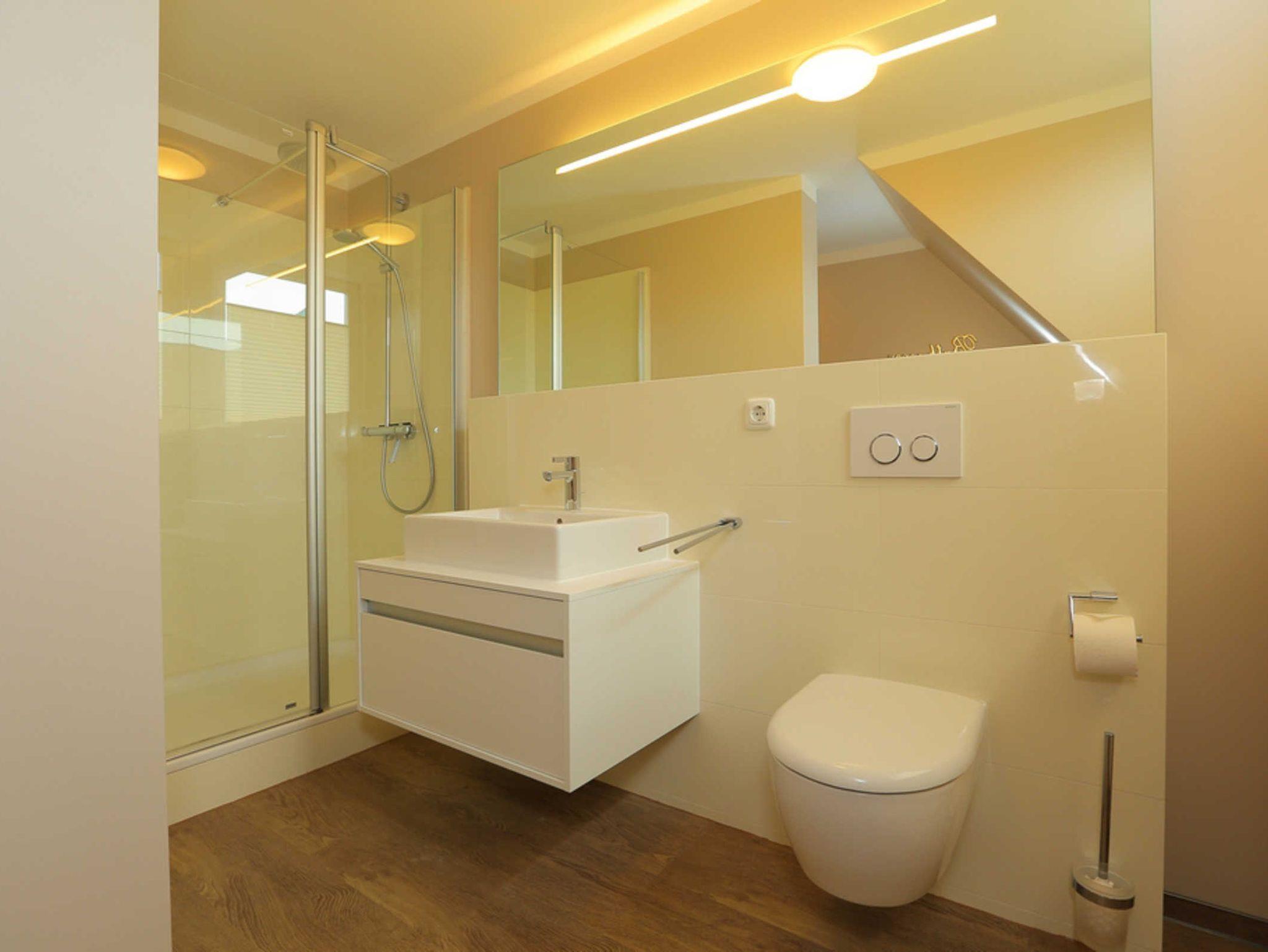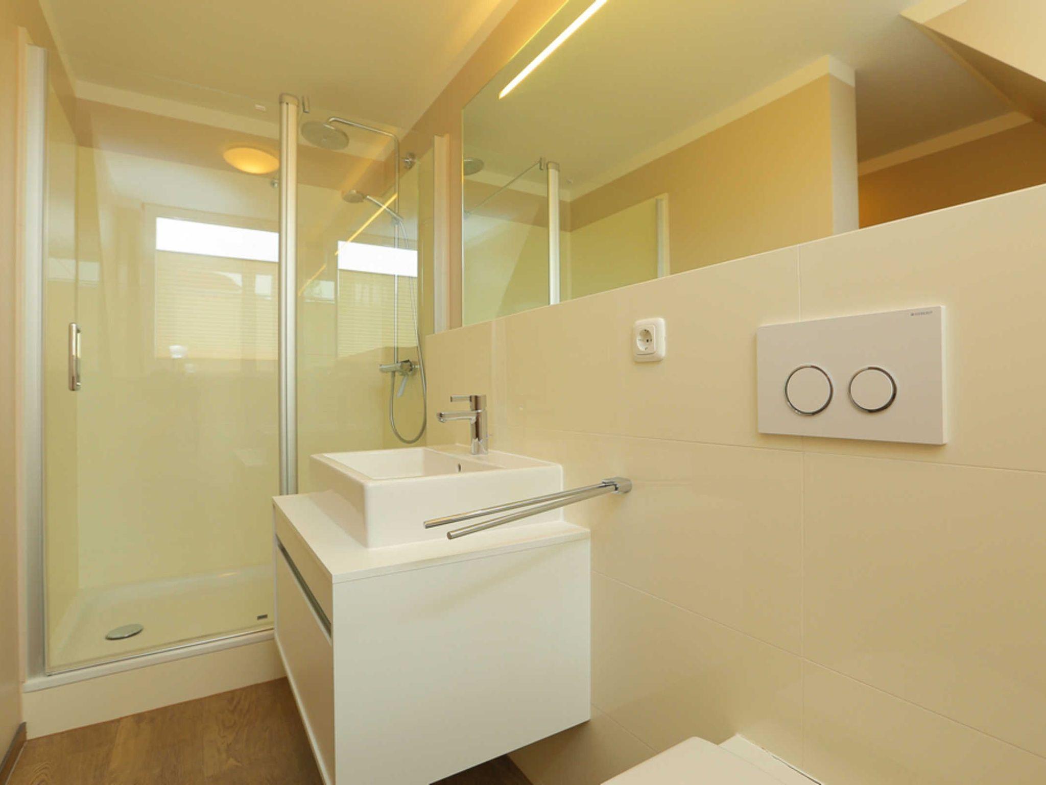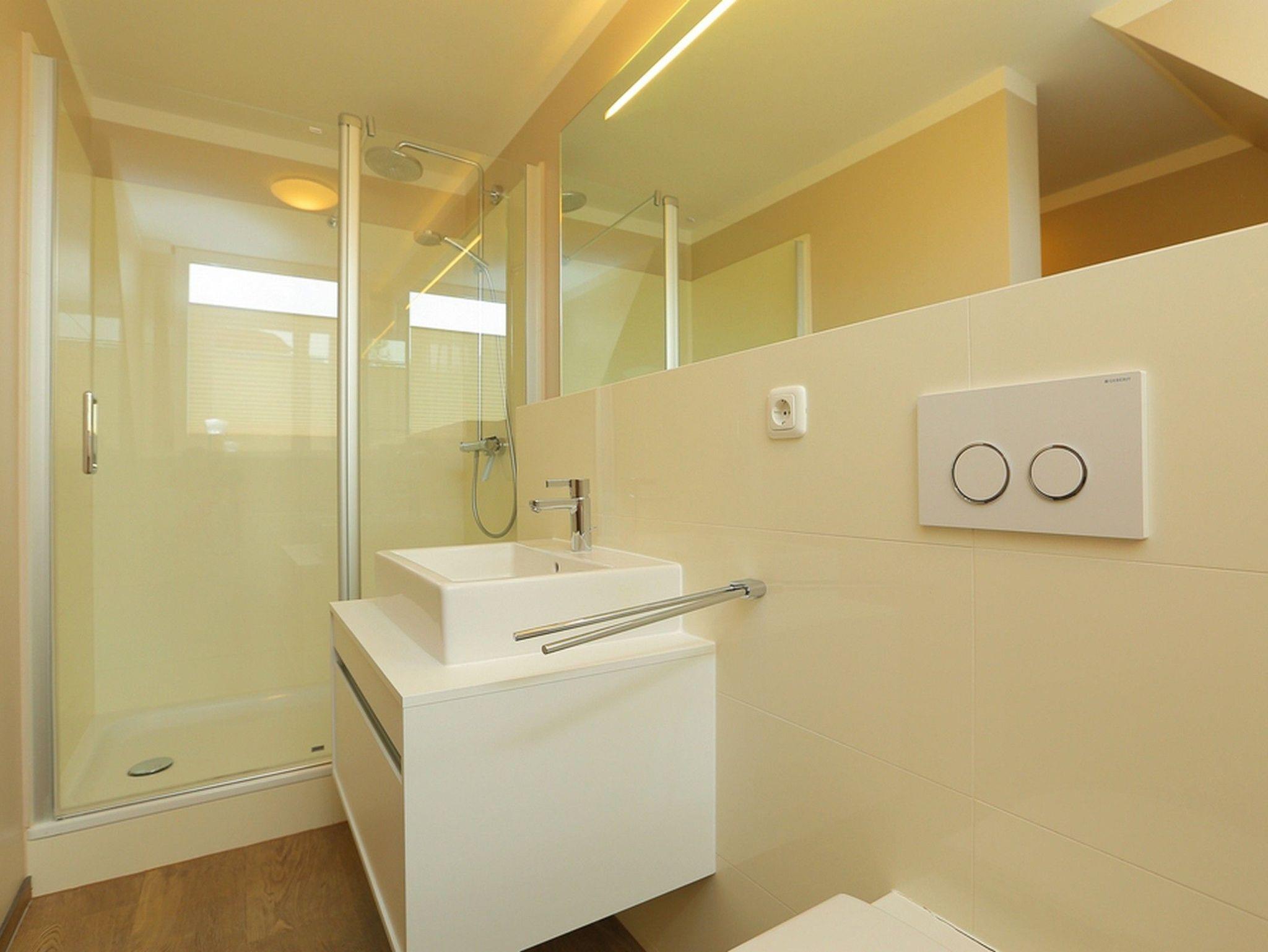 Zusätzlich besitzt das Appartement in der selben Ebene ein helles modernes Bad mit Dusche und WC.