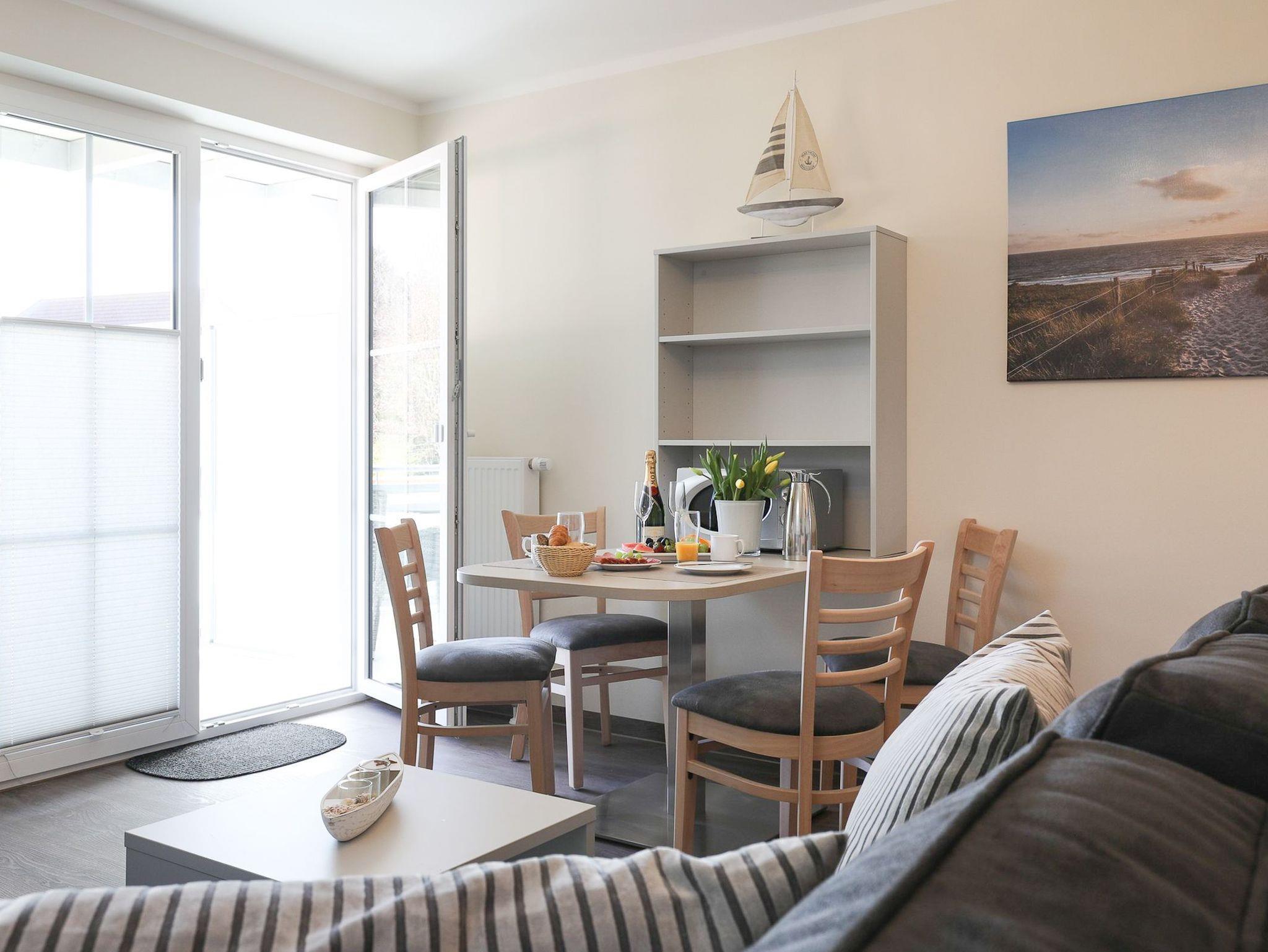 Gemütliche 2-Zimmer-Ferienwohnung in Boltenhagen mit Balkon und barrierefreiem Bad, ideal für Paare und Senioren.