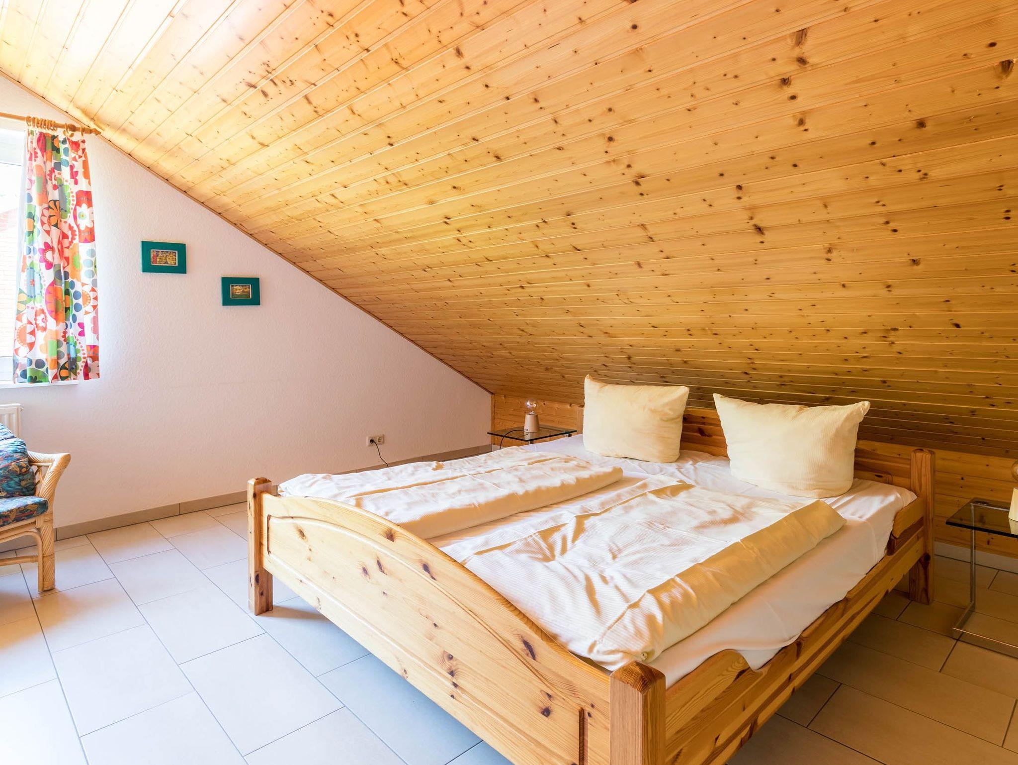 In der zweiten Etage (Dachgeschoss), welche Sie vom Flur aus erreichen, erwartet Sie ein Schlafzimmer mit Doppelbett, Kleiderschrank und kleinem TV sowie ein zweites, kleines Duschbad mit Fenster.