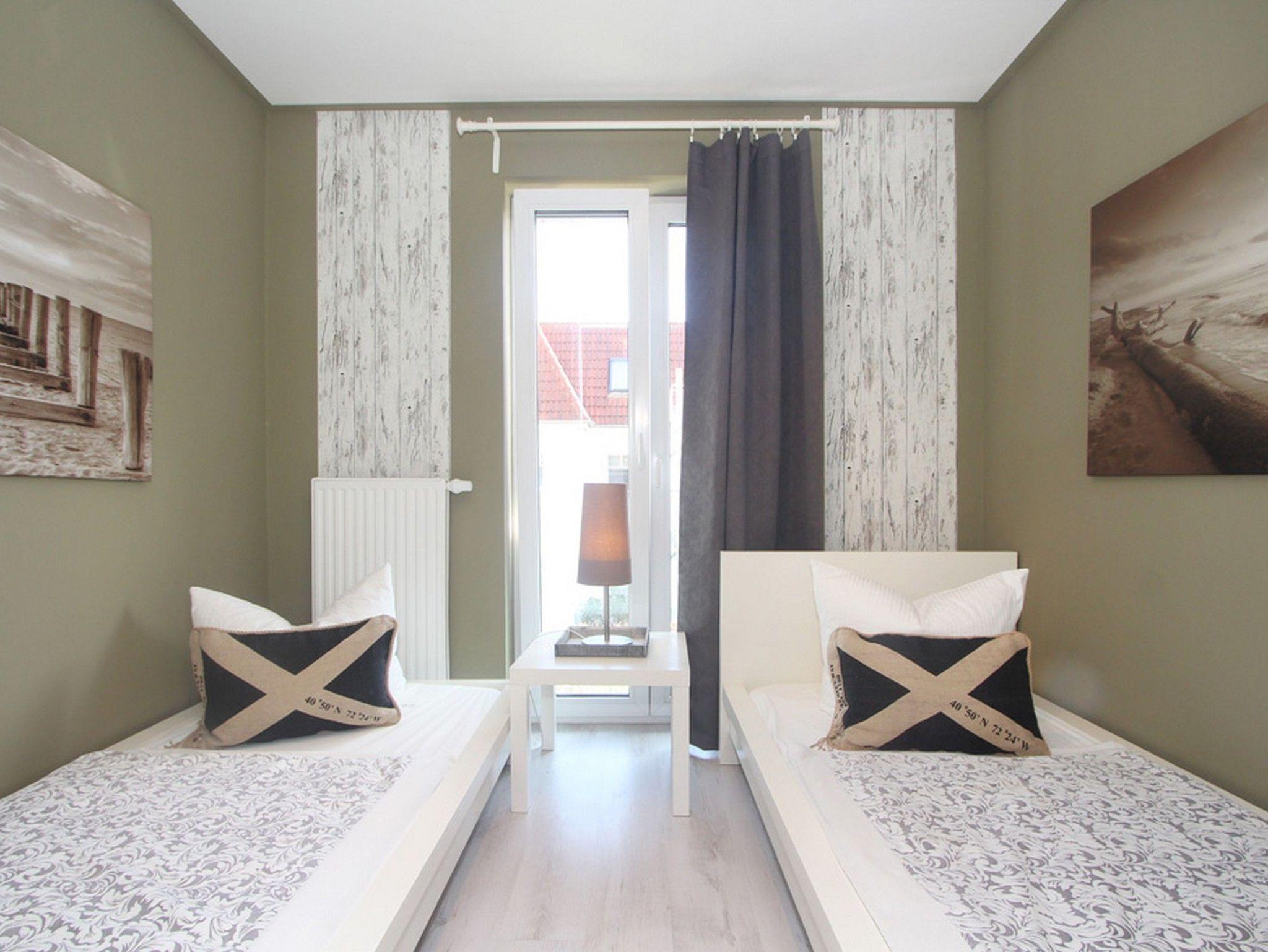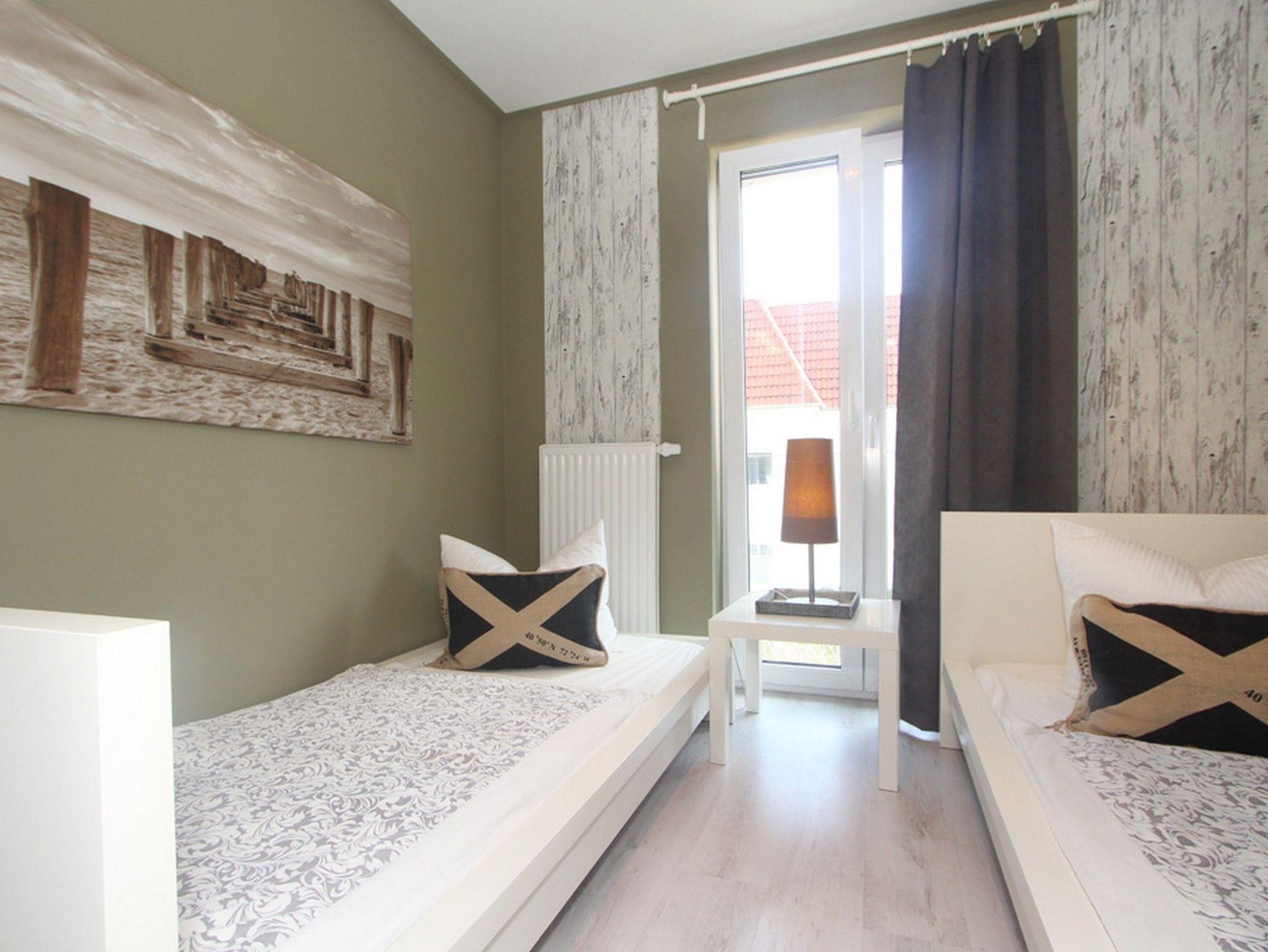 Die modern eingerichtete Wohnung 2 Schlafzimmer. Während Sie im ersten Schlafzimmer ein Doppelbett erwartet, finden Sie im zweiten Schlafzimmer zwei Einzelbetten vor.