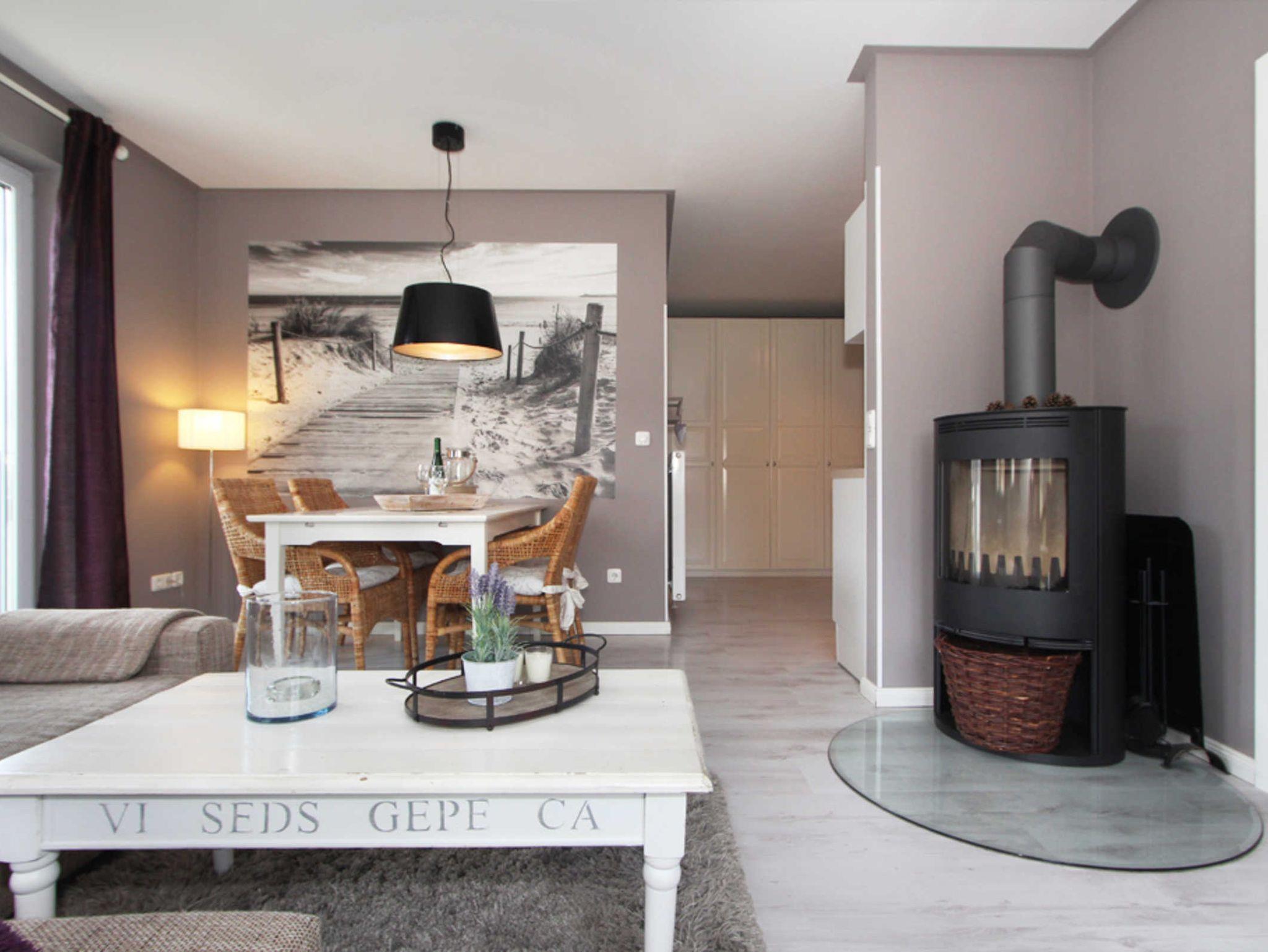 Moderne 3-Zimmer-Ferienwohnung in Boltenhagen mit Balkon, Kamin und kostenfreiem WLAN für entspannten Ostseeurlaub.