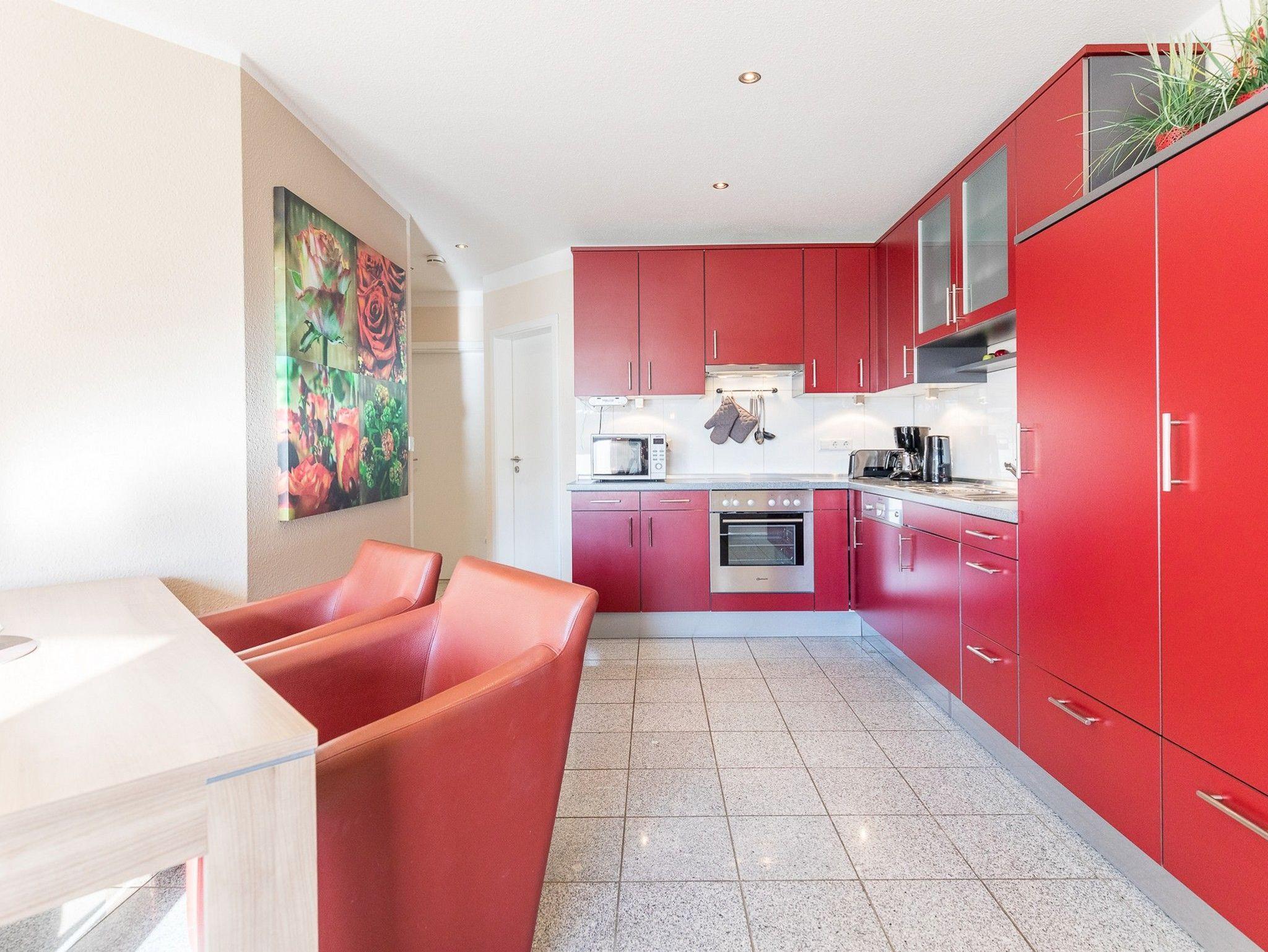 Die offene Küche hat mit Geschirrspüler, Kaffeemaschine, Backofen und vielen weiteren Geräten alles, was eine gut ausgestattete Küche braucht. Für die Ausstattung mit Besteck und Geschirr ist natürlich ebenfalls gesorgt.