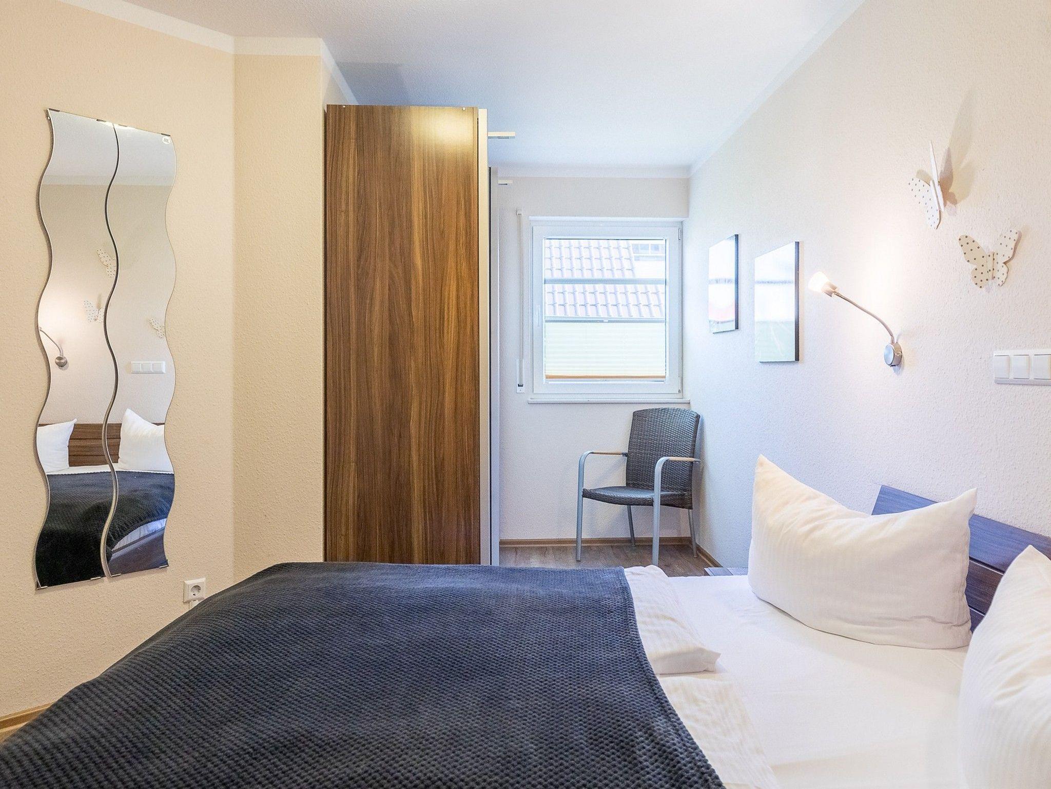 Die moderne 3-Zimmer-Wohnung im Erdgeschoss ist für 4 Personen ausgelegt. Falls Sie mit Kleinkinder anreisen, können Sie sich problemlos einen Hochstuhl und ein Kinderreisebett in die Ferienwohnung stellen.