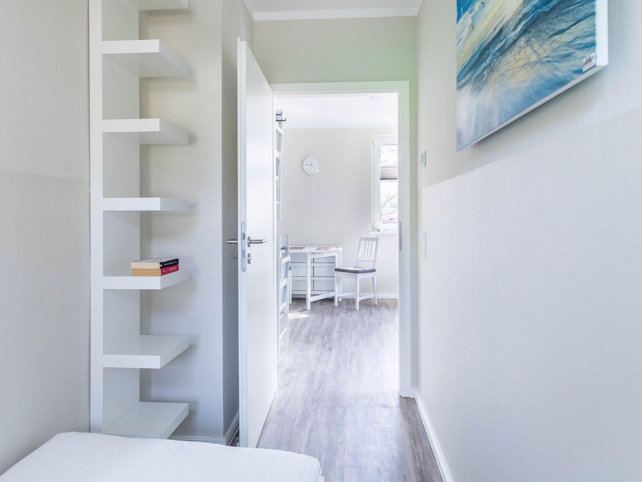 Im Schlafzimmer erwartet Sie ein bequemes Doppelbett für erholsame Nächte und ein großer Kleiderschrank bietet ausreichend Platz für Ihre Urlaubsgarderobe. Im zweiten kleinen Schlafzimmer befindet sich ein Einzelbett.
