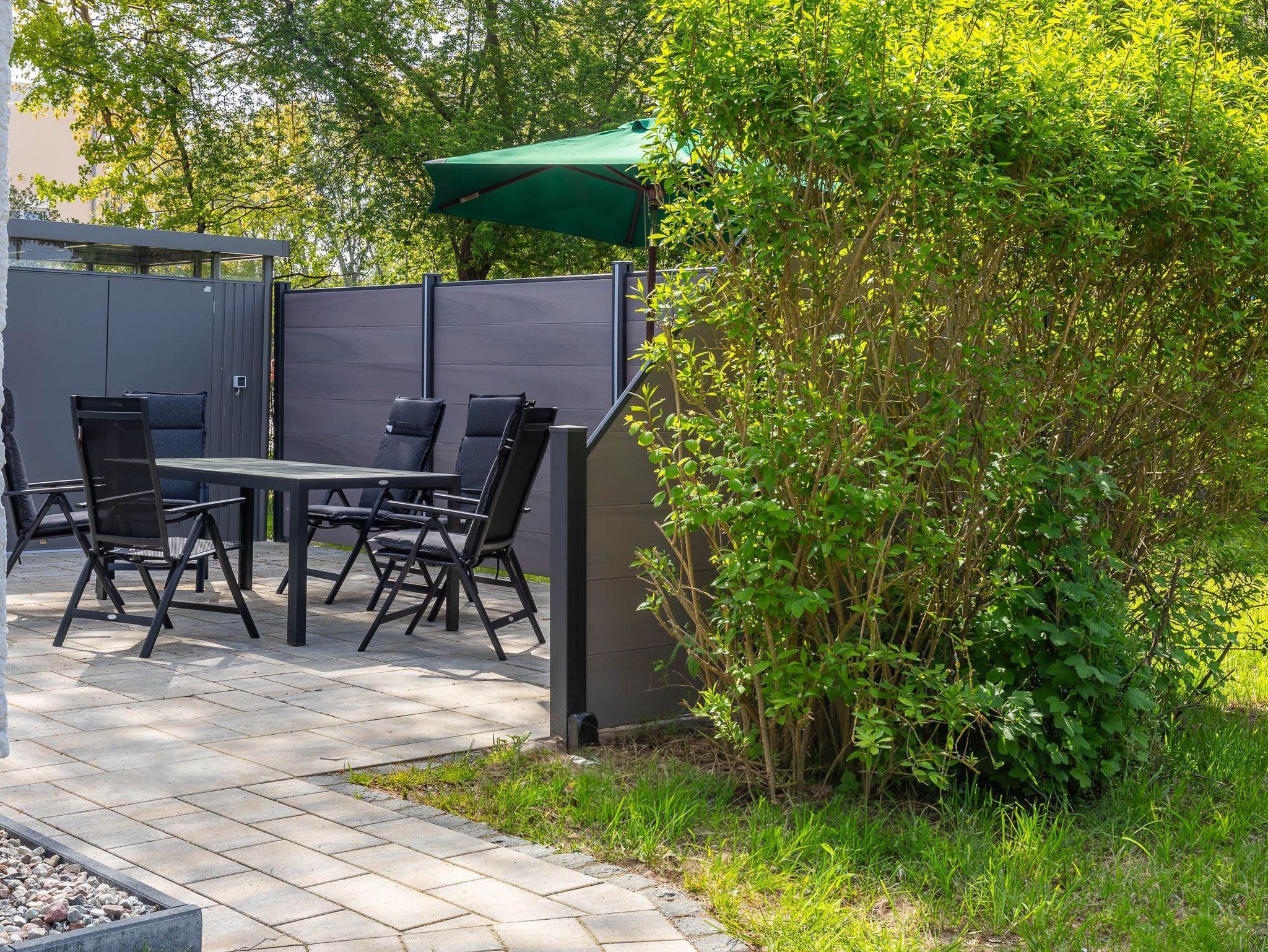 Am Haus befindet sich ein wohnungseigenes, abschließbares Abstellhäuschen, hier können Räder [[&]amp;] Co. sicher untergebracht werden.