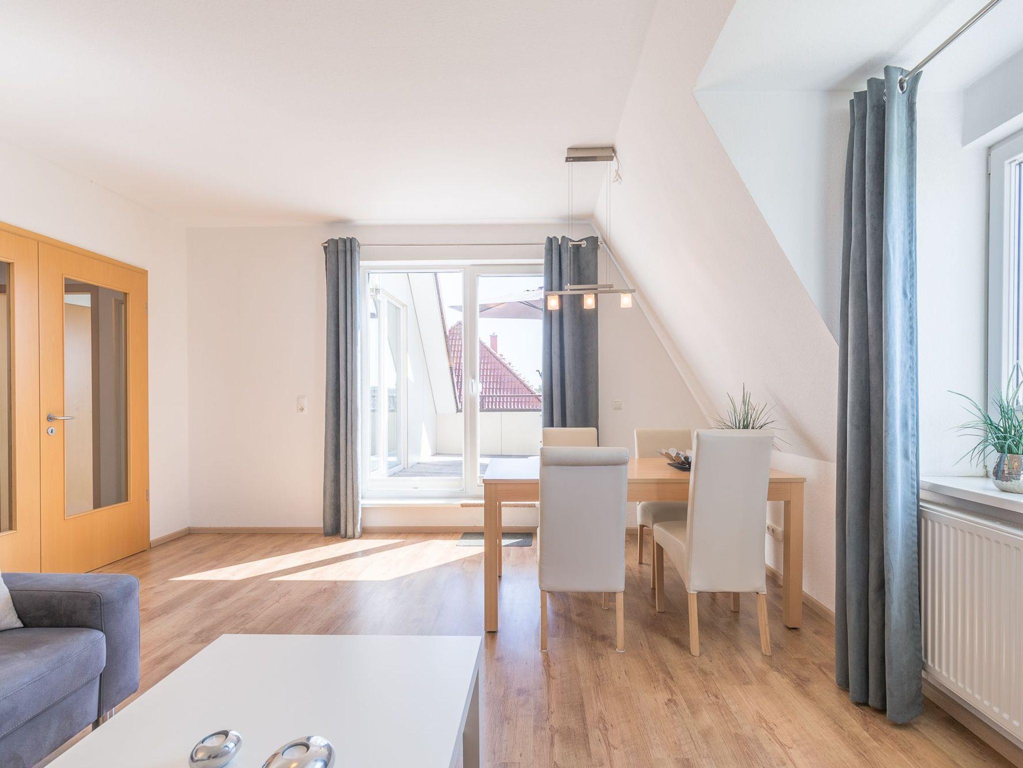 Die Ferienwohnung Atelier in Boltenhagen bietet 68 qm mit Dachterrasse und zwei Schlafzimmern für erholsame Tage am Meer.