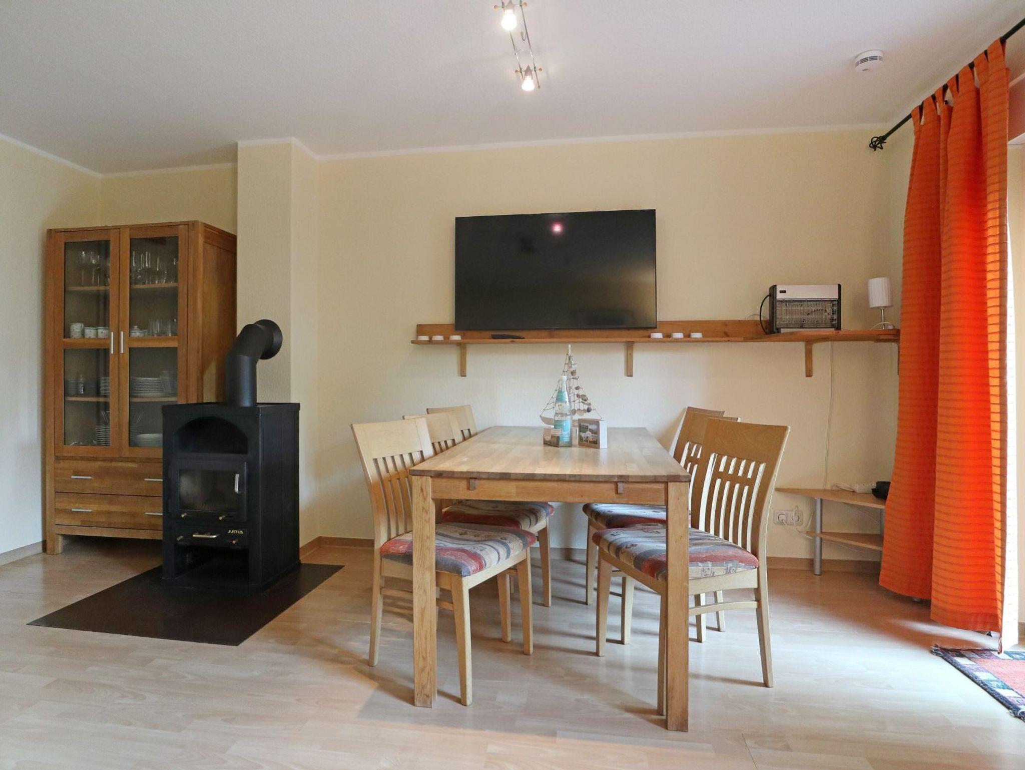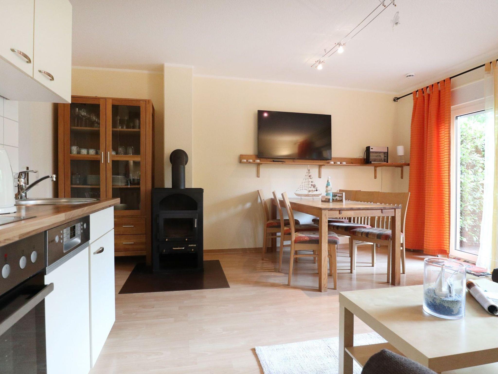 Das Ferien Reihenhaus ? Urlauberdorf 59B - mit Süd Terrasse bietet auf 54qm Ostseeurlaub zum Wohlfühlen. Der gemütliche Wohn- und Essbereich ist mit einem großen Ecksofa, Kaminofen, Fernseher, Musikanlage, WLAN und einem Esstisch ausgestattet ? ideal für entspannte Stunden mit der Familie. Zwei separate Schlafzimmer sowie ein Duschbad sind vorhanden. Die integrierte Küchenzeile ist gut ausgestattet mit Herd, Backofen, Geschirrspüler, Kühlschrank, Kaffeemaschine, Wasserkocher, Toaster u.v.m. Erholung finden Sie auf der saisonal möblierten Süd Terrasse. Im Erdgeschoss befinden sich ein Schlafzimmer mit einem Etagenbett und einem Einzelbett sowie Kleiderschrank. Ebenso ist ein modernisiertes Duschbad mit WC und kostenfreier Waschmaschinen Nutzung vorhanden. Über eine Treppe gelangen Sie ins Obergeschoss mit einem weiteren Schlafzimmer mit Doppelbett, Kleiderschrank, 2. Fernseher. Familienfreundlich gehören ein Kinderhochstuhl und ein Bollerwagen zur Ausstattung. Das Nichtraucherhaus ist für bis zu 5 Personen geeignet. Ein PKW-Stellplatz befindet sich kostenfrei am Haus. Weitere PKW-Stellplätze stehen in der Umgebung im öffentlichen Bereich kostenpflichtig zur Verfügung. Haustiere nicht erlaubt. Das Laden von Elektro und Hybridfahrzeugen ist nicht gestattet. Hiervon sind Akkus von E-Bikes & Pedelecs (unter Aufsicht) ausgenommen.