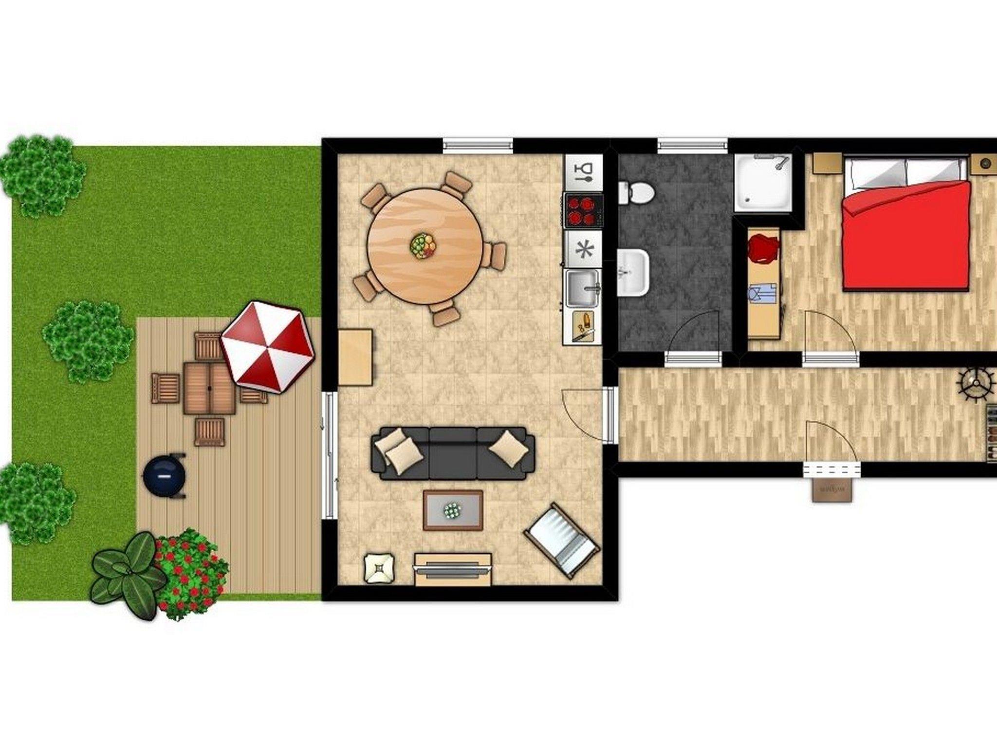 Die moderne 2-Zimmer-Ferienwohnung liegt im Erdgeschoss und befindet sich nicht weit vom Ortskern vom Ostseebad Boltenhagen, nur 550m vom schönen Ostseestrand entfernt.
