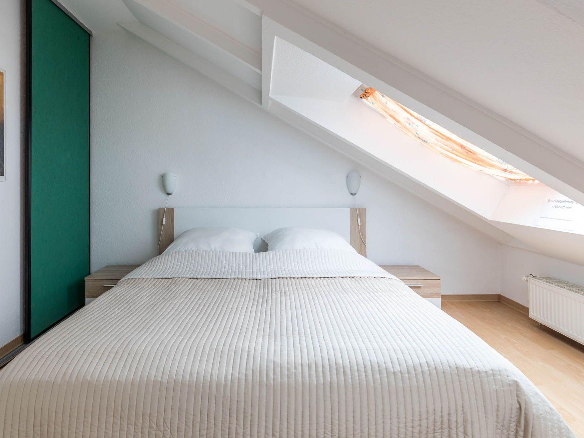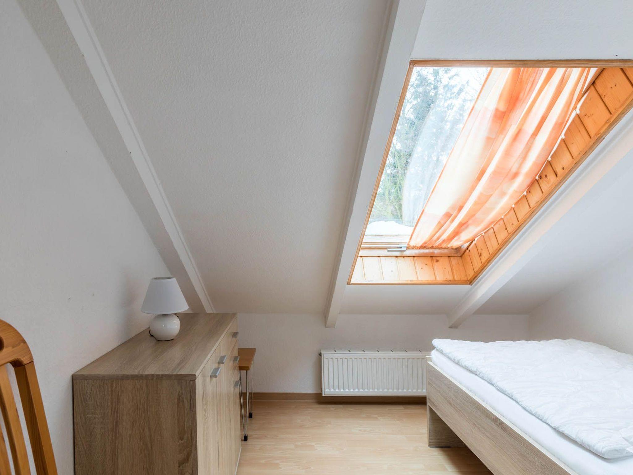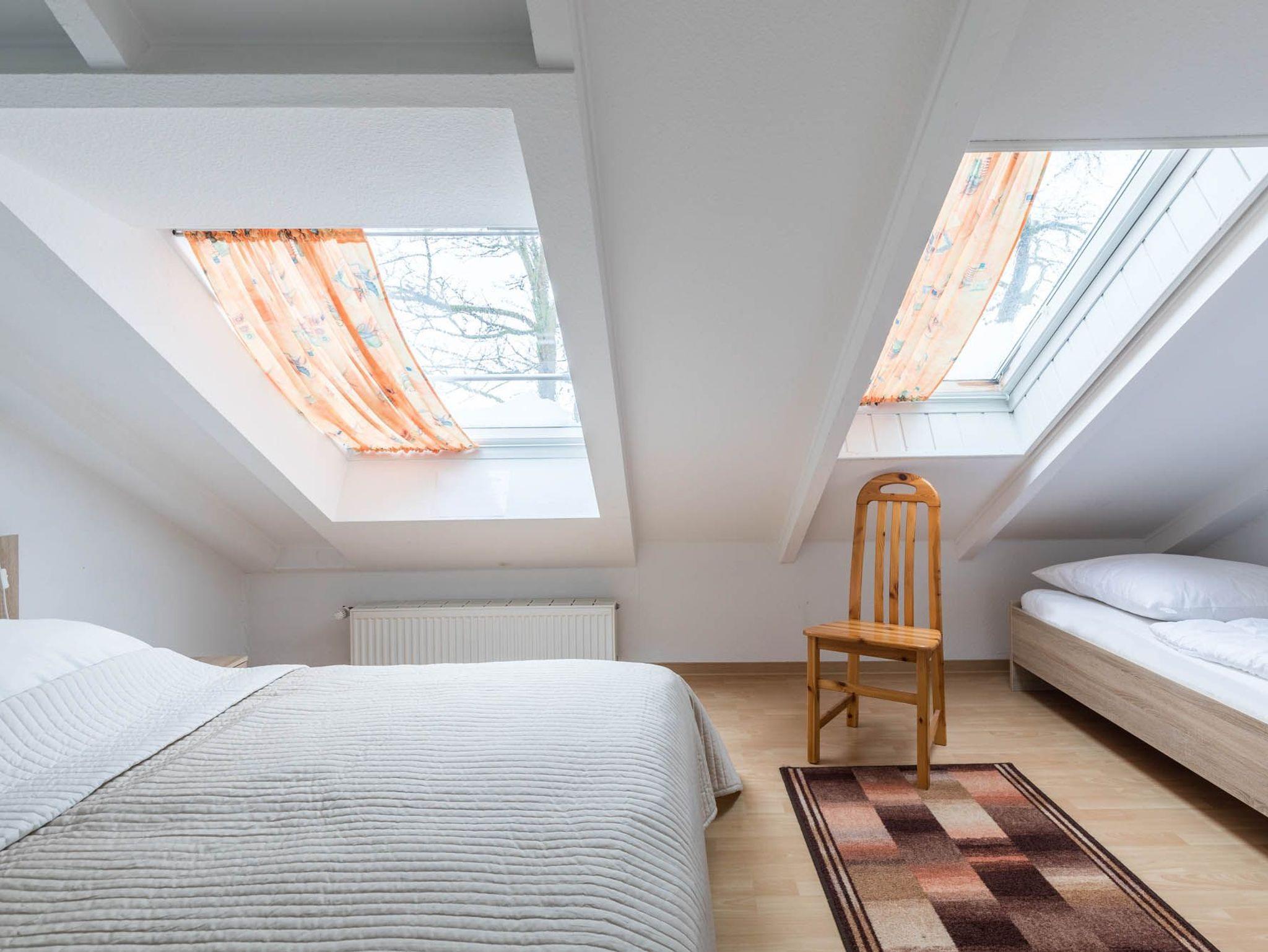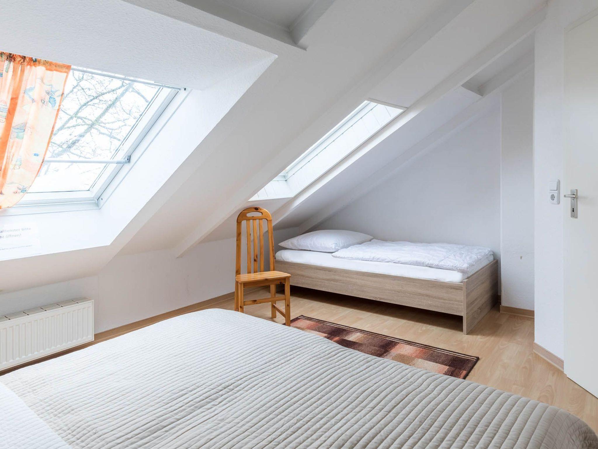 Das größere Schlafzimmer bietet Ihnen ein Doppelbett und ein Einzelbett. Zwei Dachfenster sorgen für ausreichend Tageslicht. Ein Einbaukleiderschrank für Ihre Garderobe ist vorhanden. Im Kinder/Gästezimmer befindet sich ein Einzelbett. Das Aufstellen eines Kinderreisebettes ist möglich.