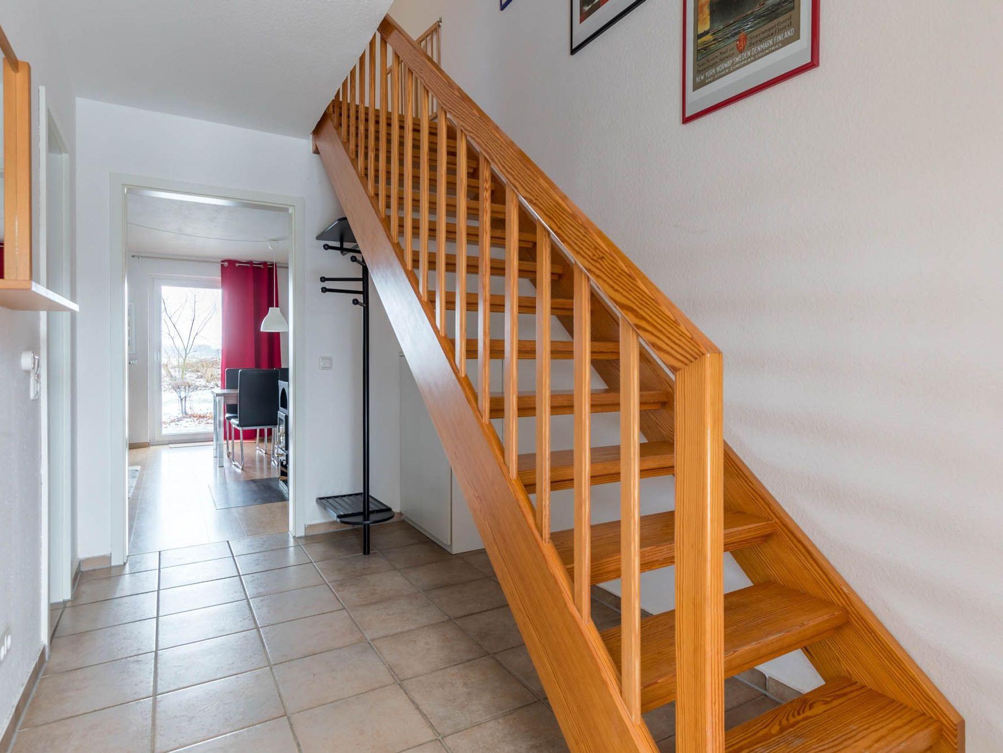 Vom Flur aus führt eine Holztreppe in die nächste Etage.
