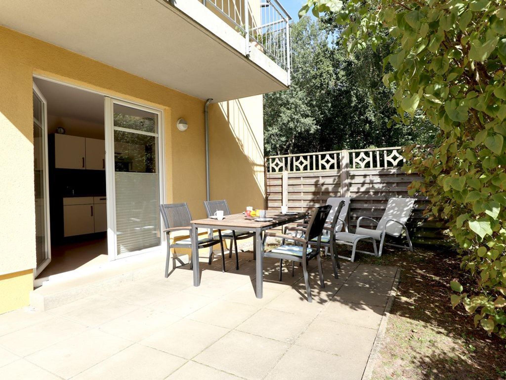 Komfortables Erdgeschoss-Appartement Bernstein 4 in Boltenhagen, nur 150 m vom Strand entfernt, mit moderner Wohnküche und Terrasse.