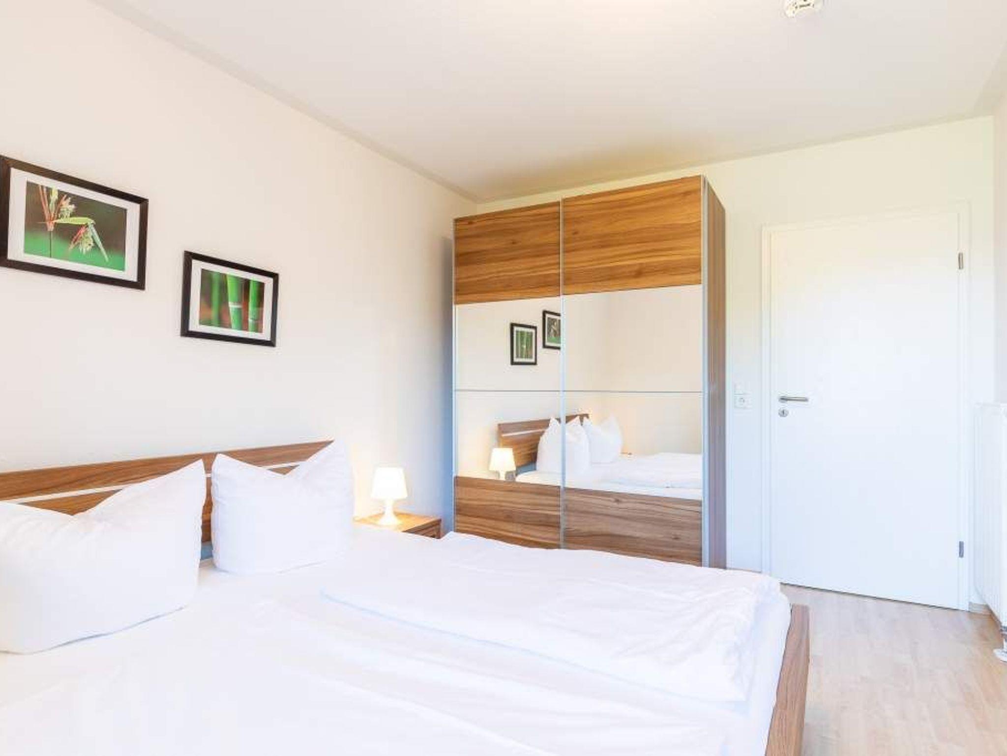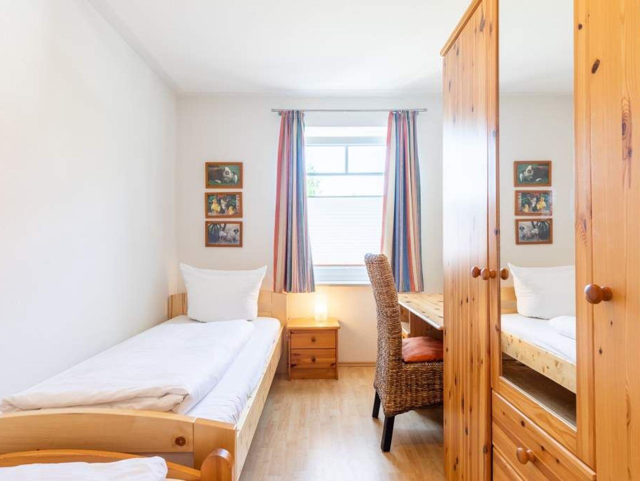 Zum Schlafen bietet die Wohnung ein Schlafzimmer mit Doppelbett, Kleiderschrank und LED Smart TV sowie ein Gäste-/ Kinderzimmer mit zwei Einzelbetten, Kleiderschrank und Schreibtisch.