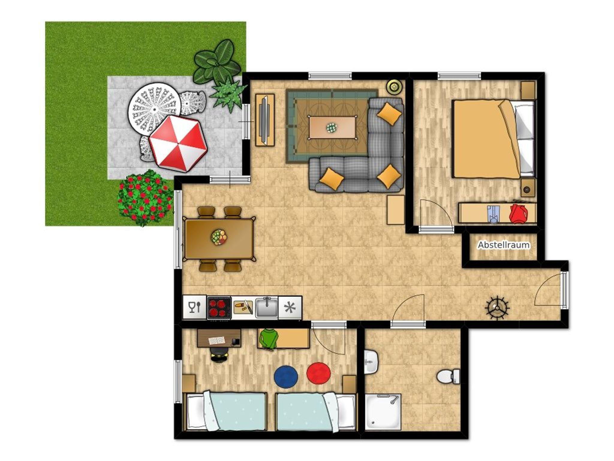 Die familienfreundliche 3-Zimmer-Ferienwohnung im Erdgeschoss bietet auf rund 68qm Wohnfläche eine moderne Ausstattung für bis zu 4 Gäste + Kleinkind.