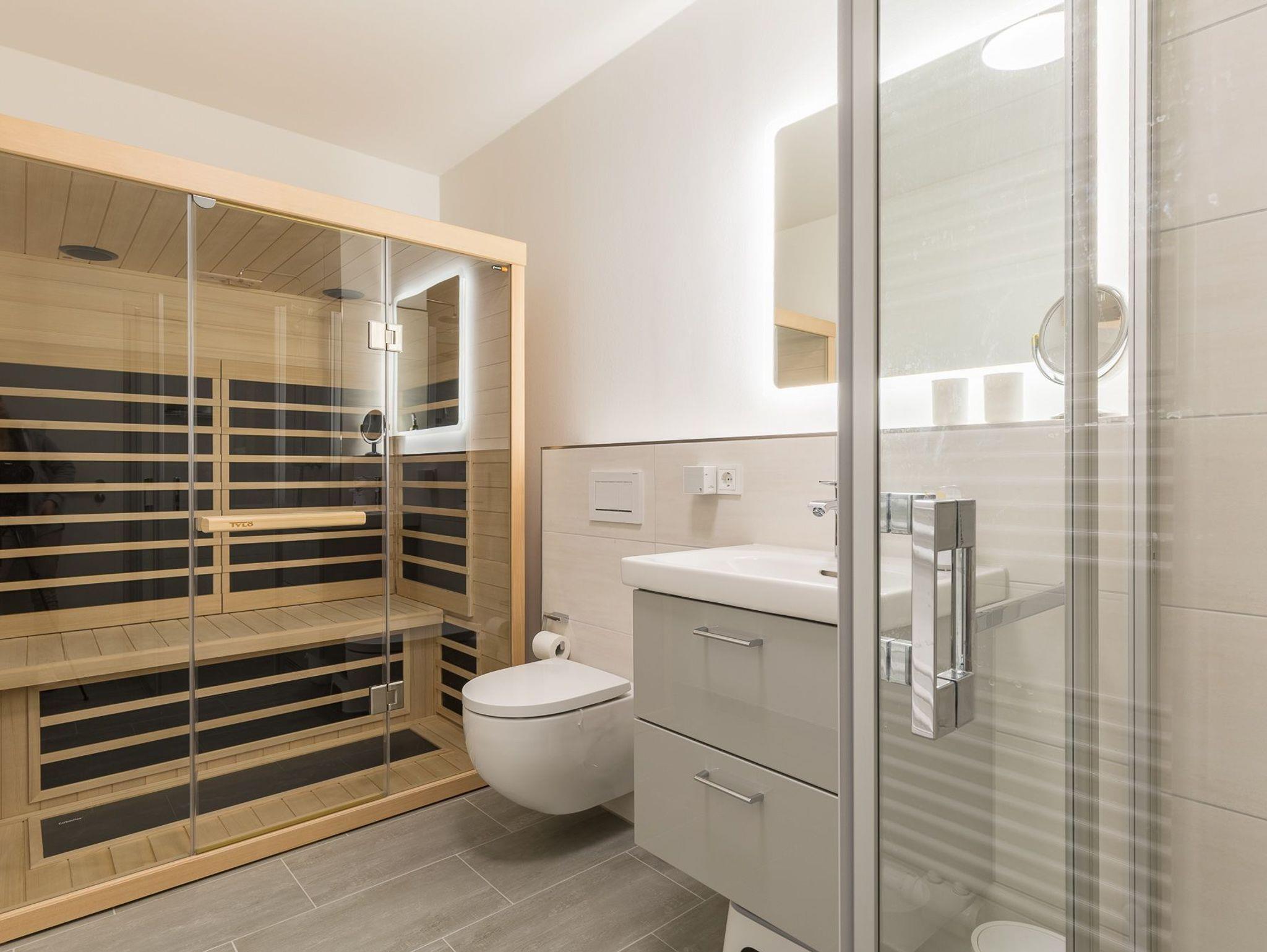 Die Ferienwohnung hat 3 Schlafzimmer, ein Wohnzimmer mit moderner Küche, 2 Bäder und einen Balkon. Zu den besonderen Extras zählen die Sauna und die Fußbodenheizung.
