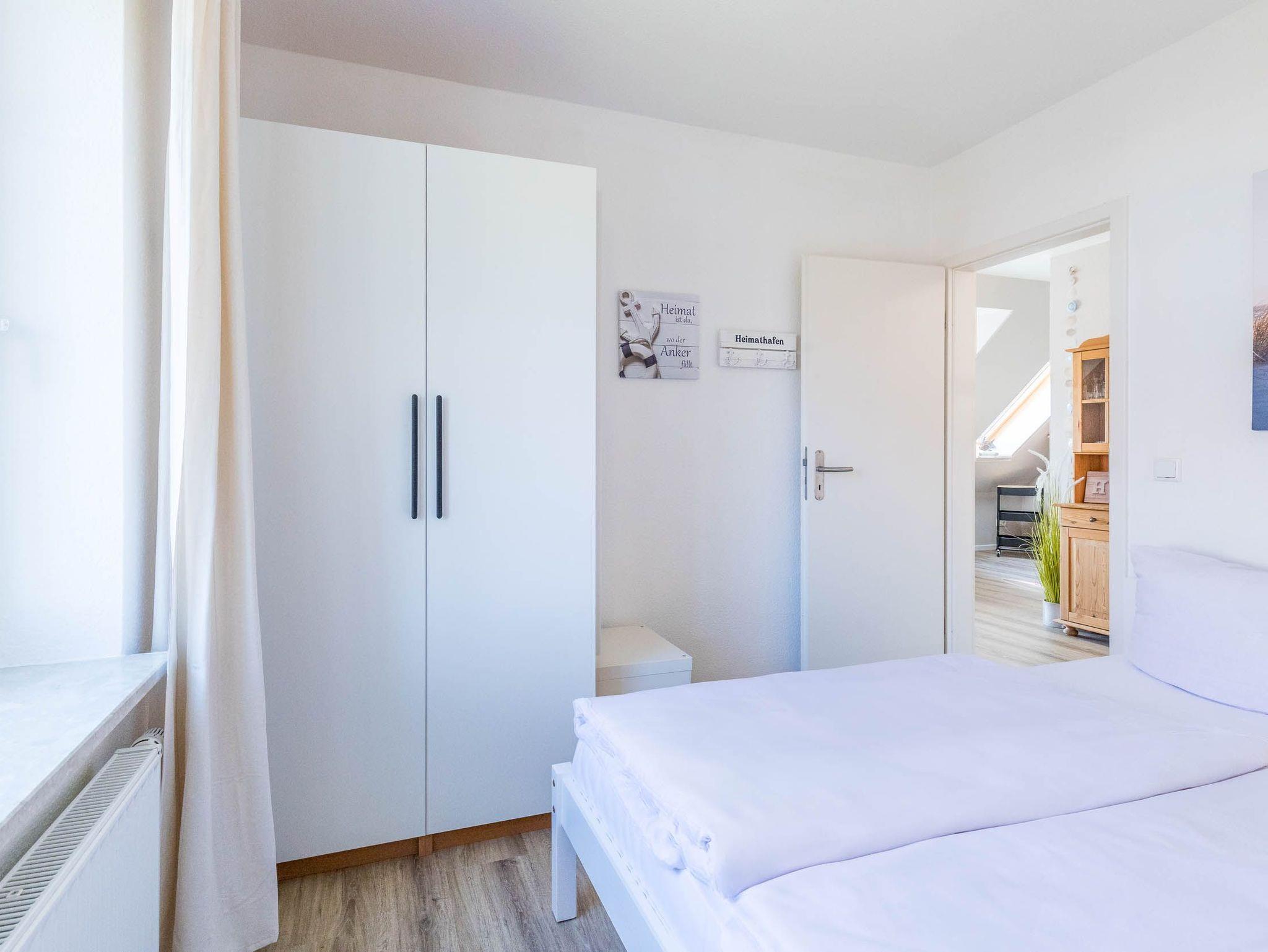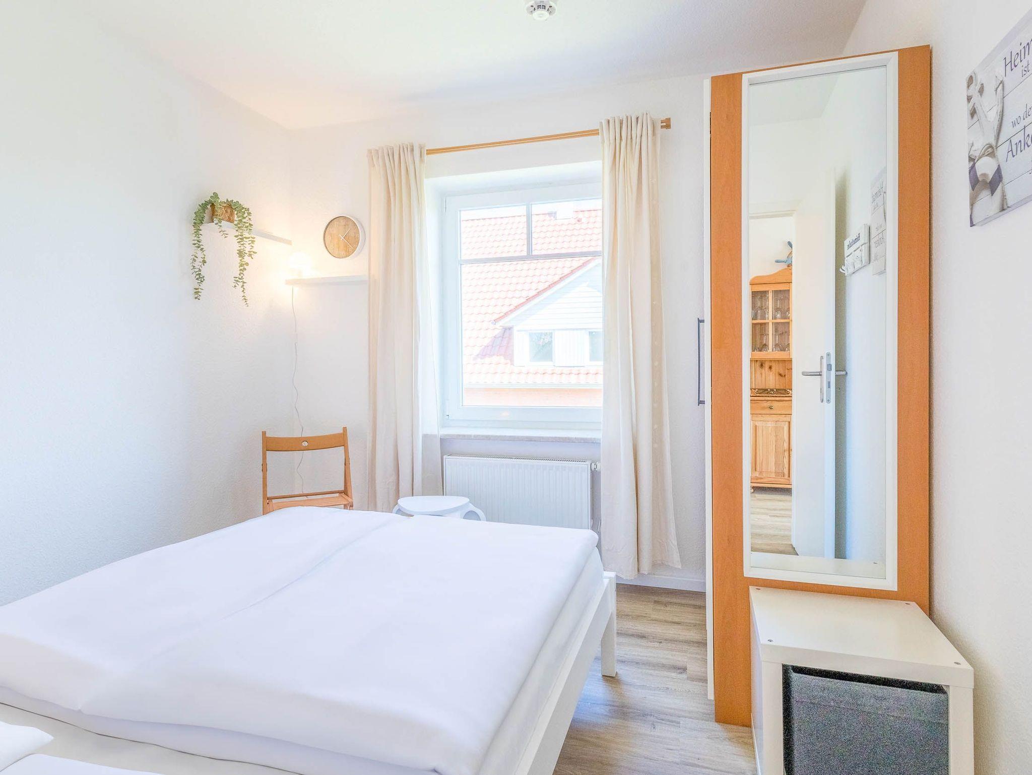 Das Schlafzimmer hier bietet ein kleines französisches Doppelbett ( 140x200 ) und einen Kleiderschrank für Ihre Urlaubsgarderobe.