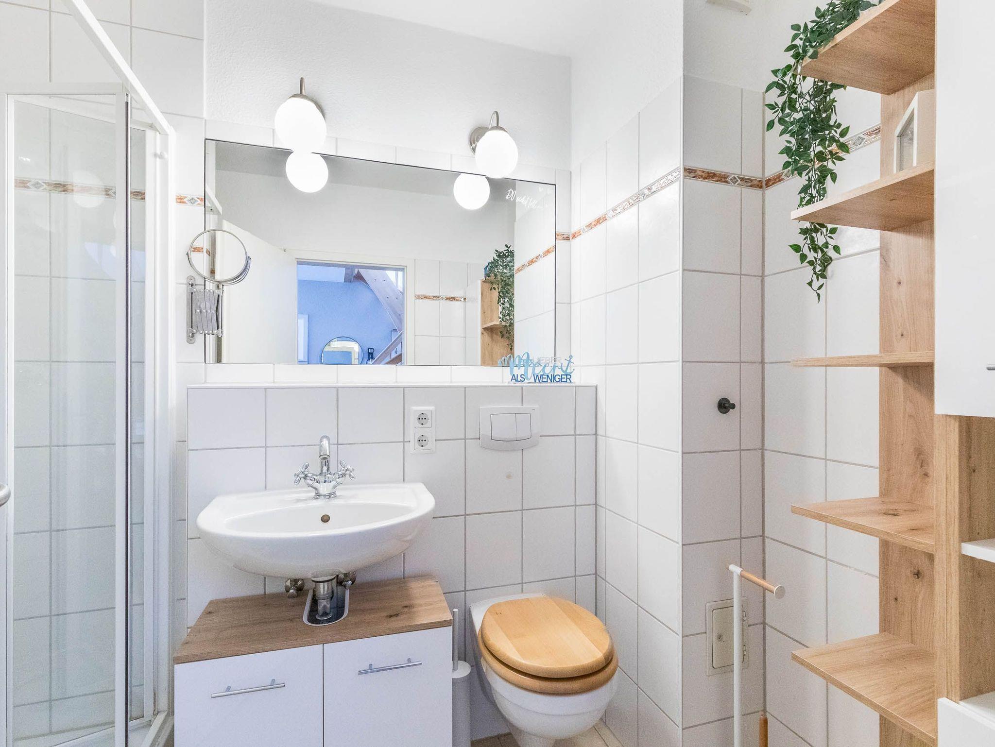 Auch das Bad mit Dusche und WC befindet sich auf dieser Etage.