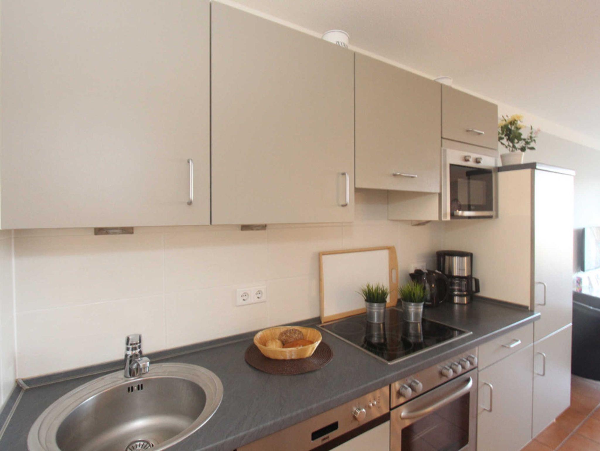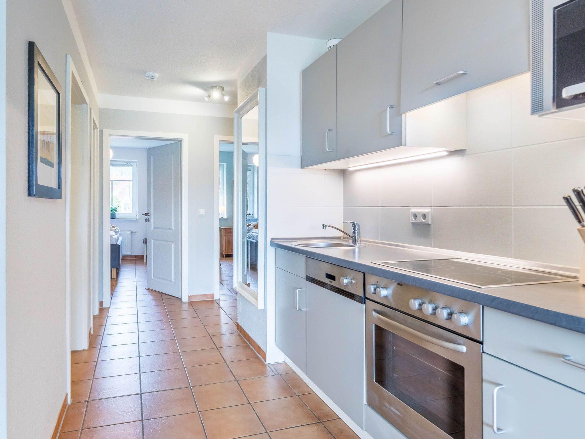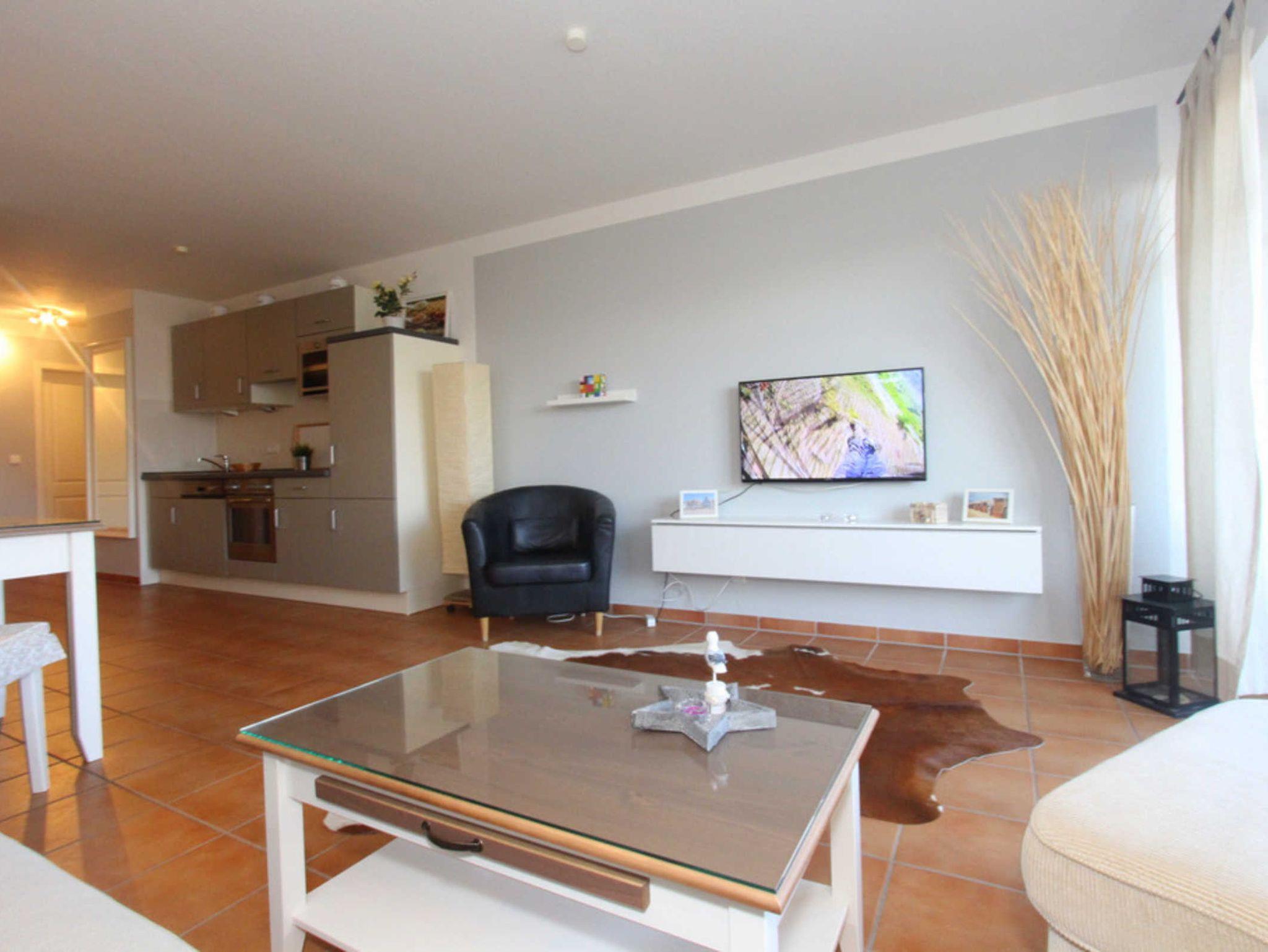Im großzügigen, kombinierten Wohn- und Essbereich finden Sie eine voll ausgestattete Küchenzeile und eine Essecke. Vom Wohnbereich mit SMART-TV und Internet/WLAN gelangen Sie auf den nach Osten ausgerichteten Balkon, auf dem Sie Ihren Ostseeurlaub perfekt genießen können.