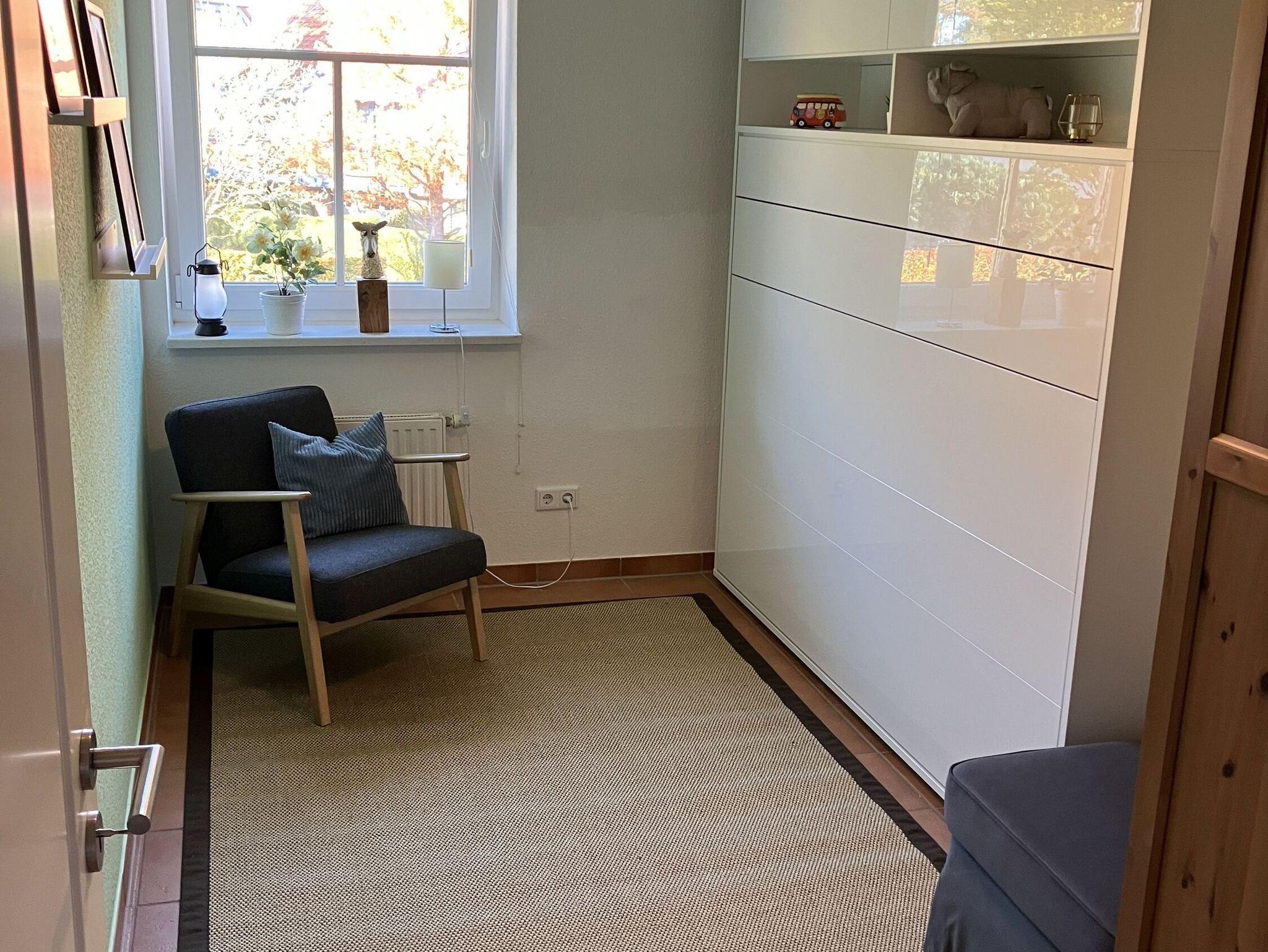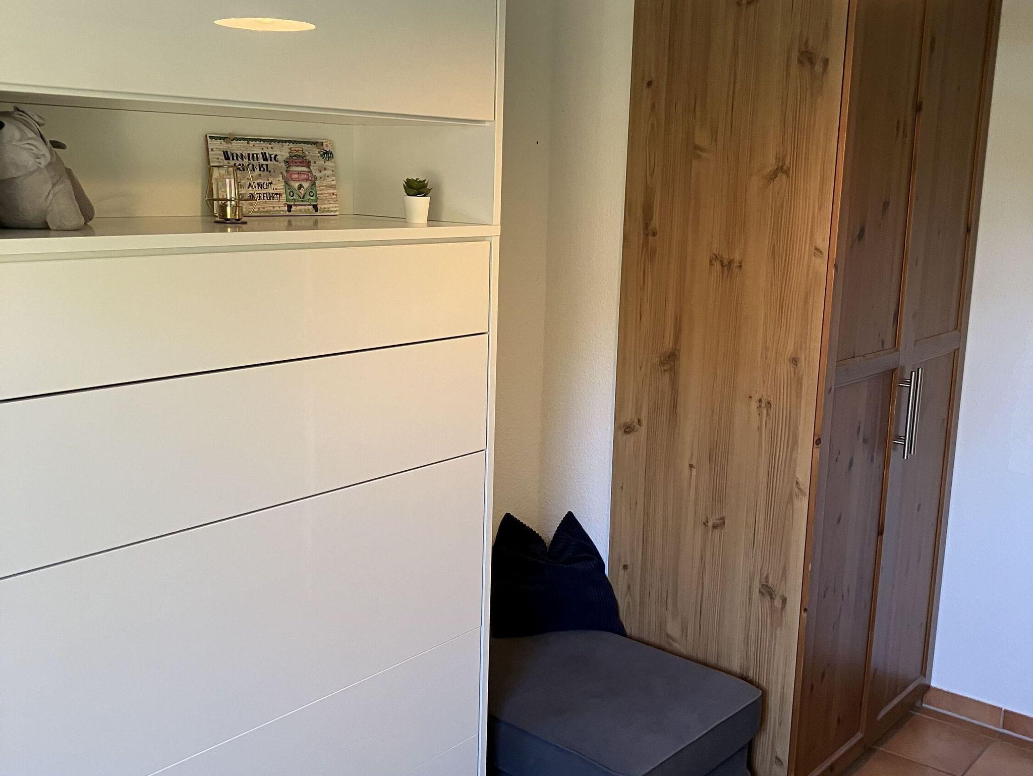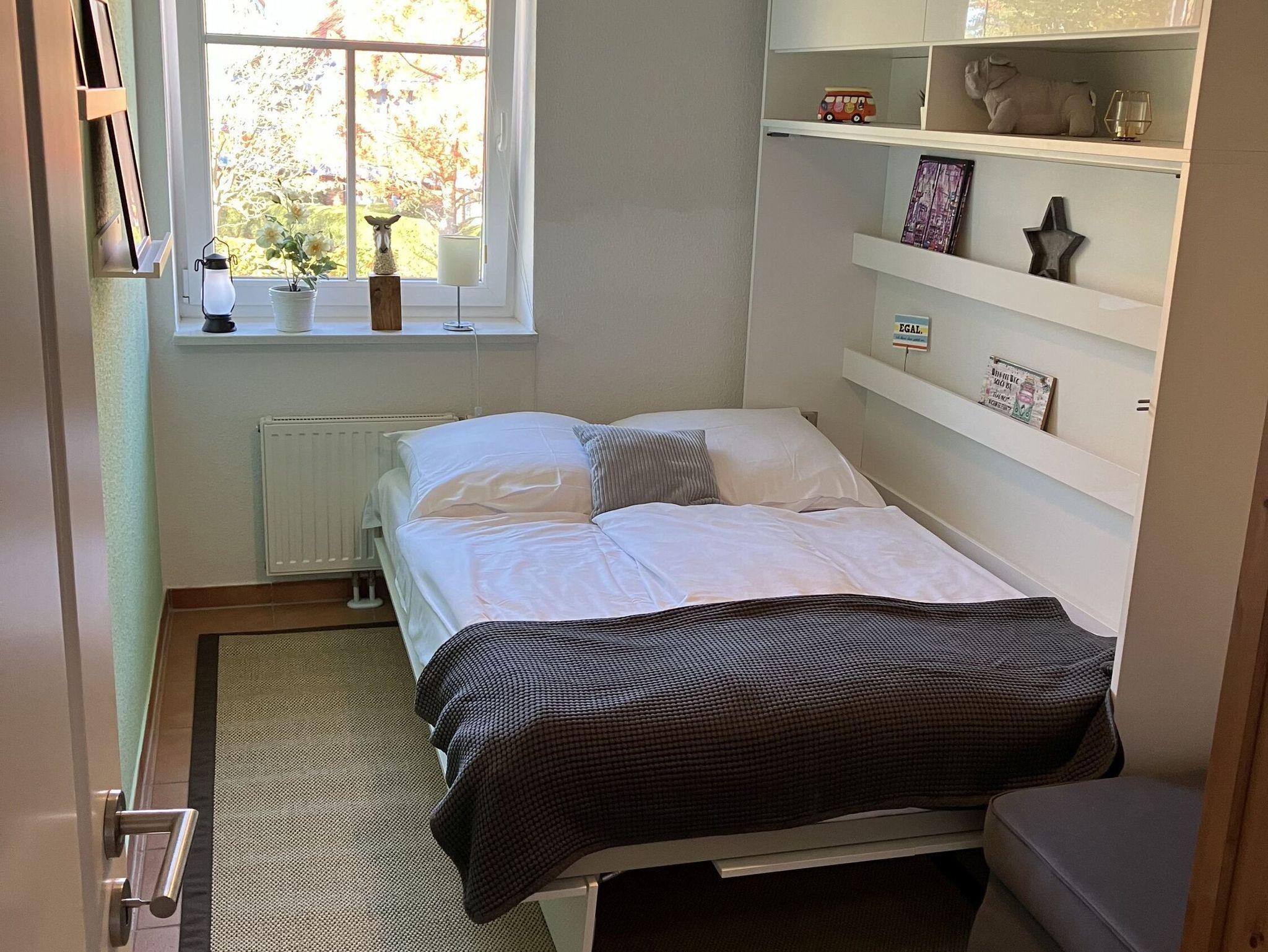 Im Schlafzimmer steht für Sie ein bequemes Doppelbett bereit, im Gäste-/ Kinderzimmer erwartet Sie ein komfortables Wandschrankbett (140x200cm). In beiden Zimmern finden Sie auch je einen Kleiderschrank für die Ablage Ihrer Garderobe.