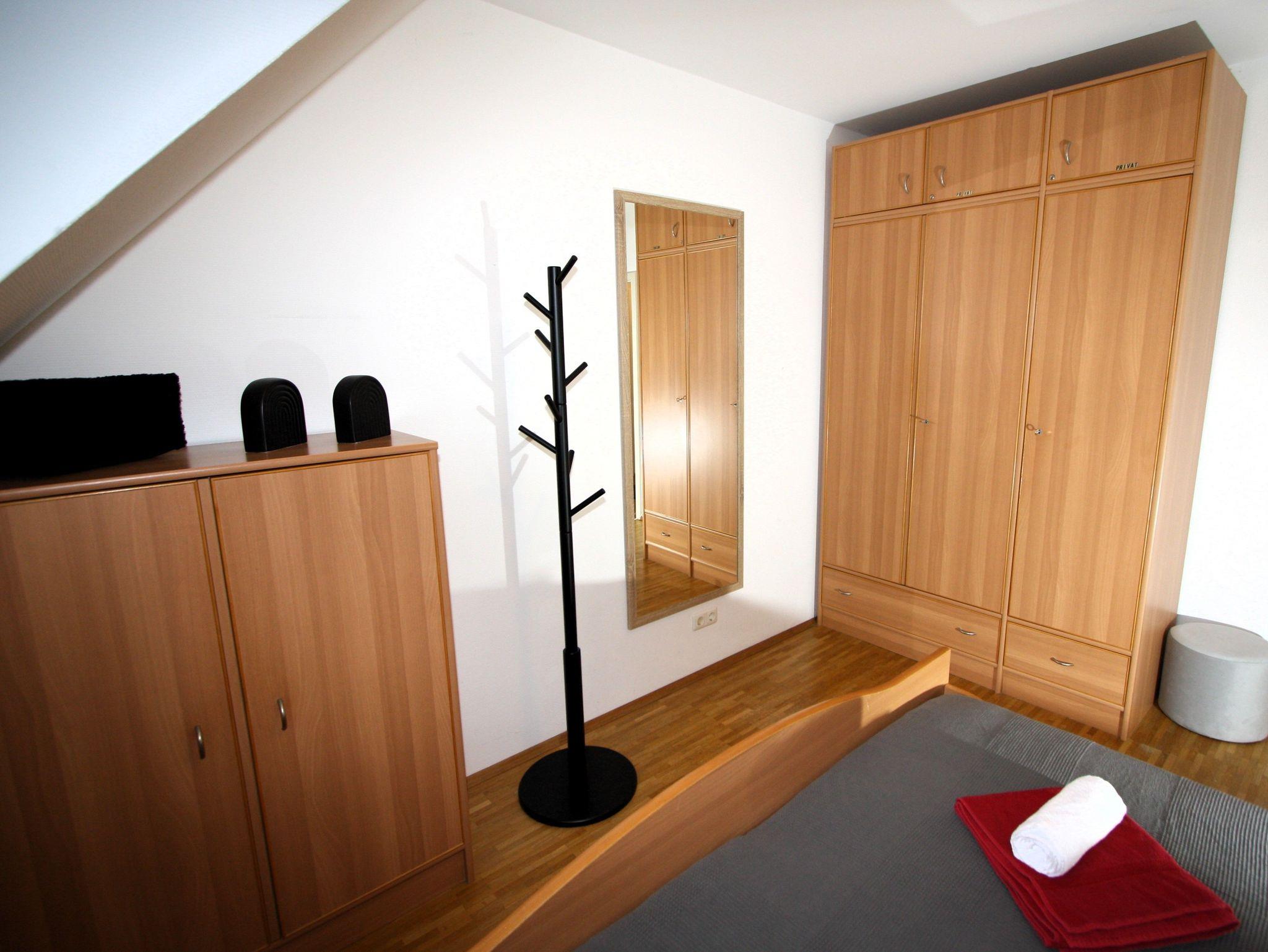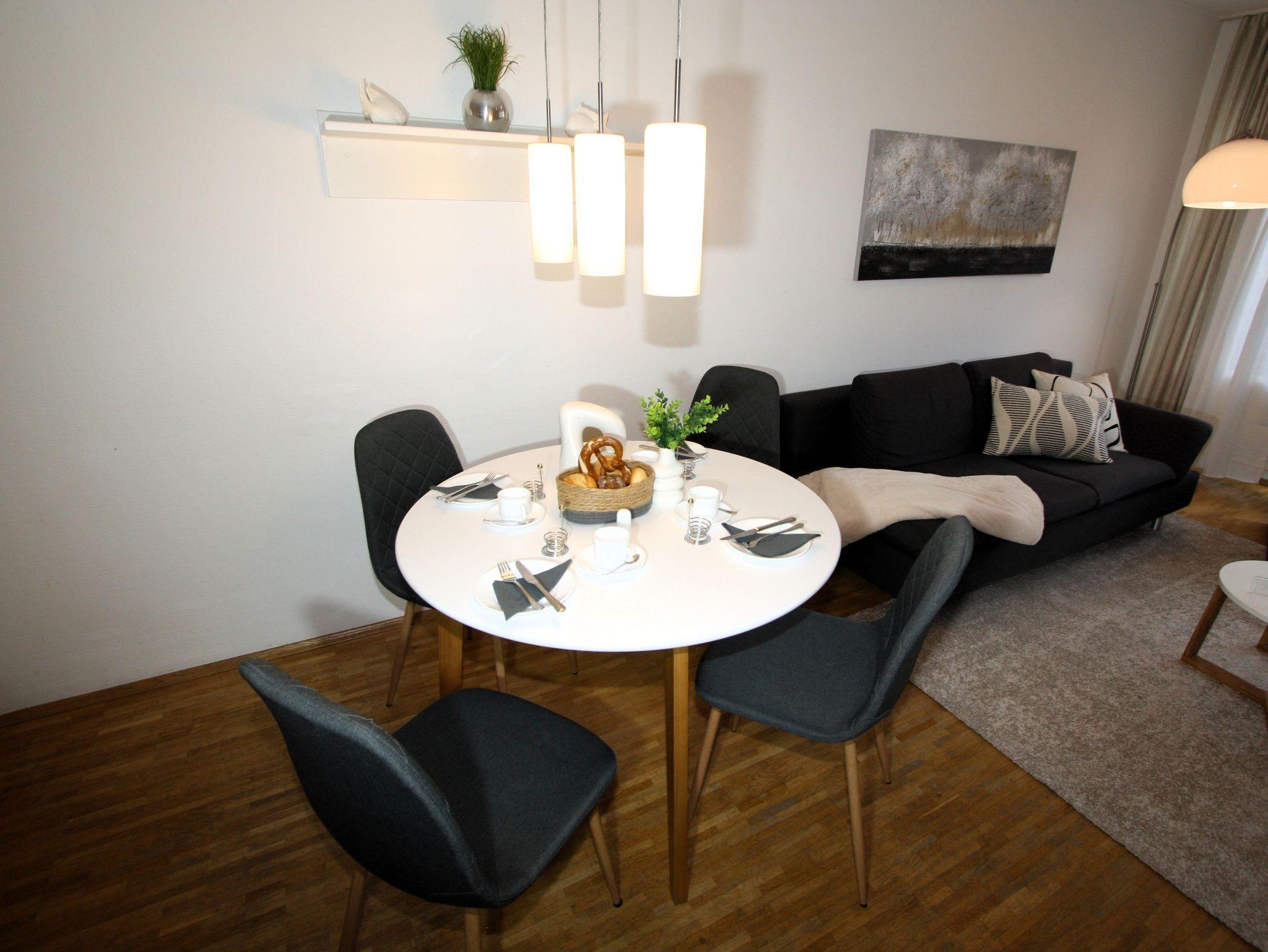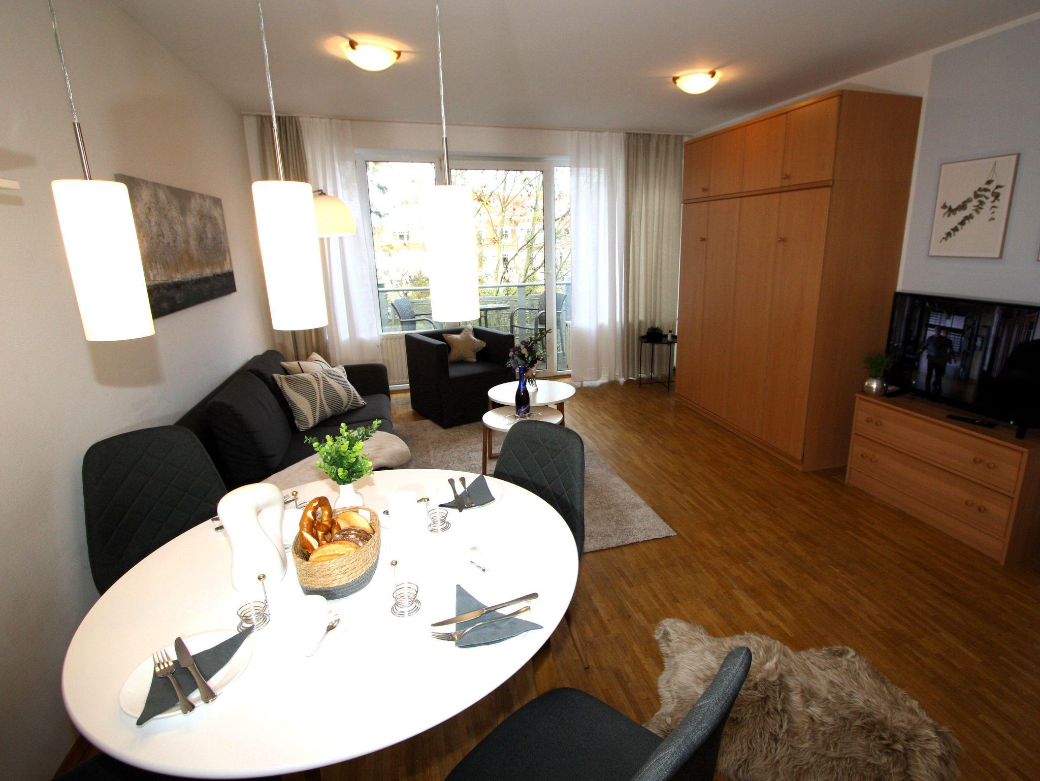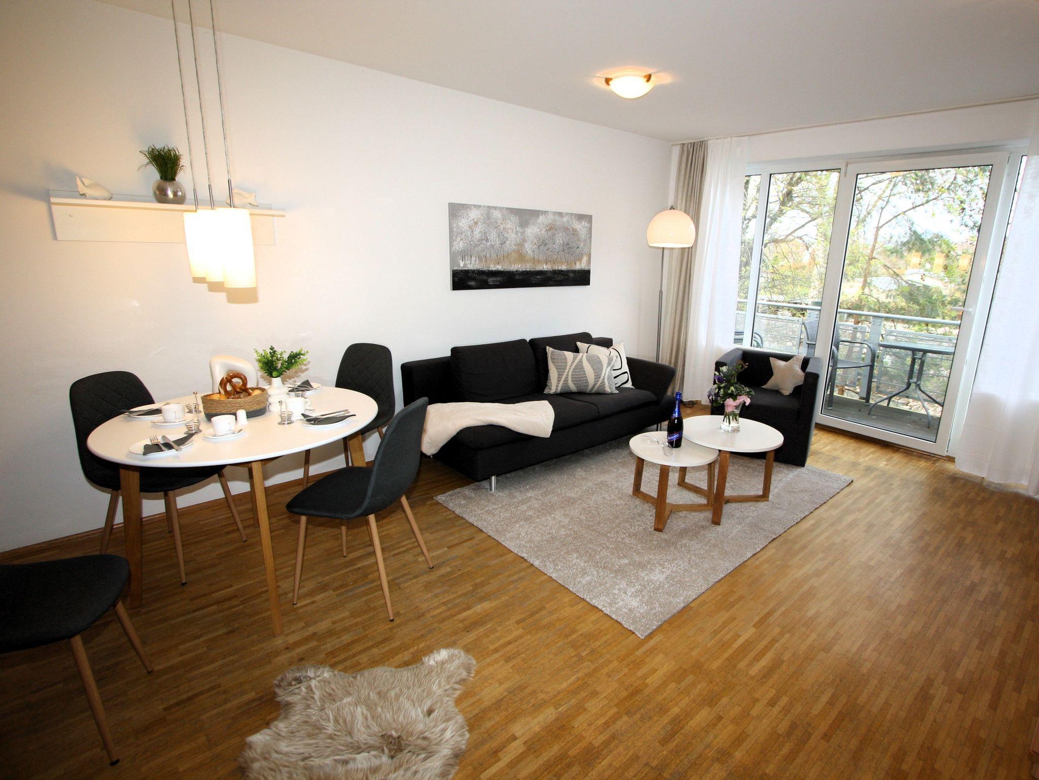 Ihre gut ausgestattete Zwei-Zimmer-Ferienwohnung für bis zu vier Personen verfügt über einen Balkon oder Terrasse, kostenfreies WLAN und sky-Empfang. Sie erreichen die Wohnung bequem mit dem Aufzug, für Ihren PKW steht ein Platz in der Tiefgarage zur Verfügung. Dort befindet sich zudem ein Waschraum mit Münzwaschmaschinen und Münzwäschetrockner und ein Platz für Ihre Fahrräder.