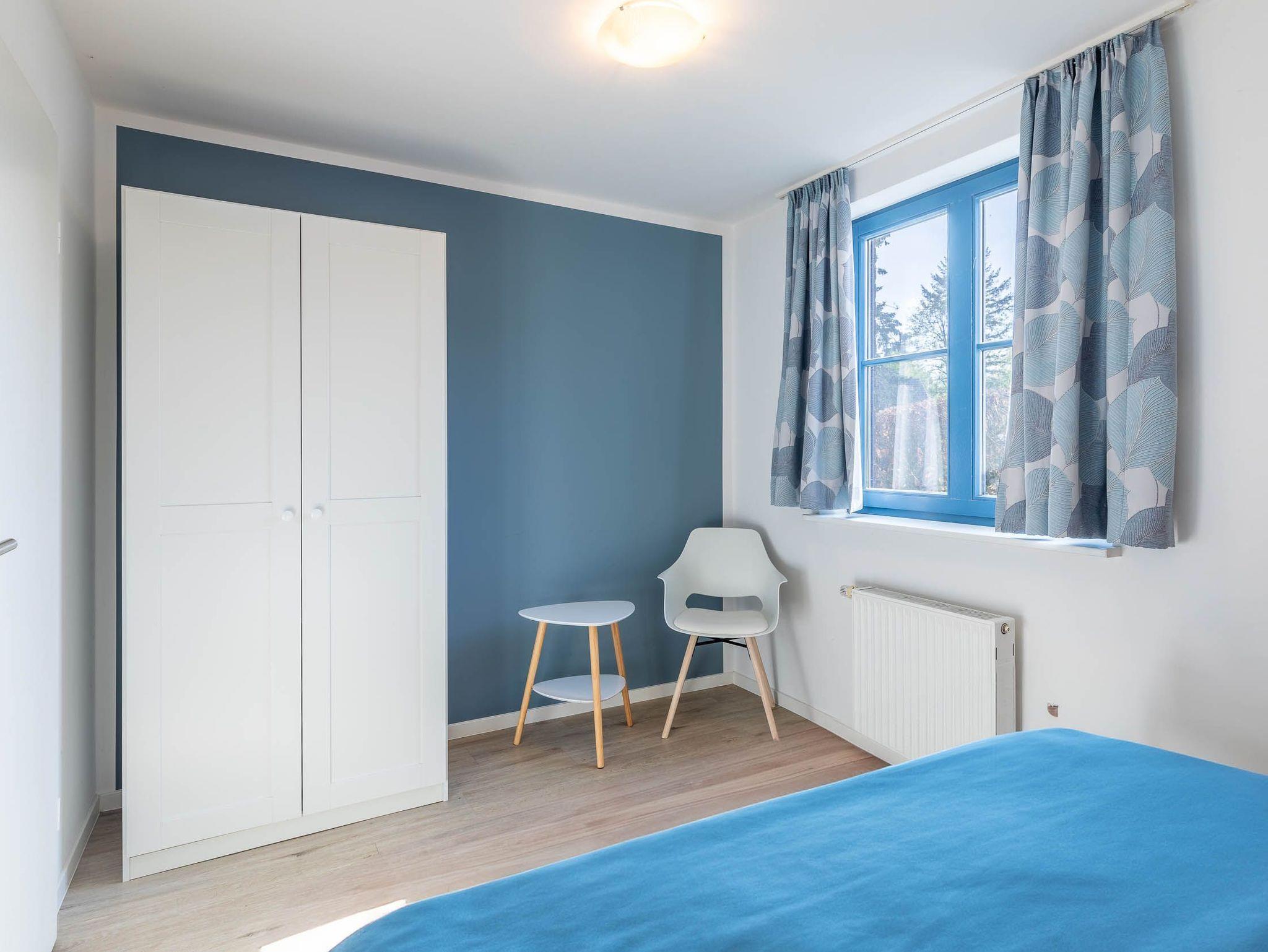 Im freundlich eingerichteten Schlafzimmer finden Sie ein Doppelbett (180x200cm), in dem Sie jede Nacht bequem schlafen werden. Ein mitgebrachtes oder geliehenes Reisebettchen könnte hier bei Bedarf auch mit aufgestellt werden.