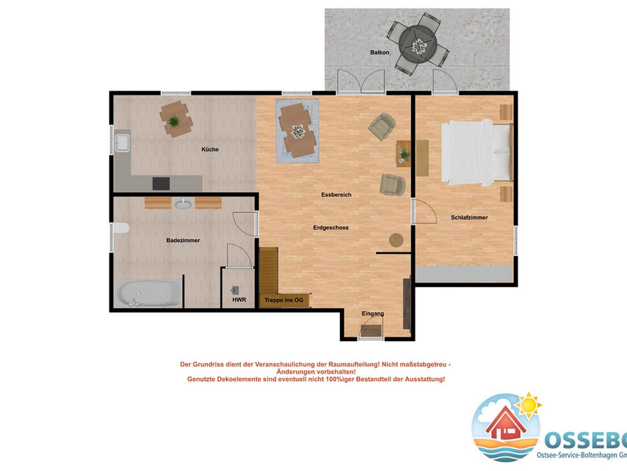 Die gemütliche 2-Zimmer-Wohnung im 1.OG erstreckt sich mit 75qm Wohnfläche über 2 Ebenen und bietet genügend Platz für bis zu 4 Gäste.