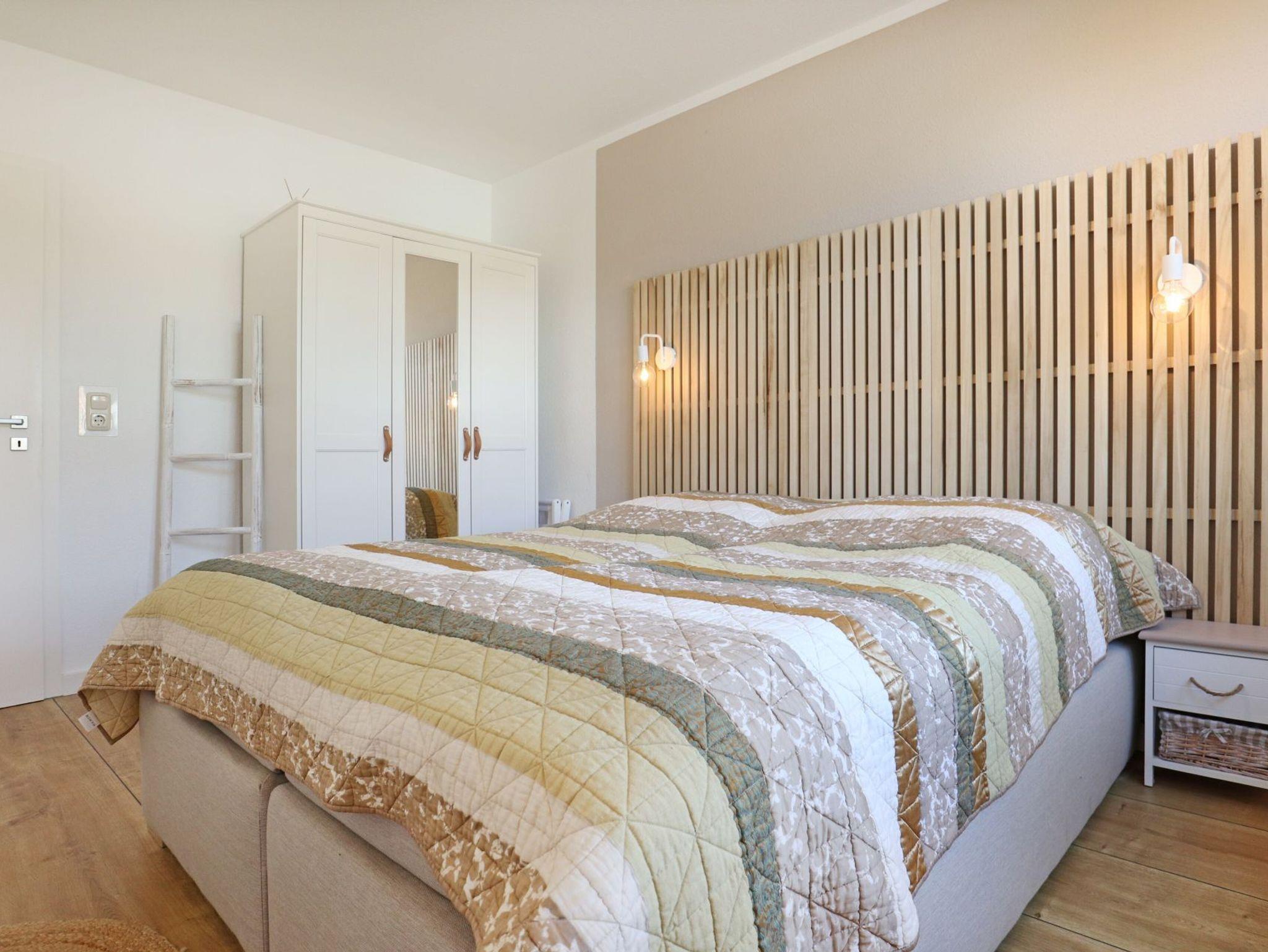 Die komfortabel ausgestattete 2-Zimmer-Wohnung ? Sünnslag 4-108 - verfügt über einen Balkon und ist über eine separate Außentreppe erreichbar. Die Wohnfläche beträgt ca. 50 qm und ist für maximal zwei Personen mit einem Kleinkind ausgelegt. Ein Wohnraum mit integrierter Küchenzeile, ein separates Schlafzimmer sowie ein modernisiertes Duschbad stehen zur Verfügung. Ein Kinderreisebett und ein Kinderhochstuhl sind vorhanden. Nichtraucherwohnung, Haustiere sind nicht erlaubt. Das im 1. Obergeschoss gelegene Appartement besteht aus einem schicken Wohn- und Essbereich mit Sofa, Sessel und Esstisch mit vier Sitzplätzen. Zur Ausstattung gehören Fernseher, Musikanlage sowie kostenfreies WLAN. Die Küchenzeile ist in den Wohnraum integriert und ausgestattet mit Cerankochfeld, Backofen, Mikrowelle, Dunstabzugshaube, Kühlschrank mit Gefrierfach, Kaffeemaschine, Wasserkocher, Toaster und Geschirrspüler. Die Ferienwohnung besitzt einen kleinen Balkon in Süd-/West-Ausrichtung, saisonal möbliert, mit Markise. Das Schlafzimmer ist mit einem Doppelbett und einem Kleiderschrank ausgestattet.