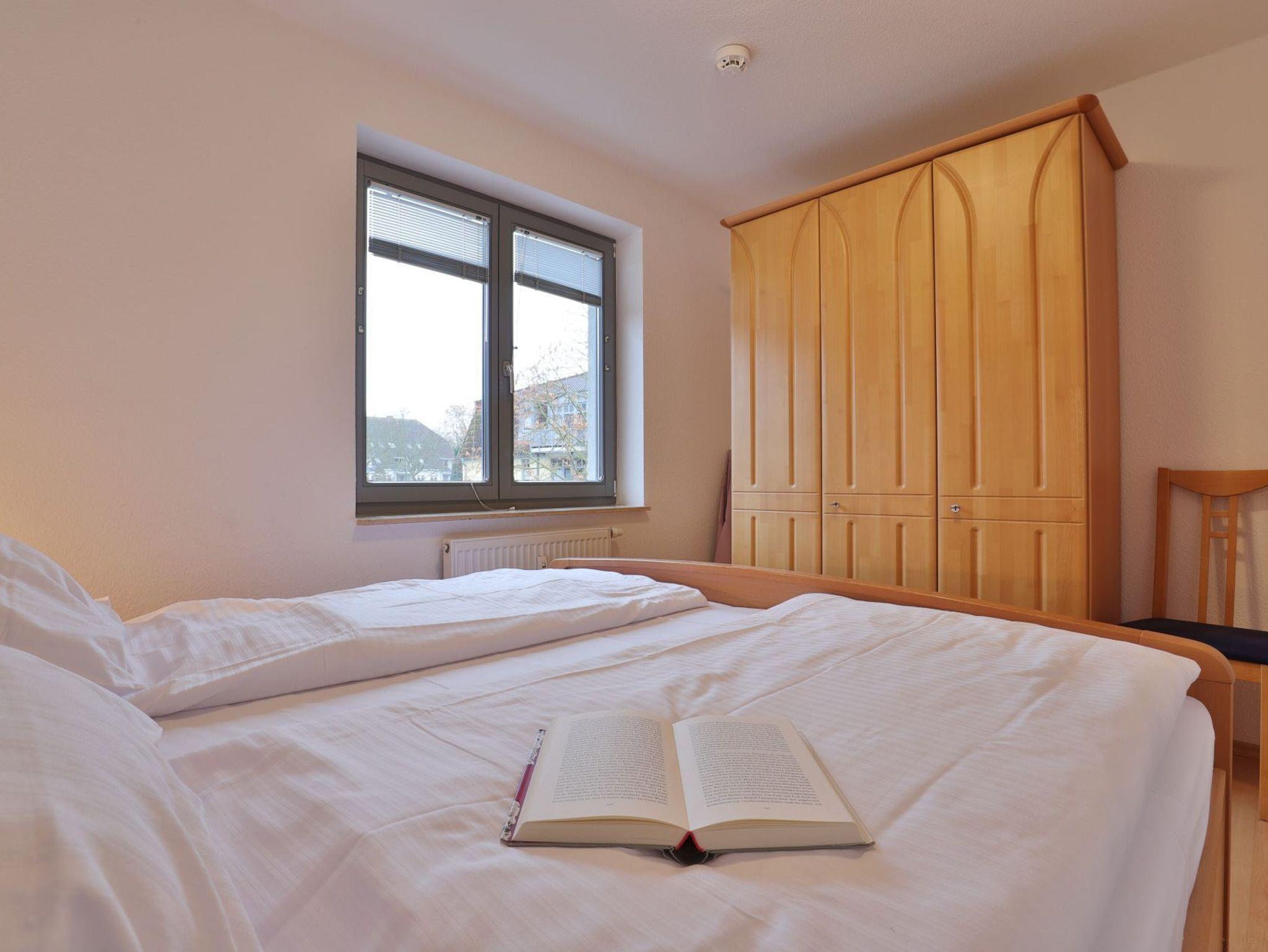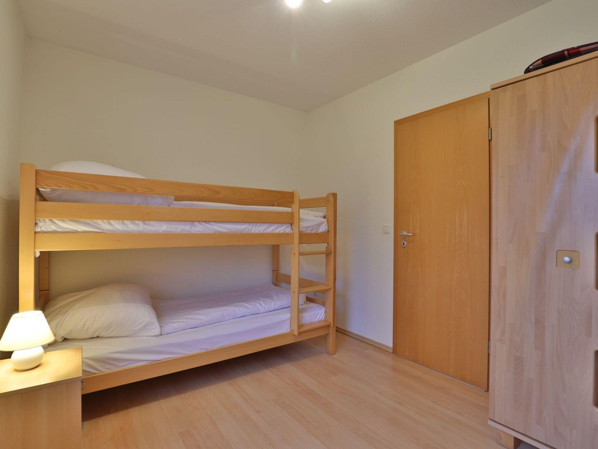 Sie schlafen in zwei separaten Schlafzimmern. Eines mit Doppelbett und Kleiderschrank. Das weitere Schlafzimmer ist mit einem Etagenbett, Kleiderschrank sowie Sitzgelegenheit eingerichtet.