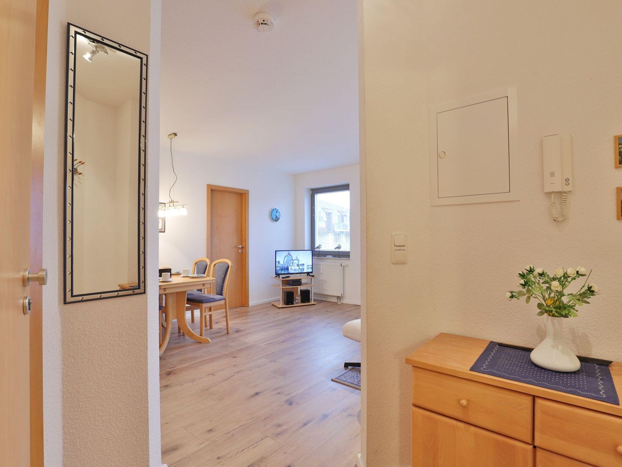 Die gemütliche 3-Zimmer Ferienwohnung mit Balkon, befindet sich im 1.Obergeschoss. Auch Allergiker können sich in dieser Wohnung wohlfühlen. Mit einer Wohnfläche von 53qm bietet das Appartement Platz für max. 4 Personen. Im geräumigen Wohnbereich erwartet Sie eine Sofagarnitur mit Beistelltisch, Esstisch, Fernseher und Musikanlage. Bitte beachten Sie, dass in diesem Appartement kein WLAN zur Verfügung steht.