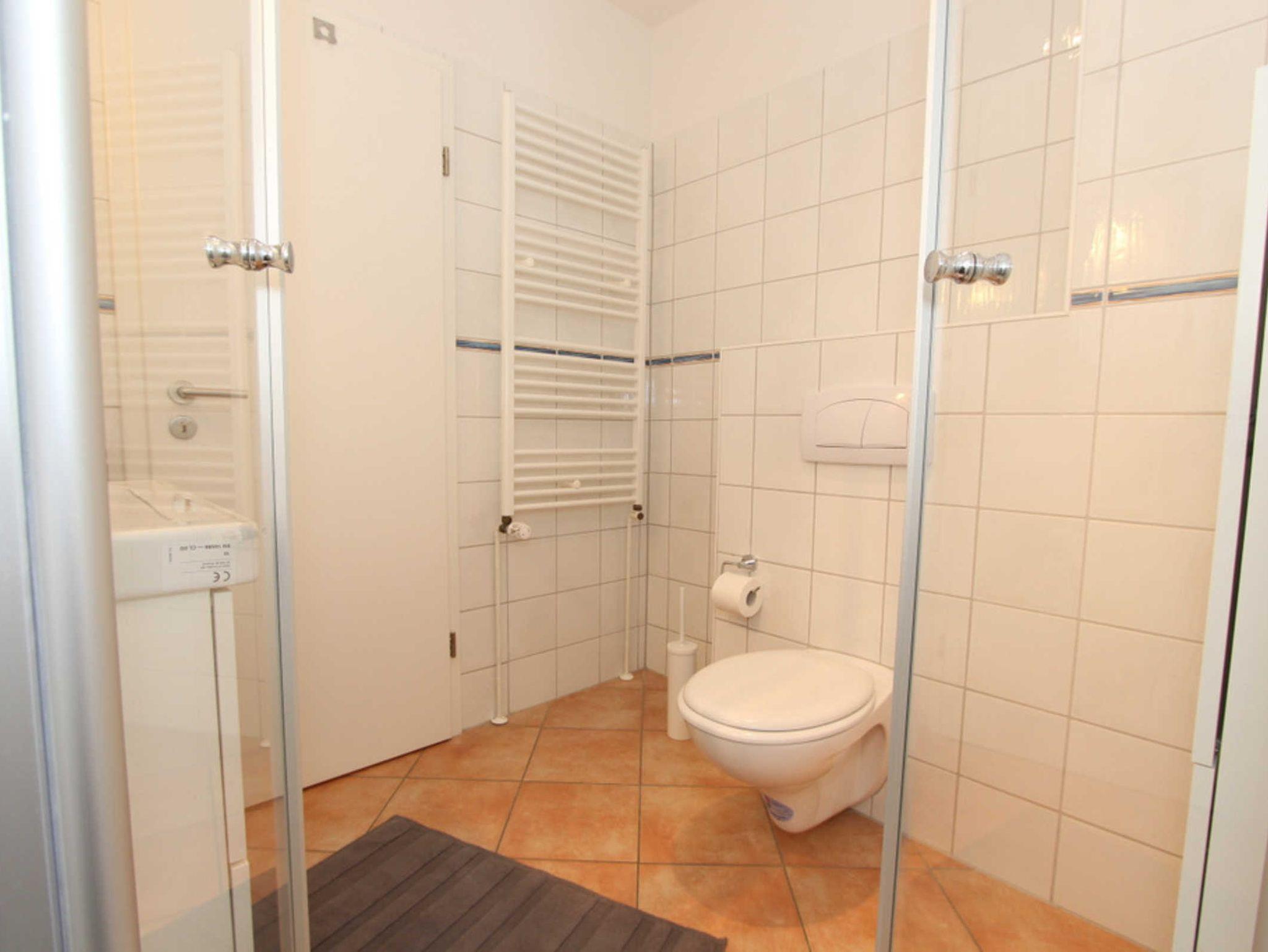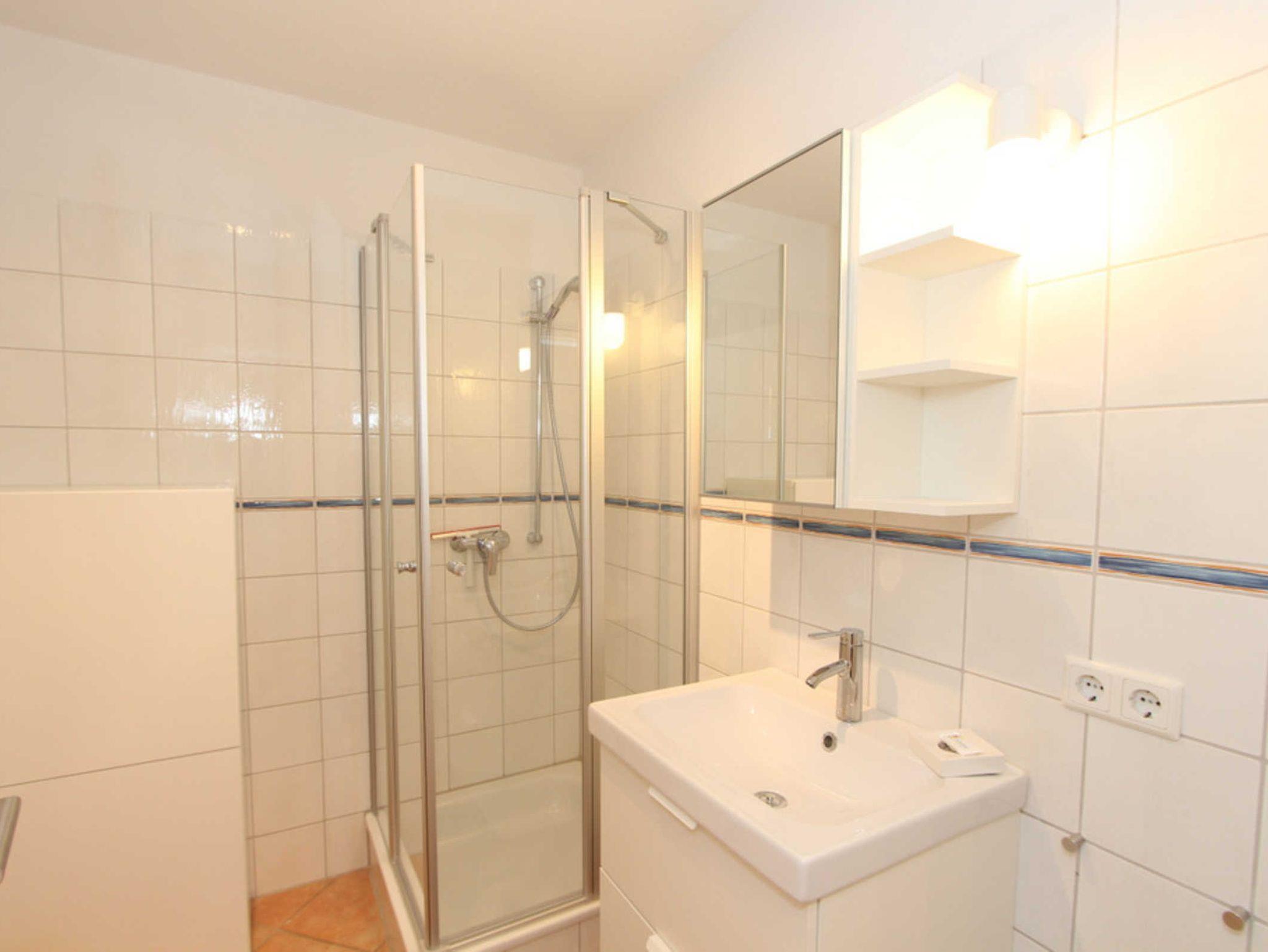 Ebenso finden Sie auf dieser Etage ein Schlafzimmer mit Doppelbett und Kleiderschrank sowie ein modernes Badezimmer mit Dusche und WC sowie einer Handtuchheizung.