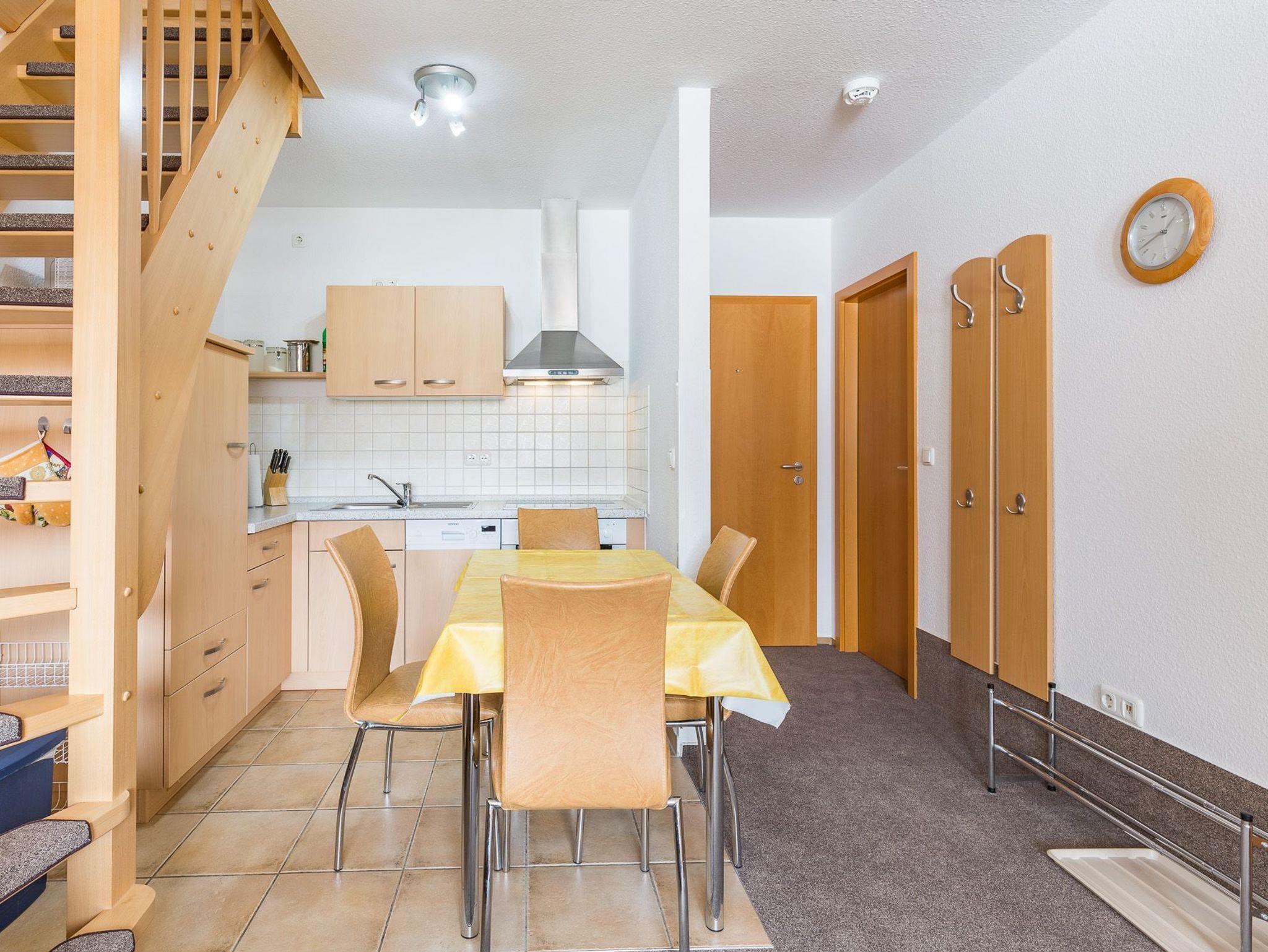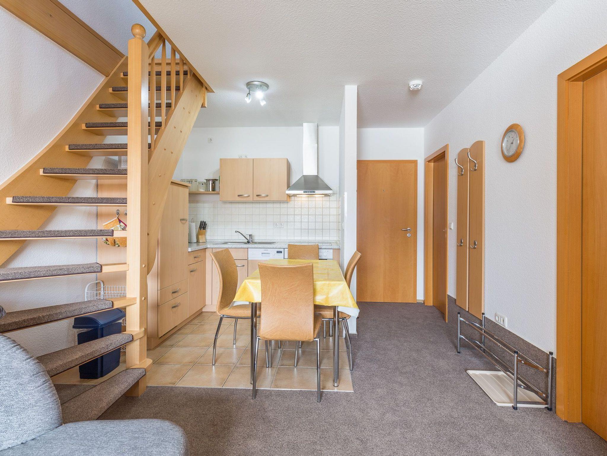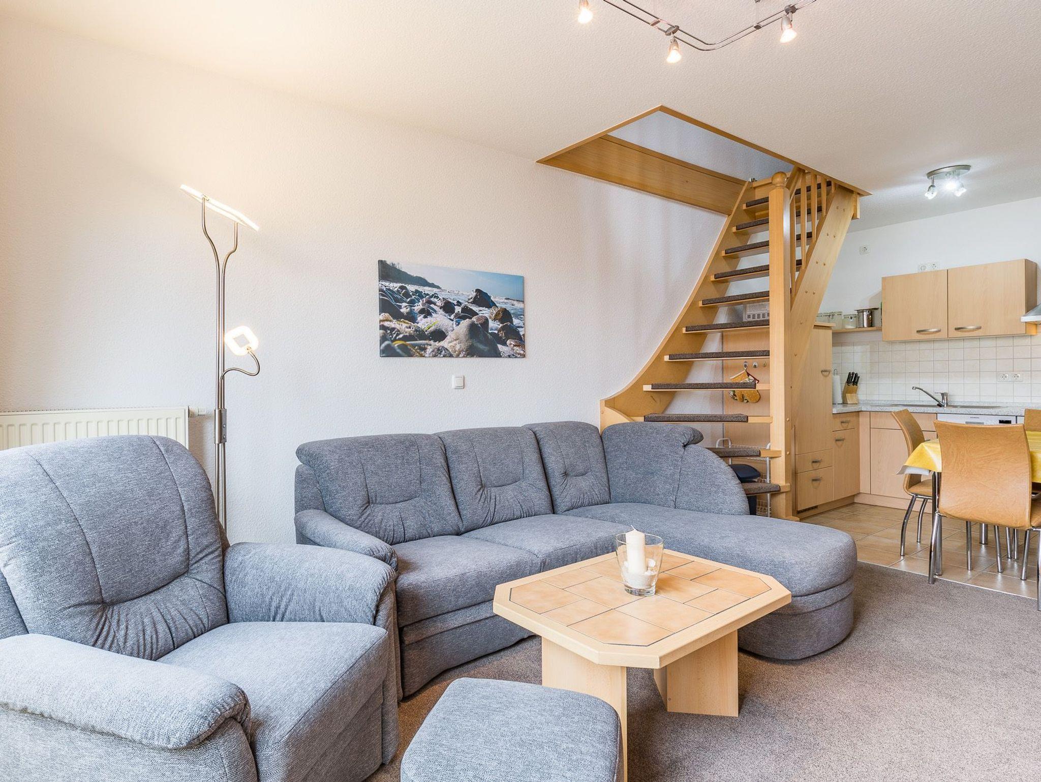 Über den Wohn- und Essbereich haben Sie direkten Zugang zum Balkon. Die Ferienwohnung bietet mit zwei separaten Schlafzimmern, 1 Doppelbett (180x200) mit geteilter Matratze, 1 Etagenbett ( 90 x 200 cm ) und 1 Schlafcouch ( 150 x 200 cm ), Platz für bis zu 4 Personen.