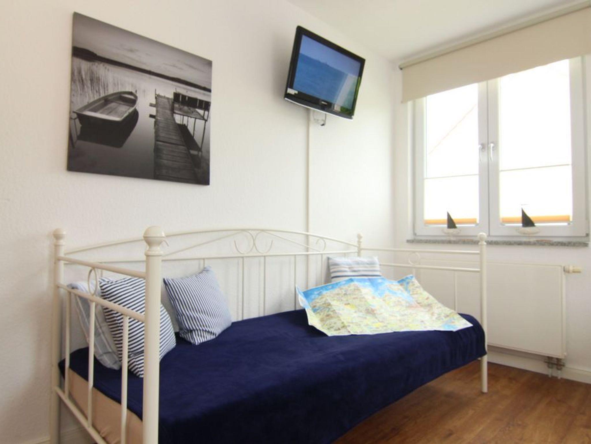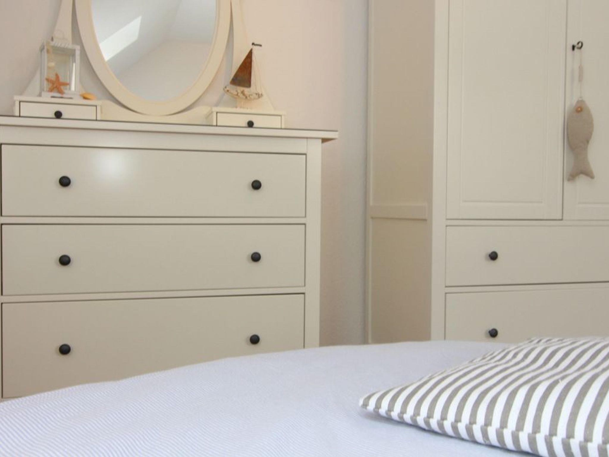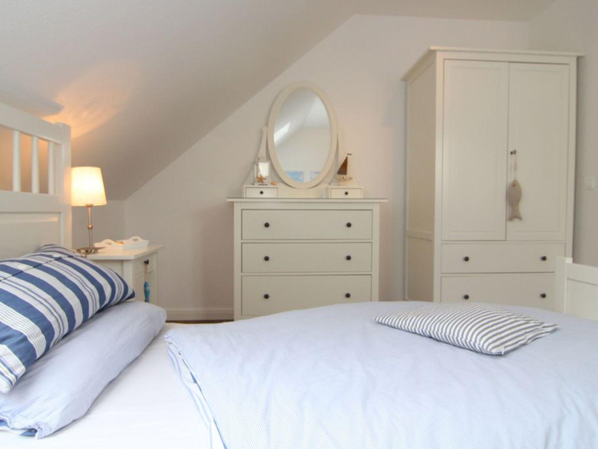 Während das Schlafzimmer mit einem gemütlichen Doppelbett (180x200cm) und 2 Kleiderschränken ausgestattet wurde, bietet das Gäste-/ Kinderzimmer 3 bequeme Einzelbetten (je 90x200cm), eine schöne Frisierkommode und natürlich ebenfalls einen Kleiderschrank. Weiterhin bietet dieses Zimmer einen Fernseher.