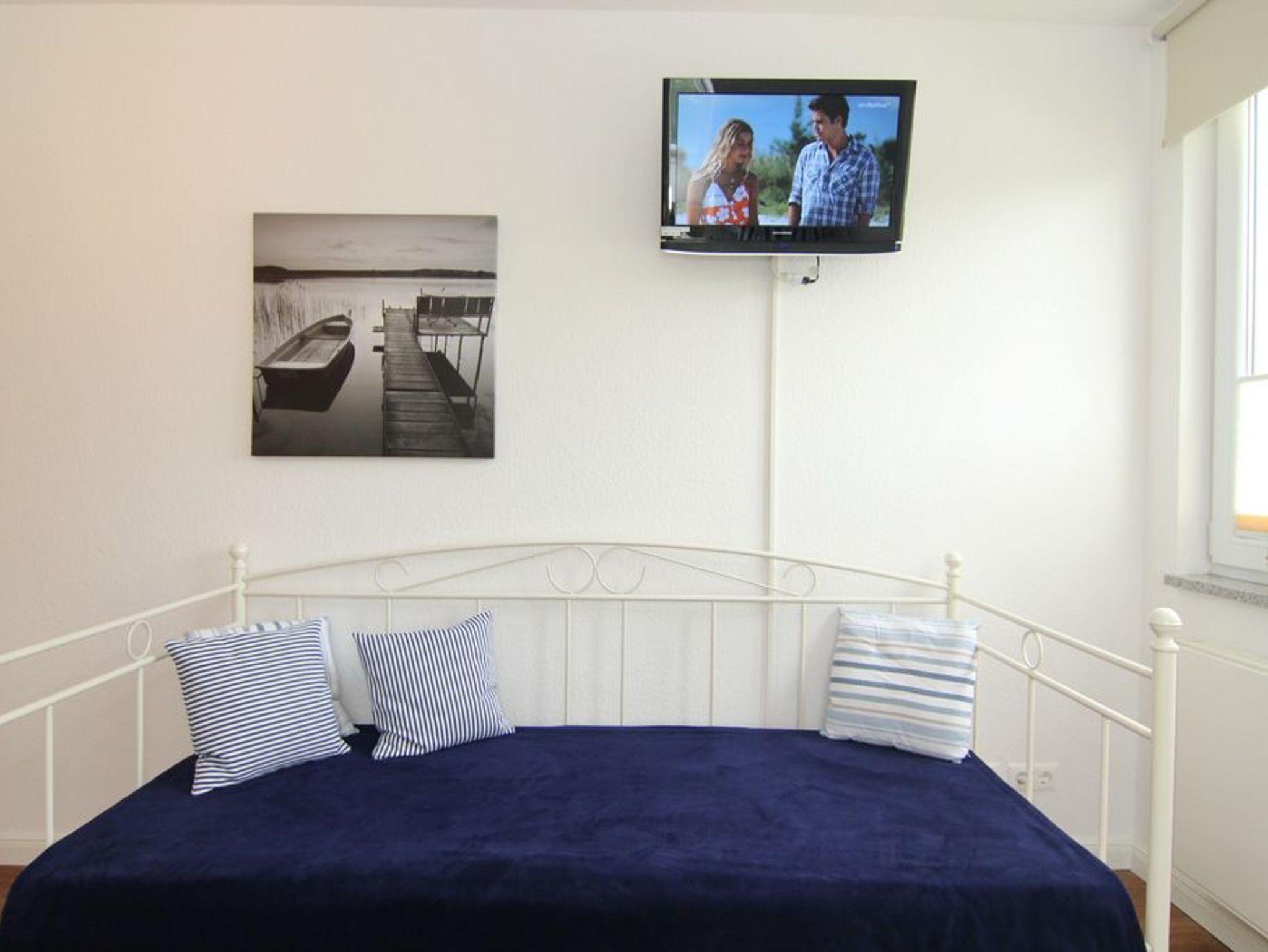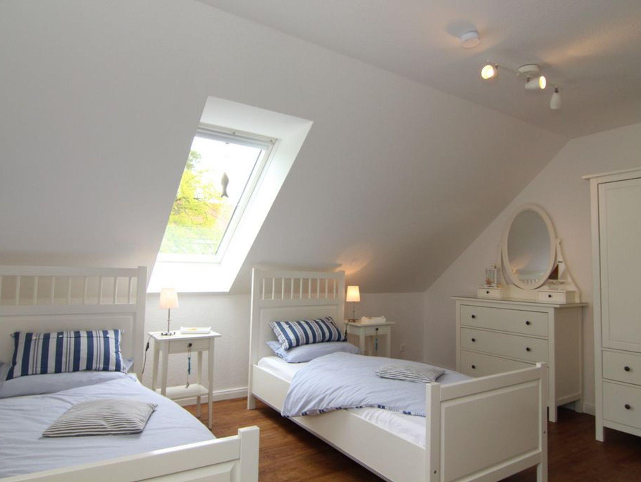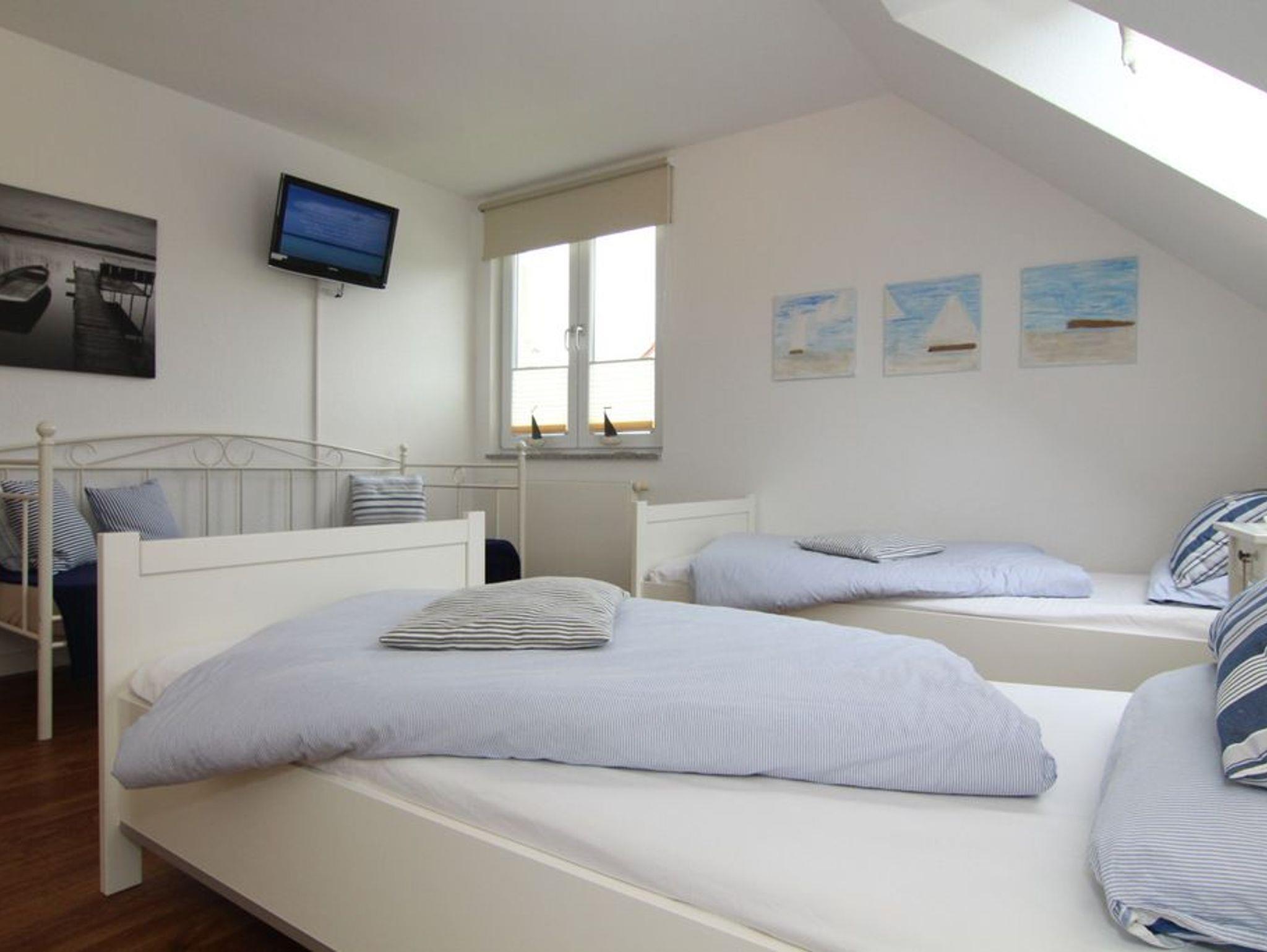 Während das Schlafzimmer mit einem gemütlichen Doppelbett (180x200cm) und 2 Kleiderschränken ausgestattet wurde, bietet das Gäste-/ Kinderzimmer 3 bequeme Einzelbetten (je 90x200cm), eine schöne Frisierkommode und natürlich ebenfalls einen Kleiderschrank. Weiterhin bietet dieses Zimmer einen Fernseher.