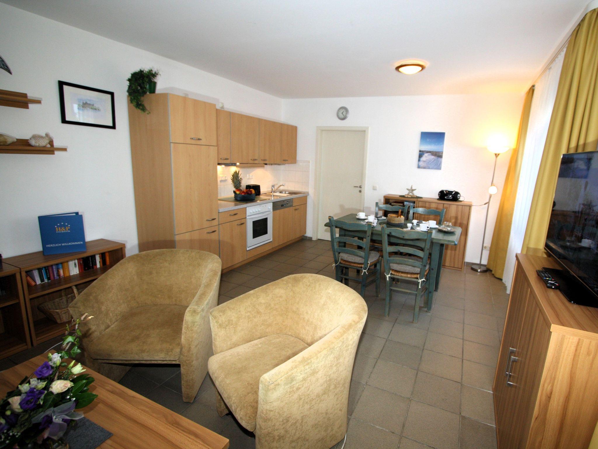 Das Appartement ist ausgestattet mit 2x SAT-Farb-TV (u.a. LCD-TV), verschiedenen sky-Programmen , CD-Radio, Mikrowelle, Geschirrspüler, Kaffeemaschine, Espressomaschine und Telefon. Eine sonnige Terrasse lädt ein zum Sonnenbaden!