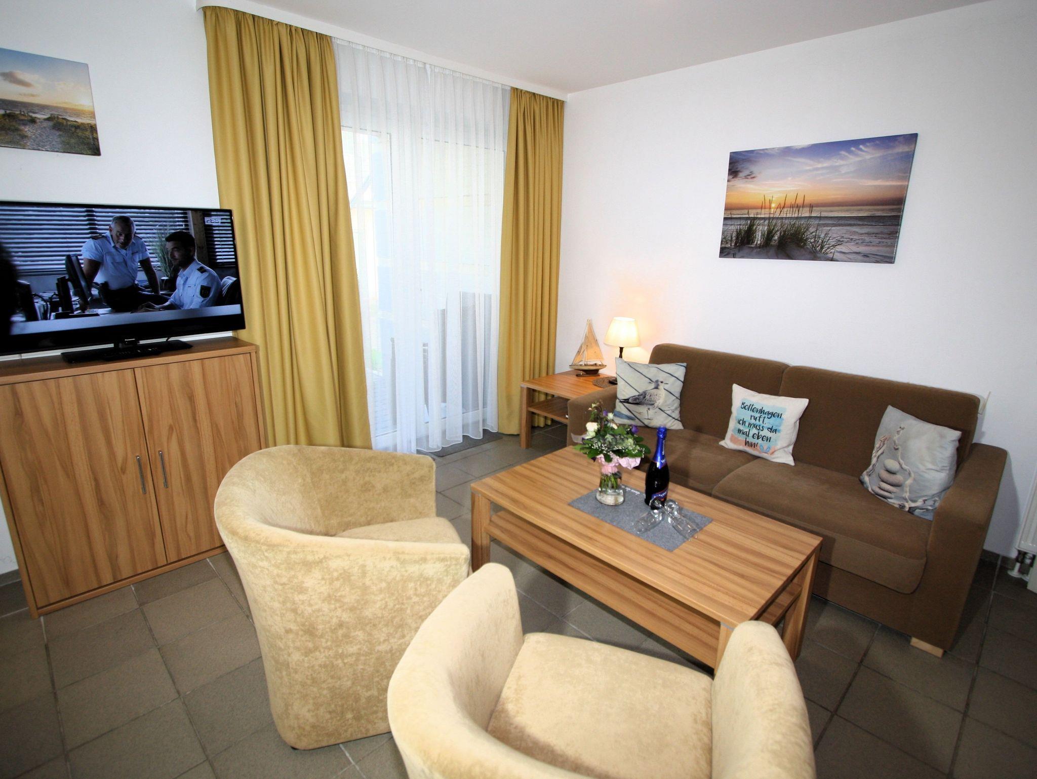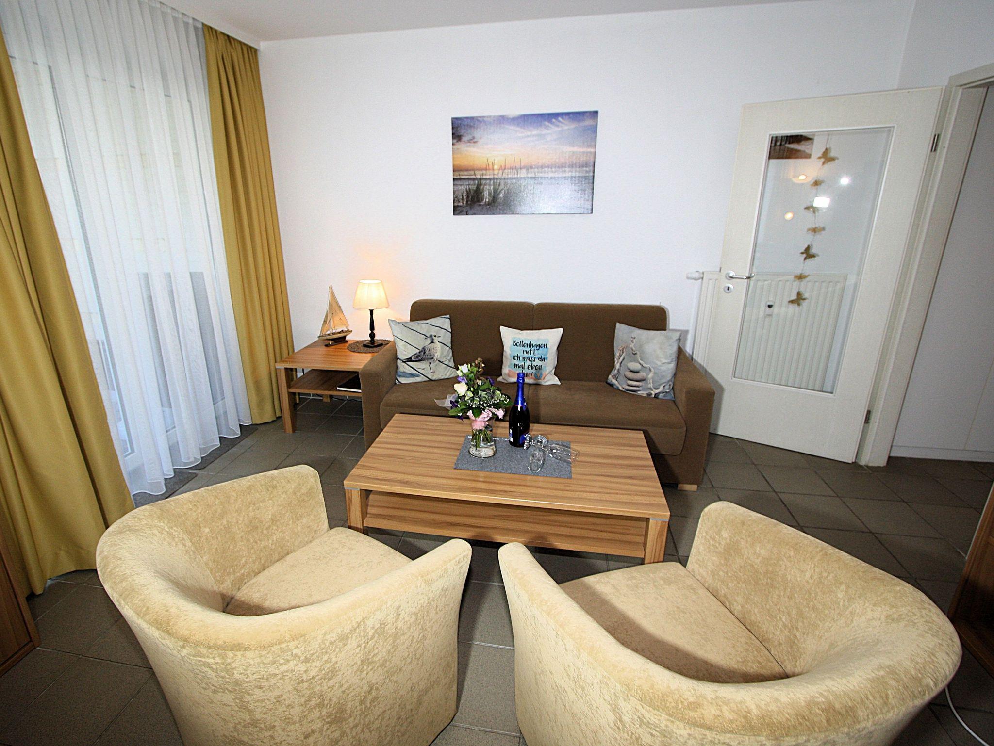 Ihre gut ausgestattete Zwei-Zimmer-Ferienwohnung für bis zu vier Personen verfügt über einen Balkon oder Terrasse, kostenfreies WLAN und sky-Empfang. Sie erreichen die Wohnung bequem mit dem Aufzug, für Ihren PKW steht ein Platz in der Tiefgarage zur Verfügung. Dort befindet sich zudem ein Waschraum mit Münzwaschmaschinen und Münzwäschetrockner und ein Platz für Ihre Fahrräder.