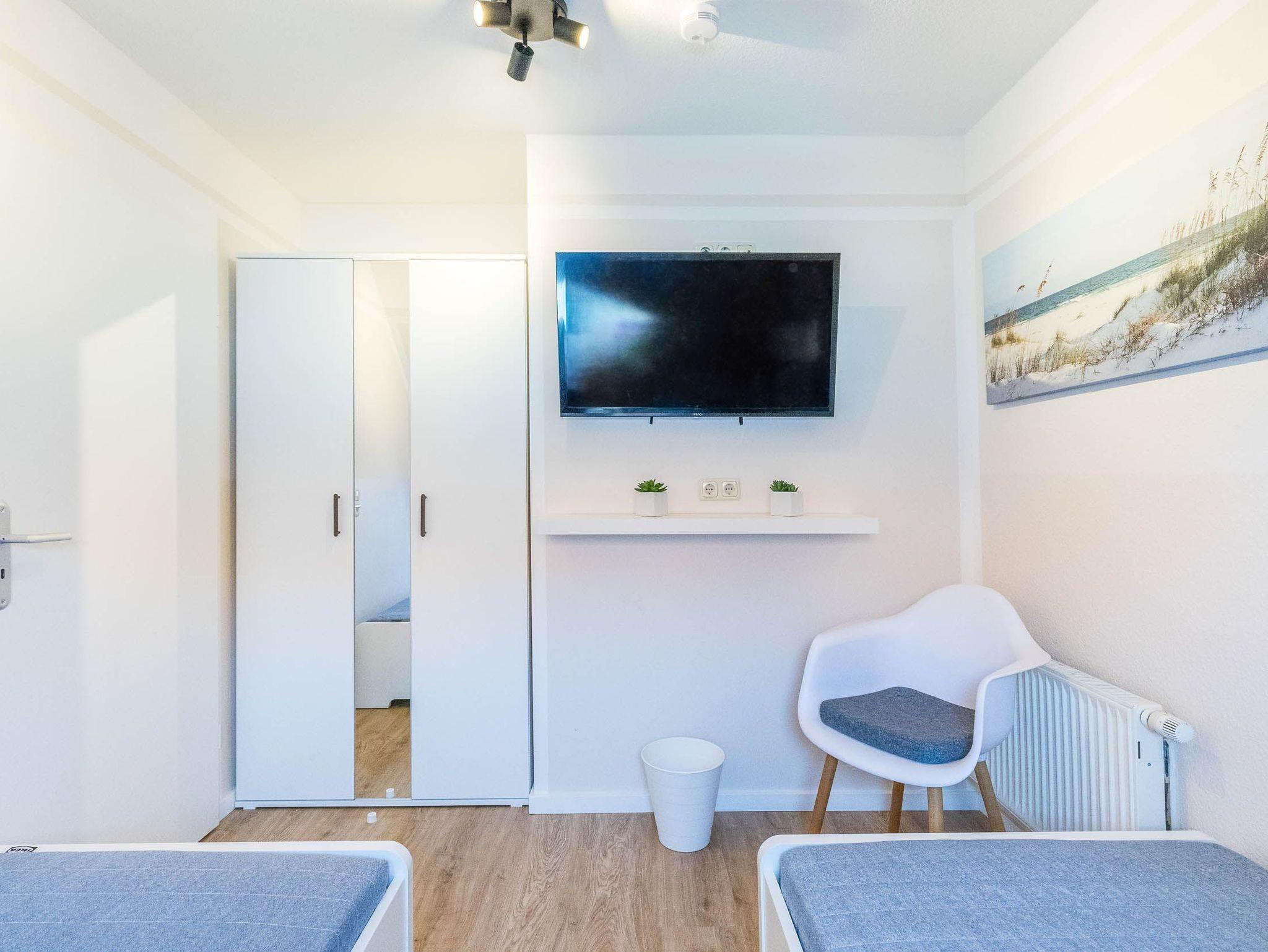 Die Wohnung verfügt über 3 separate Schlafzimmer die neu möbliert wurden. Ein Schlafzimmer bietet 2 Einzelbetten mit Smart-TV und zwei weitere Schlafzimmer bieten je ein Doppelbett mit Smart-TV.