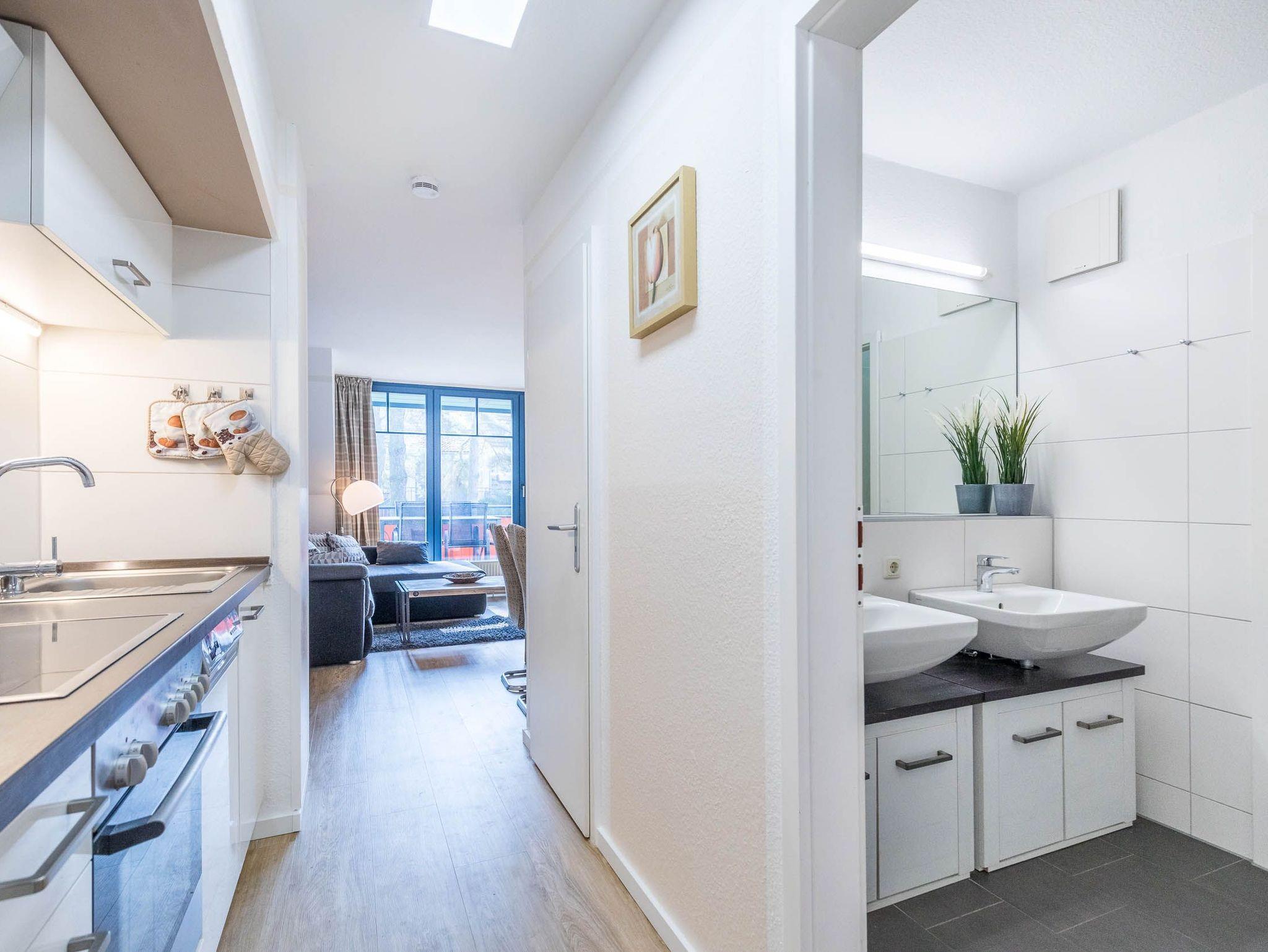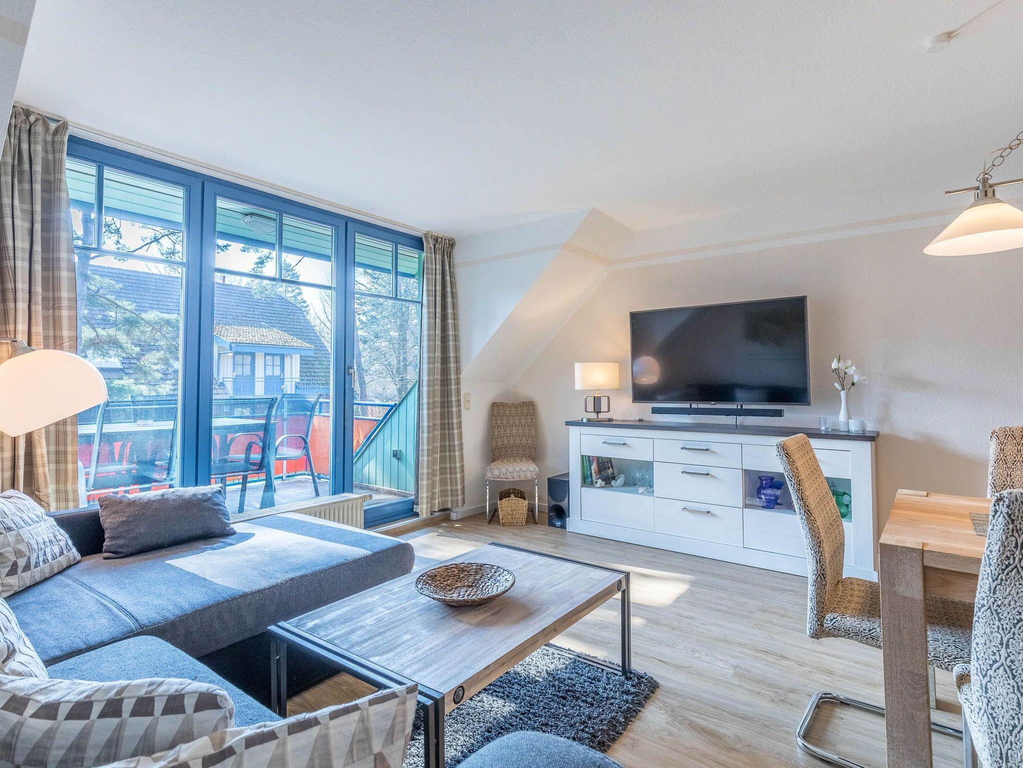 Diese Ferienwohnung wurde in 2025 umfassend renoviert ? mit neuen Möbeln, einem neuen Fußboden sowie einem komplett neuen Farbanstrich ? und verfügt über einen offenen Wohn- und Essbereich mit integrierter Küchenzeile. Der Wohnbereich mit großer Sofalandschaft ist hell und gemütlich möbliert. Für Ihre Multimediaunterhaltung sorgt ein großer Smart TV inklusive Soundbar.