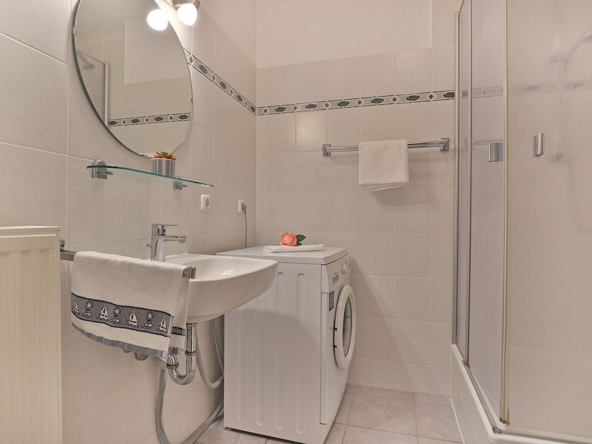 Die 2-Zimmer Ferienwohnung ?Likedeeler 16? mit Balkon,liegt in der 1. Etage des Hauses und besitzt eine Wohnfläche von 55qm. Die Wohnung ist für eine Belegung mit bis zu 5 Personen ausgestattet. Für technische Unterhaltung können Sie den Fernseher und ein Radio nutzen zudem steht WLAN kostenfrei bereit. Im geräumigen Wohn-/Essbereich mit großen Fensterfronten, empfängt Sie ein bequemes Sofa mit Sessel, welches als ausziehbares Schlafsofa zwei zusätzliche Schlafgelegenheit ermöglicht. Für gemeinsame Mahlzeiten ist ein Esstisch vorhanden. Die in den Wohnbereich integrierte Wohnküche ermöglicht die Eigenversorgung mit: Ceranherd, Backofen, Mikrowelle, Dunstabzug, Kühlschrank mit integr. Gefrierfach, Geschirrspüler, Kaffeemaschine, Wasserkocher, Toaster usw. Sie speisen gemütlich am Esstisch, oder während der Sommermonate gerne auf dem saisonal möblierten Süd-West Balkon. Ihre Nächte verbringen Sie in einem separaten Schlafzimmer mit Doppelbett, Einzelbett und einem großen Kleiderschrank als Stauraum für die Urlaubsgarderobe. Das Appartement verfügt über ein innenliegendes Duschbad mit Waschtisch, WC und kostenfreier Waschmaschinen Nutzung.