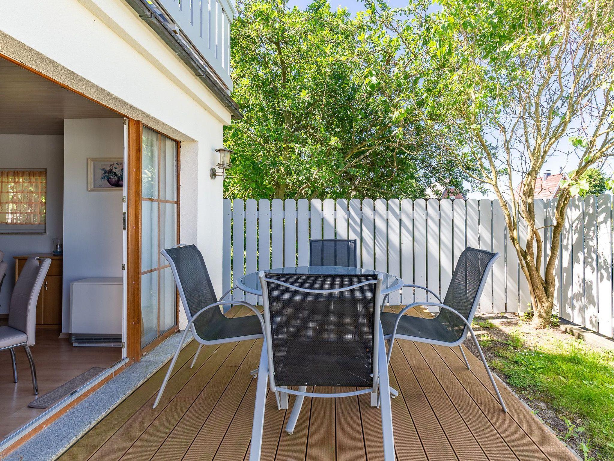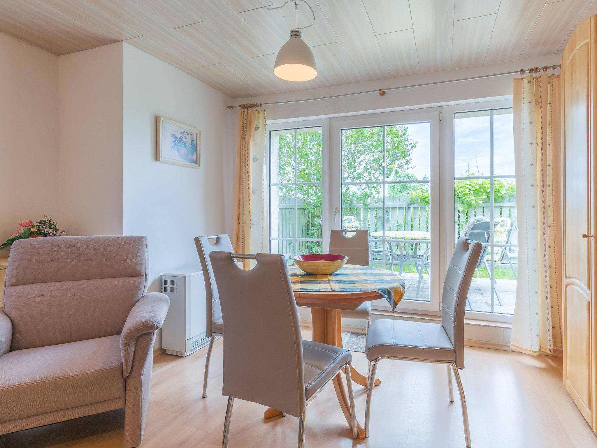Die geräumige Ferienwohnung Nr. 1 ist eine 3-Zimmer-Wohnung im Erdgeschoss und bietet Platz für max. 4 Personen. Im lichtdurchfluteten Wohnraum befindet sich eine bequeme Sitzecke, die auch abends zum Entspannen einlädt. Für genügend Abwechselung sorgen der Flatscreen und das Radio. Der sorgfältig eingerichtete Wohn- und Essbereich sowie das Wannenbad tragen zusätzlich zur Erholung bei. Eine schöne Terrasse schließt sich am Wohnbereich an. Hier laden Gartenmöbel zum Verweilen ein.
