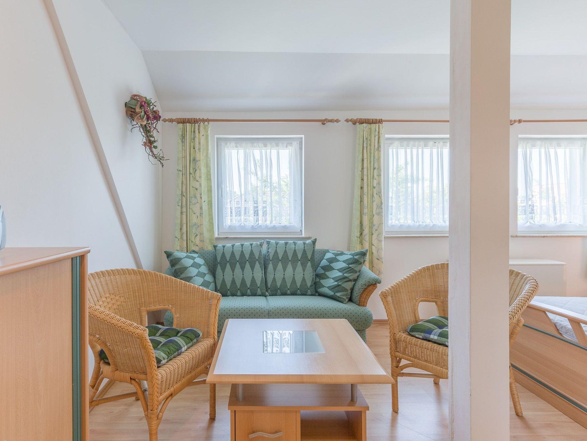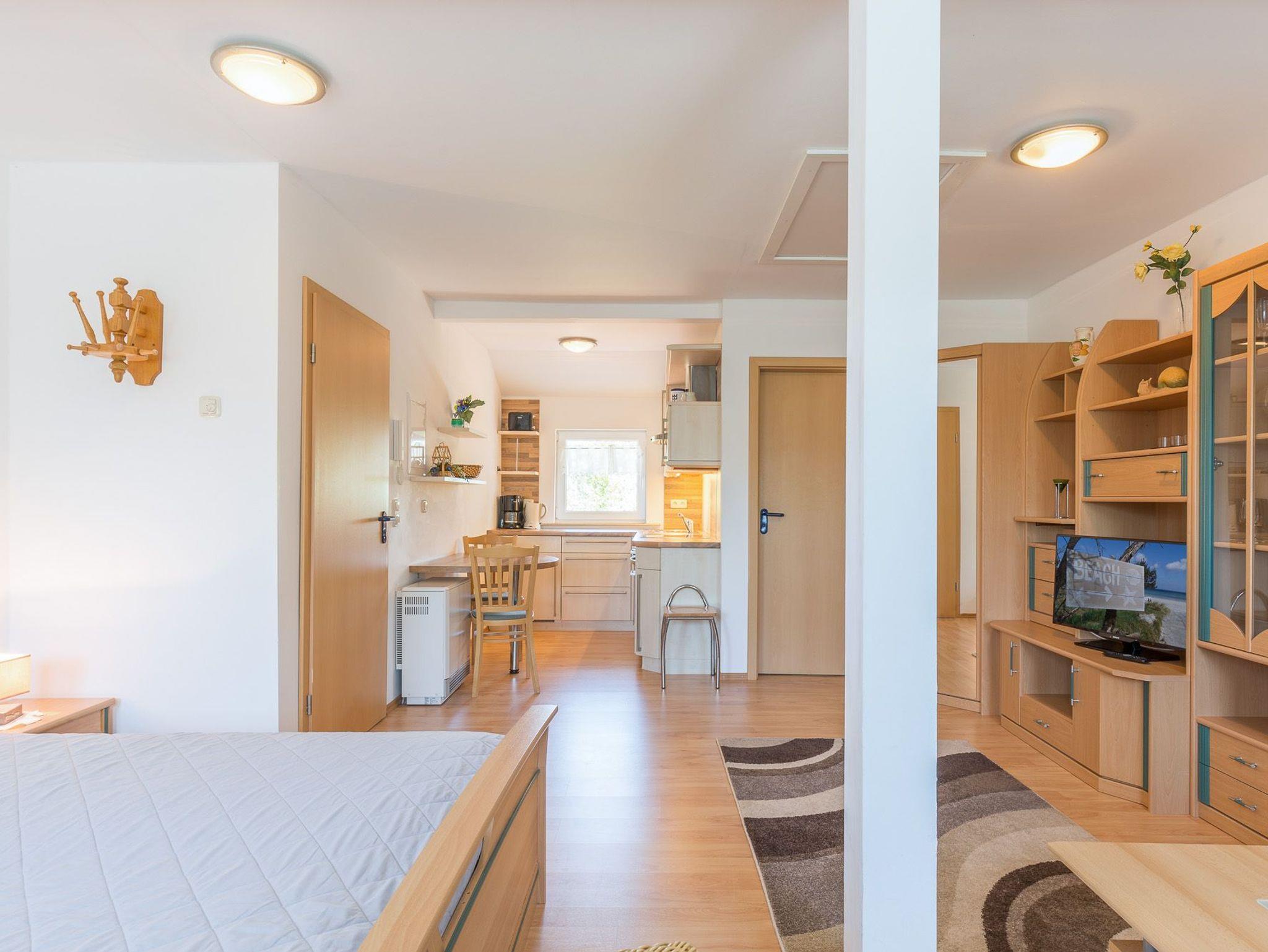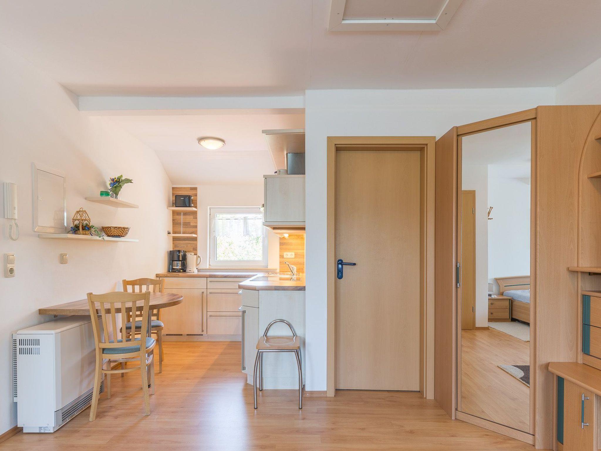 Im ersten Obergeschoss des Ferienhofes Karl´s Ruhe befindet sich ein gemütliches 1-Zimmer-Appartement und bietet Platz für 2 Personen.