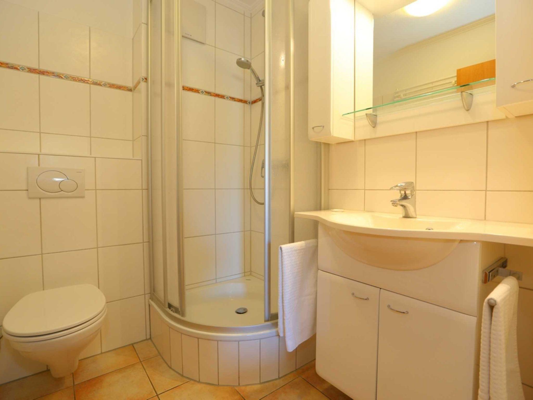 Ein modern eingerichtetes Duschbad mit WC und Handtuchheizung komplettiert diese schöne Ferienunterkunft.
