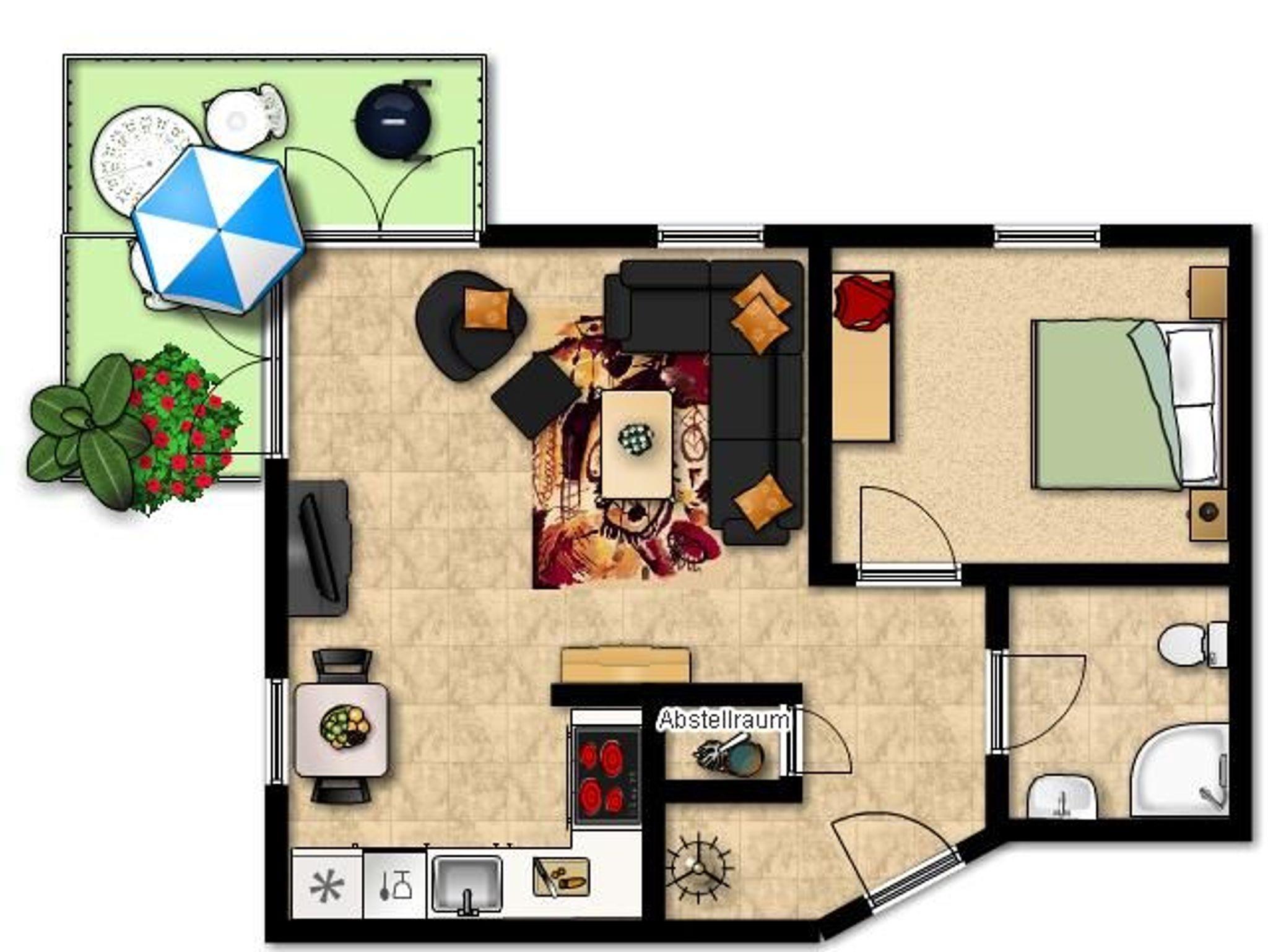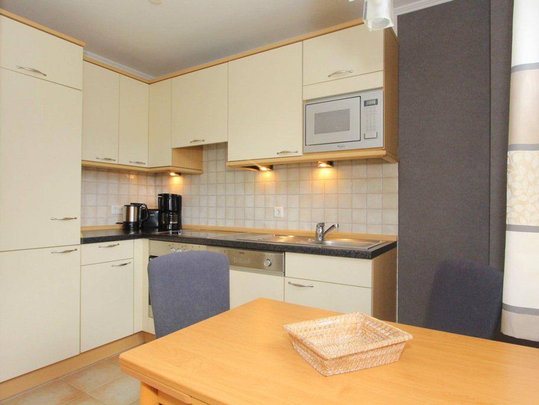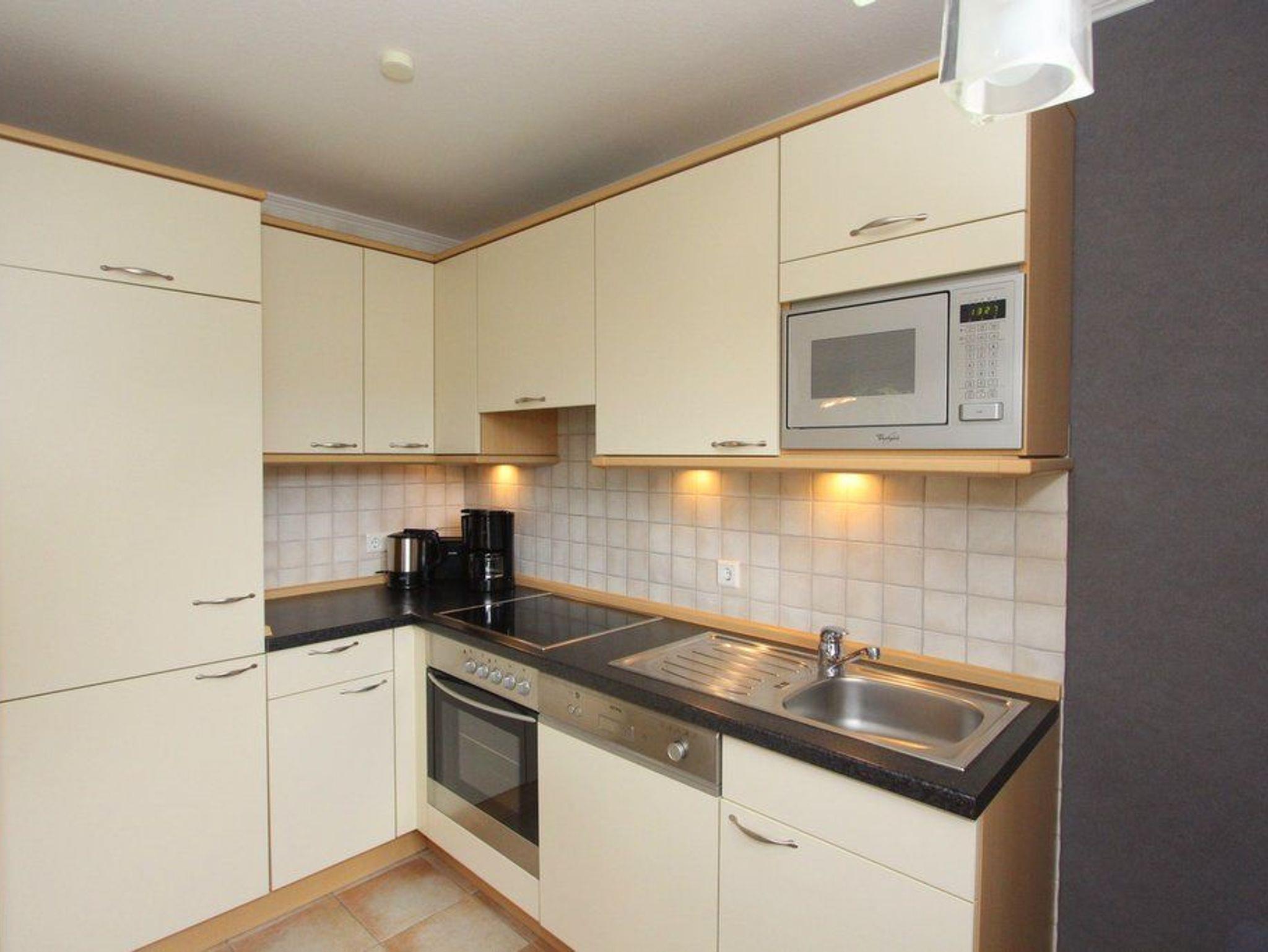 Die offene Küchenzeile bietet eine sehr gute Ausstattung für Ihre Selbstverpflegung. Neben Herd mit Ceranfeld und Backofen finden Sie natürlich auch z.B. einen Kühlschrank mit Gefrierfach, die gängigen Küchenkleingeräte und ausreichend Geschirr, Gläser, Besteck usw. Genießen Sie Ihre Mahlzeiten gemeinsam in der einladenden, separaten Essecke.