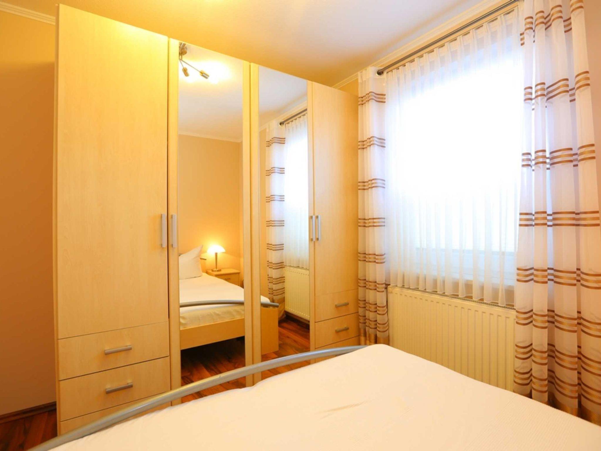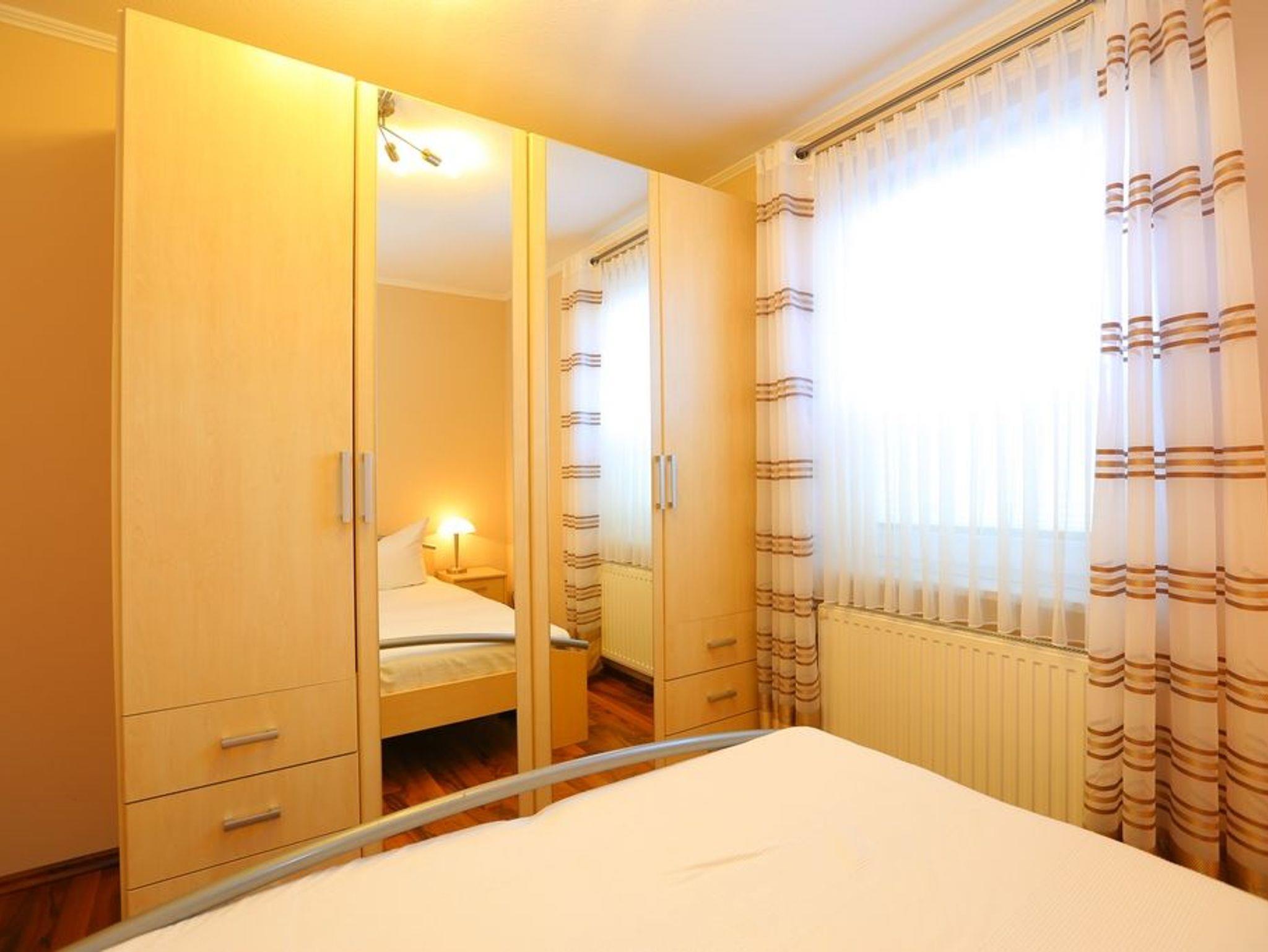 Weiterhin bietet das Schlafzimmer ein Doppelbett (160x200cm, Höhe 52cm) und einen großen Kleiderschrank. Auch hier befindet sich ein Fernseher.