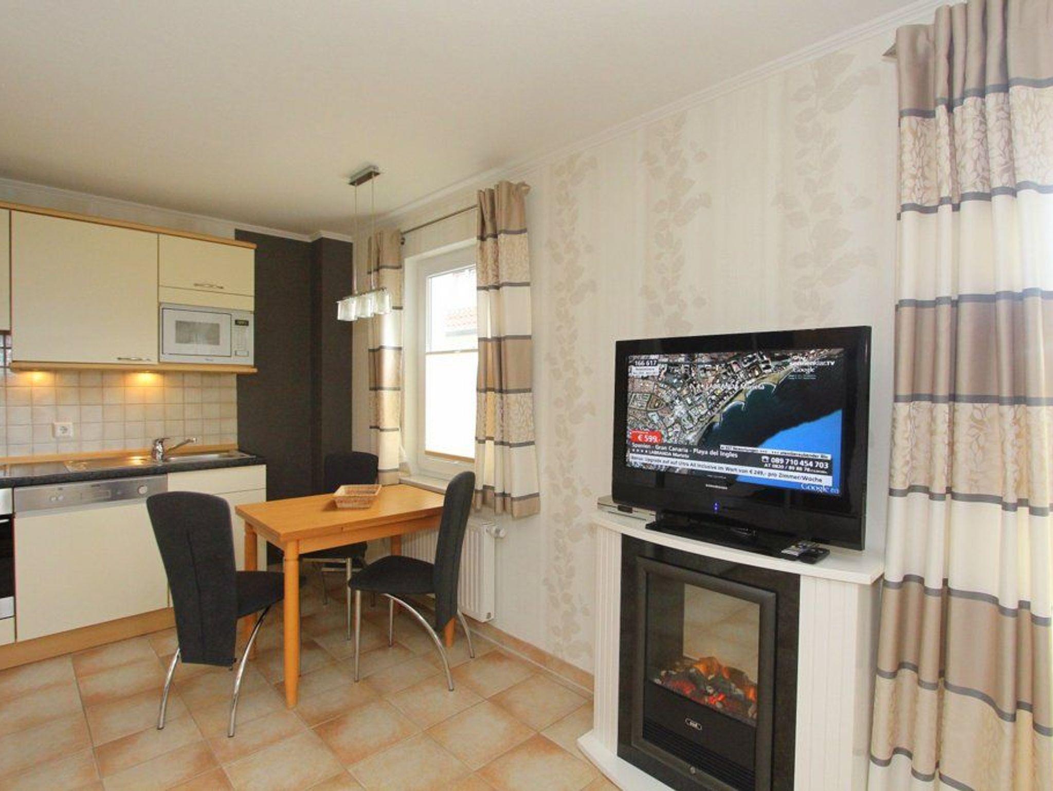 Über das behaglich eingerichtete Wohnzimmer mit großer bequemer Couch und Flatscreen-TV gelangen Sie direkt auf den möblierten Eckbalkon in Nordost-Ausrichtung. Die Couch lässt sich ausziehen und bietet so einen 3. Schlafplatz (Liegefläche ausgeklappt 115x188cm). Für ein wenig Romantik sorgt hier ein elektrischer Kamin. Dank diverser Cds, Spiele und Bücher ist auch für Spaß und Unterhaltung gesorgt.
