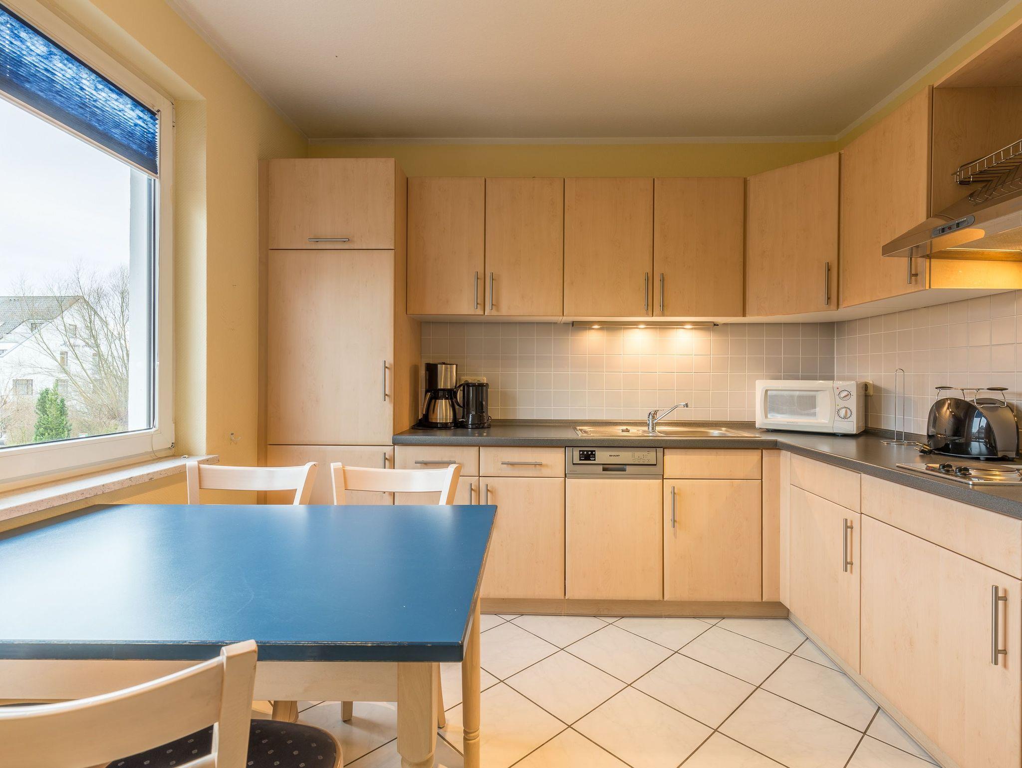 Die 3-Zimmer-Ferienwohnung Kajüte befindet sich in zentraler Lage in Boltenhagen. Sie liegt im 1. Obergeschoss und ist über die Treppe im Hausflur ( Eingang Haus 6a) zu erreichen. Mit einer Größe von 70 m² bietet sie Platz für maximal 5 Personen. Das Appartement hat ein Wohnzimmer, eine separate Küche, 2 Schlafzimmer und ein Duschbad. In der voll ausgestatteten Küchenzeile finden Sie ein Kochfeld mit 2 Platten, eine Mikrowelle , einen Geschirrspüler und einen Kühlschrank mit Gefrierfach. Im Schlafzimmer steht ein Kleiderschrank und ein Doppelbett. Auf dem Balkon (Westseite) stehen Balkonmöbel für Sie bereit. Ihr Auto stellen Sie sicher in der Tiefgarage ab. Es gibt keinen direkten Zugang von der Tiefgarage ins Haus. Die Zufahrt liegt separat links neben dem Haus.
